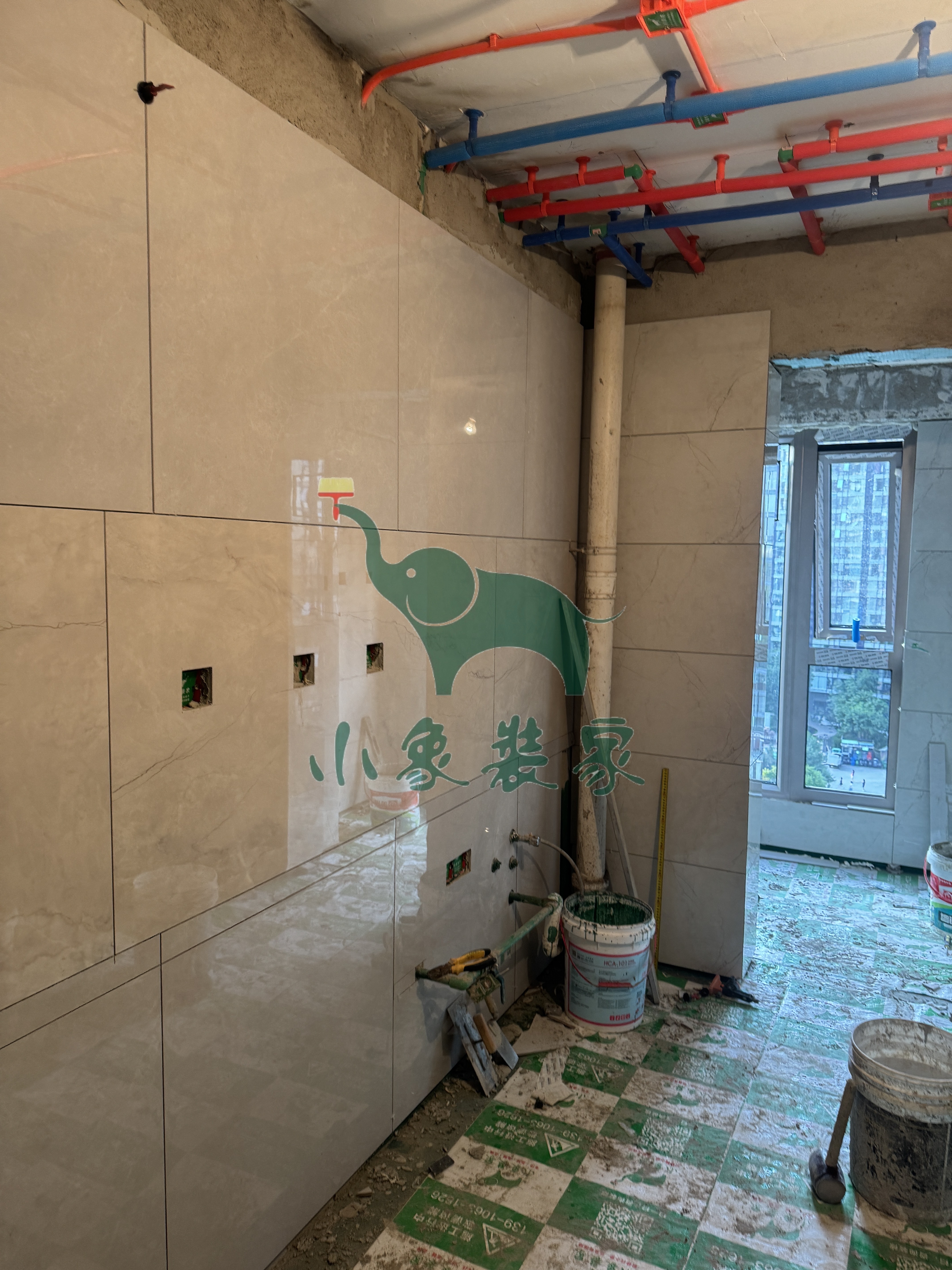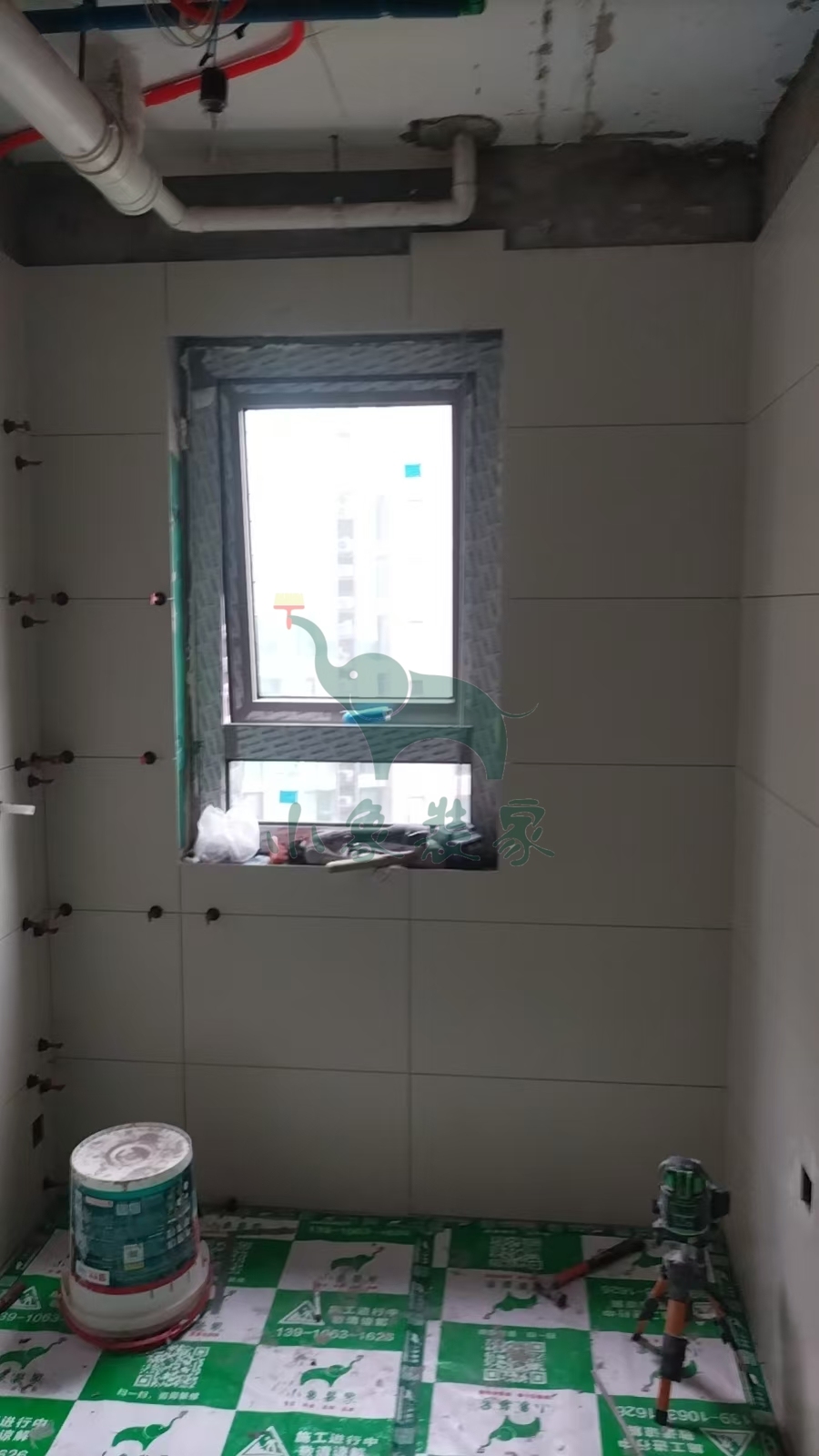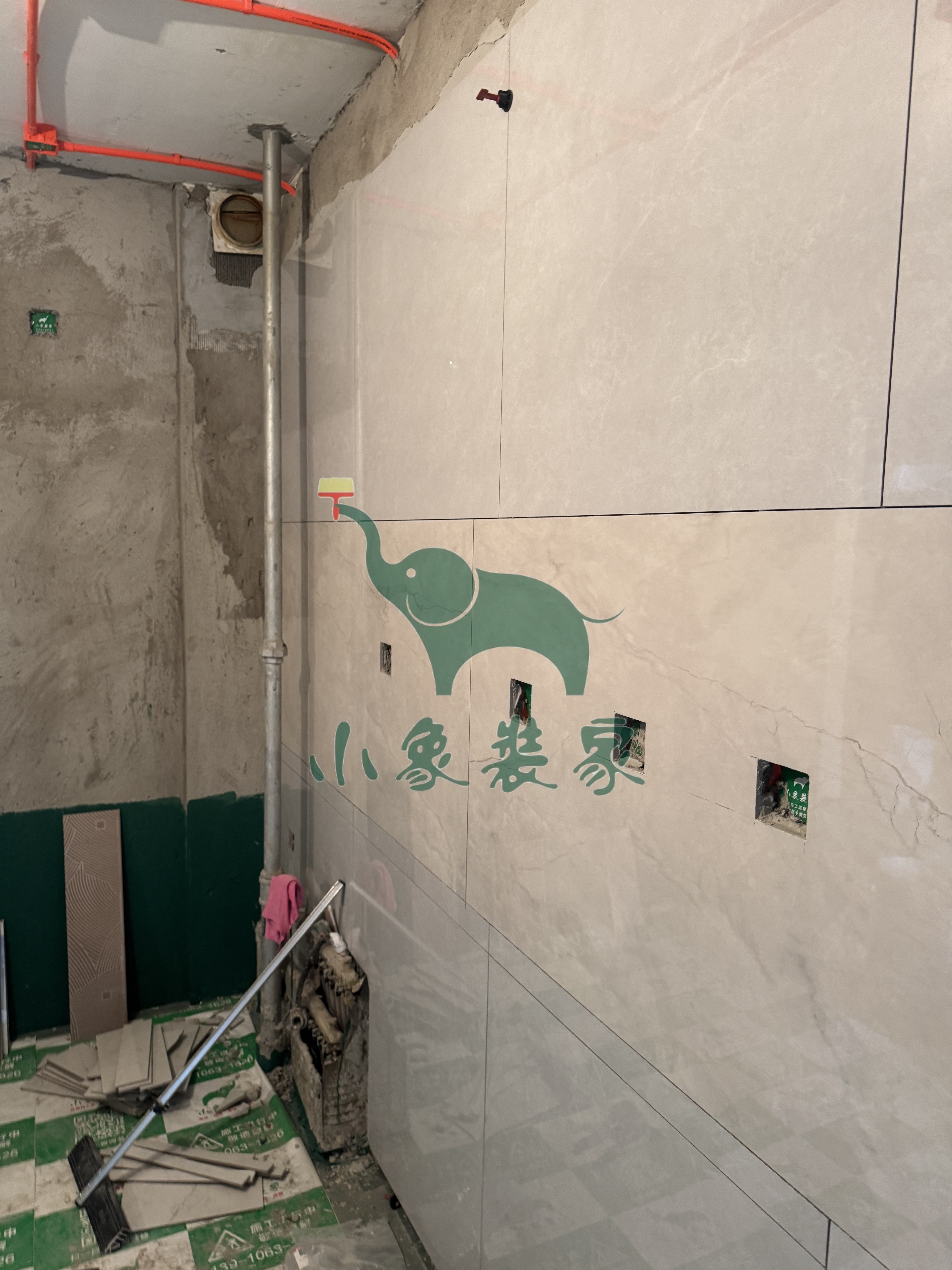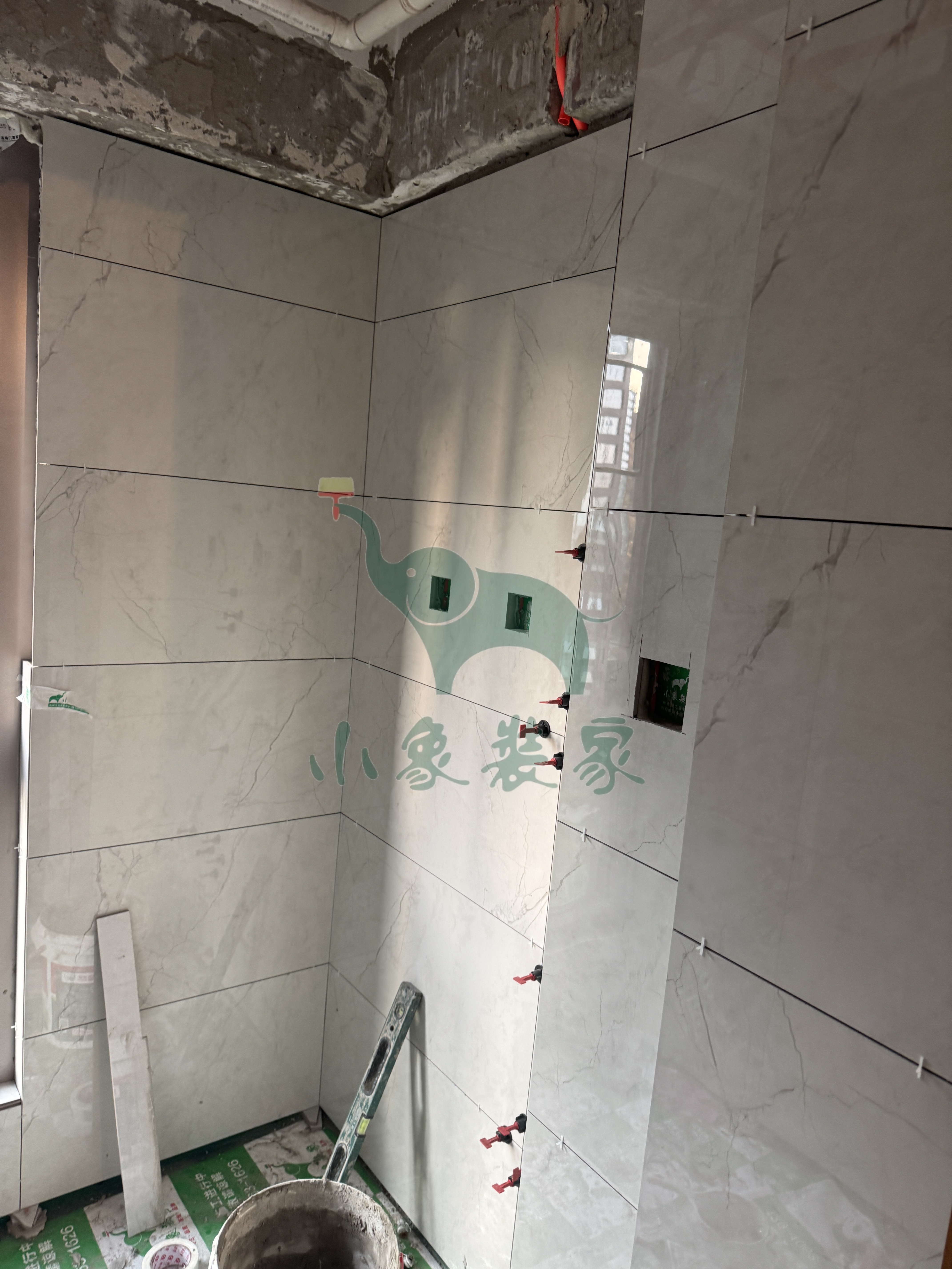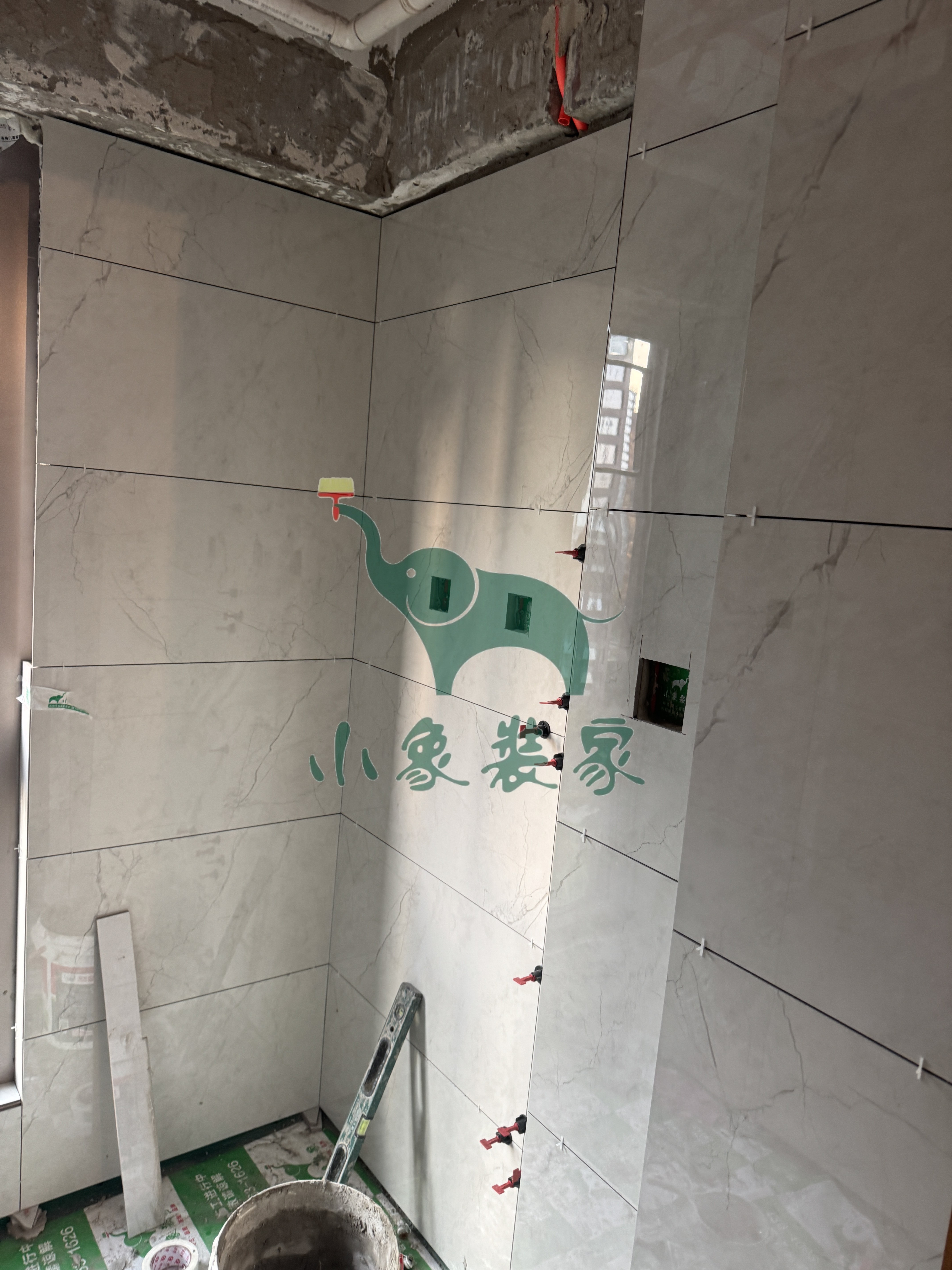 瓦工工程-卫生间墙砖铺贴还需2天。