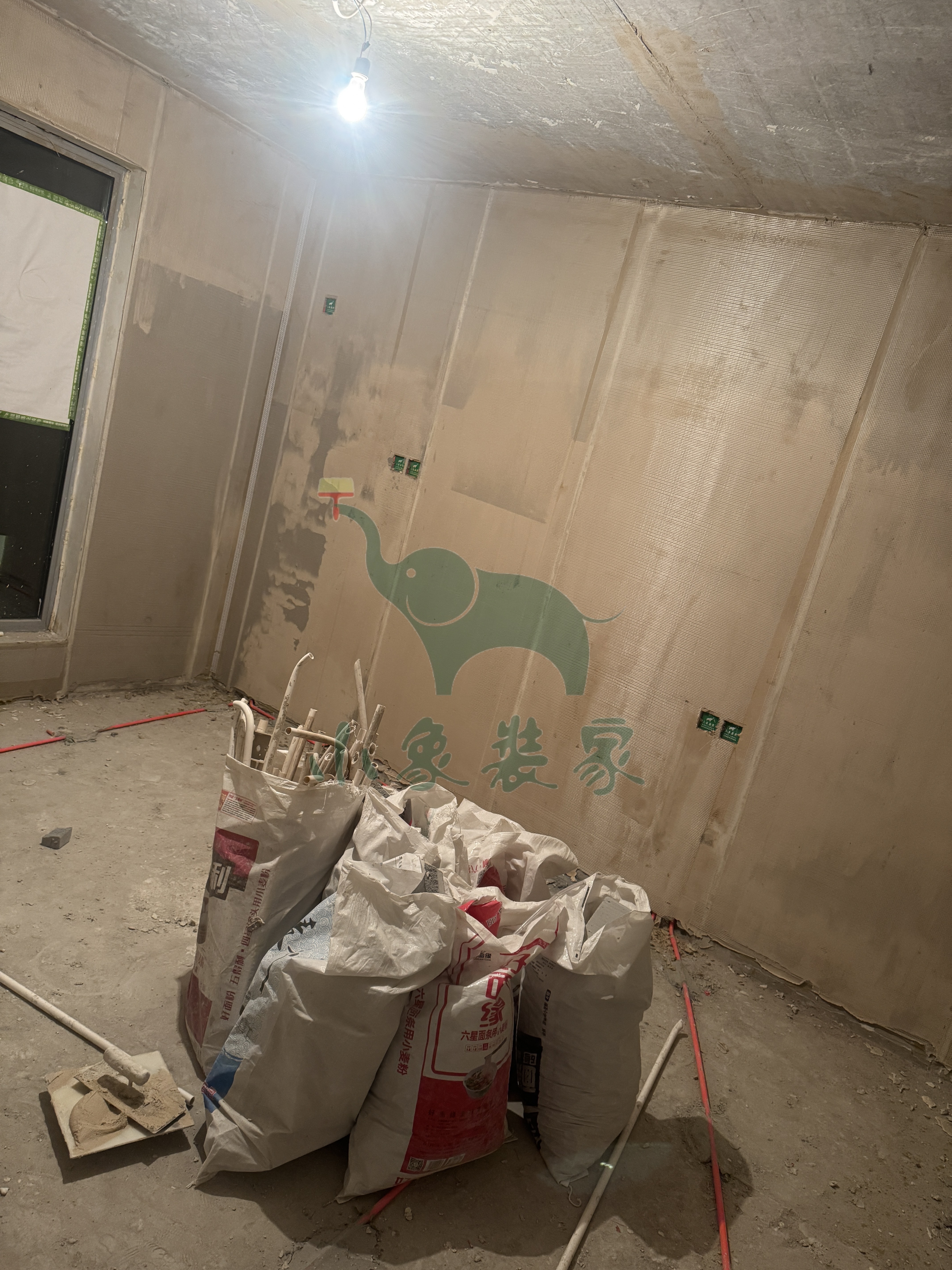 瓦工工程-厨卫墙地面、水泥砂浆抹灰还需2天。
