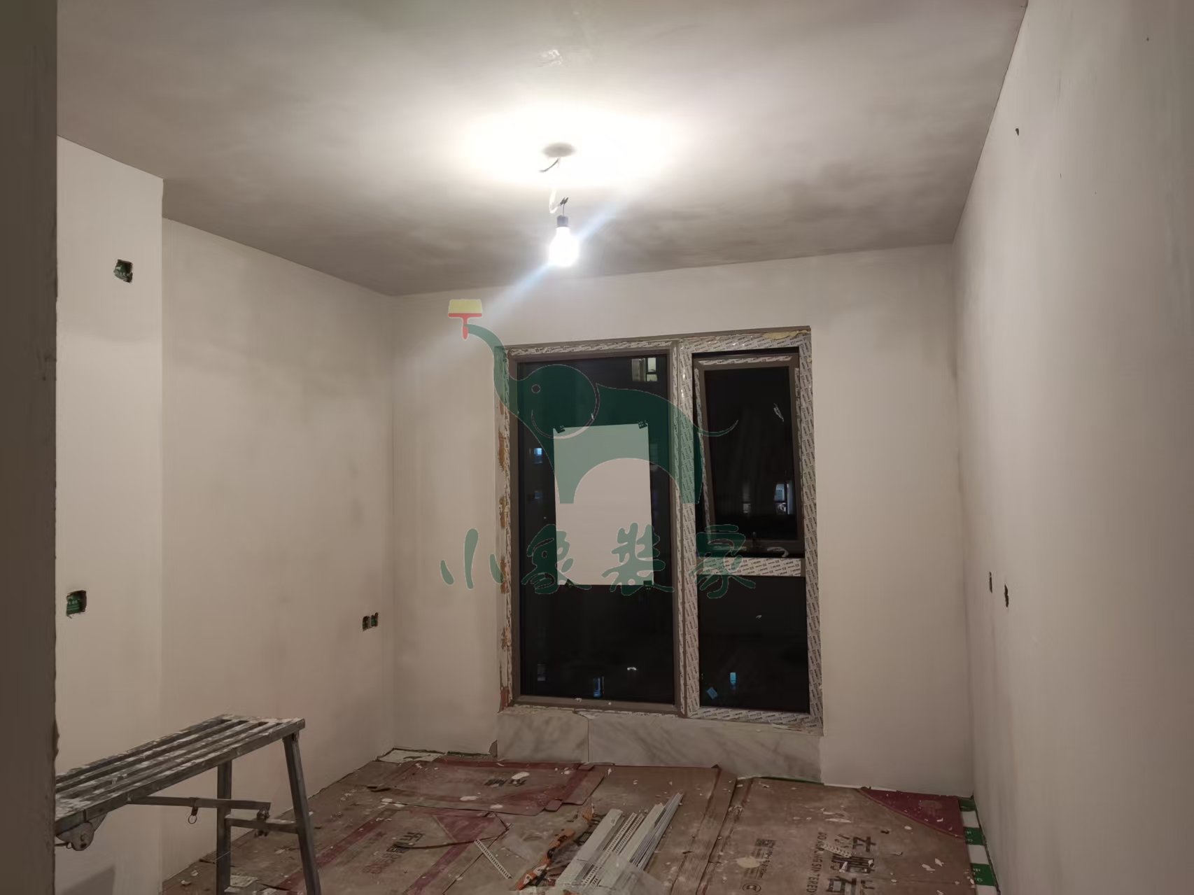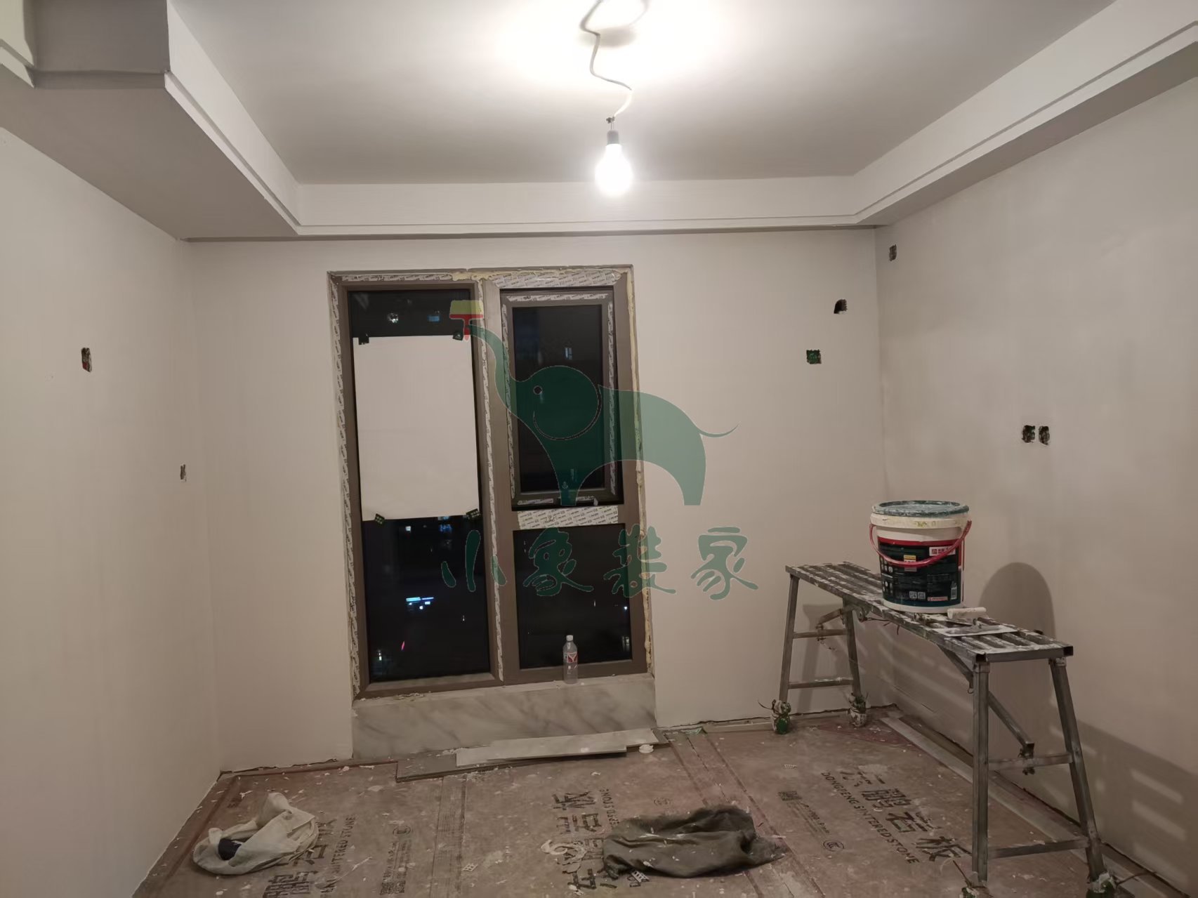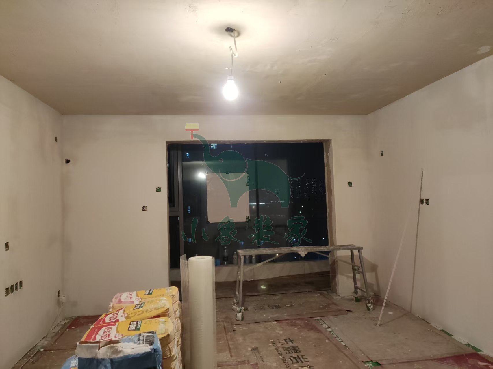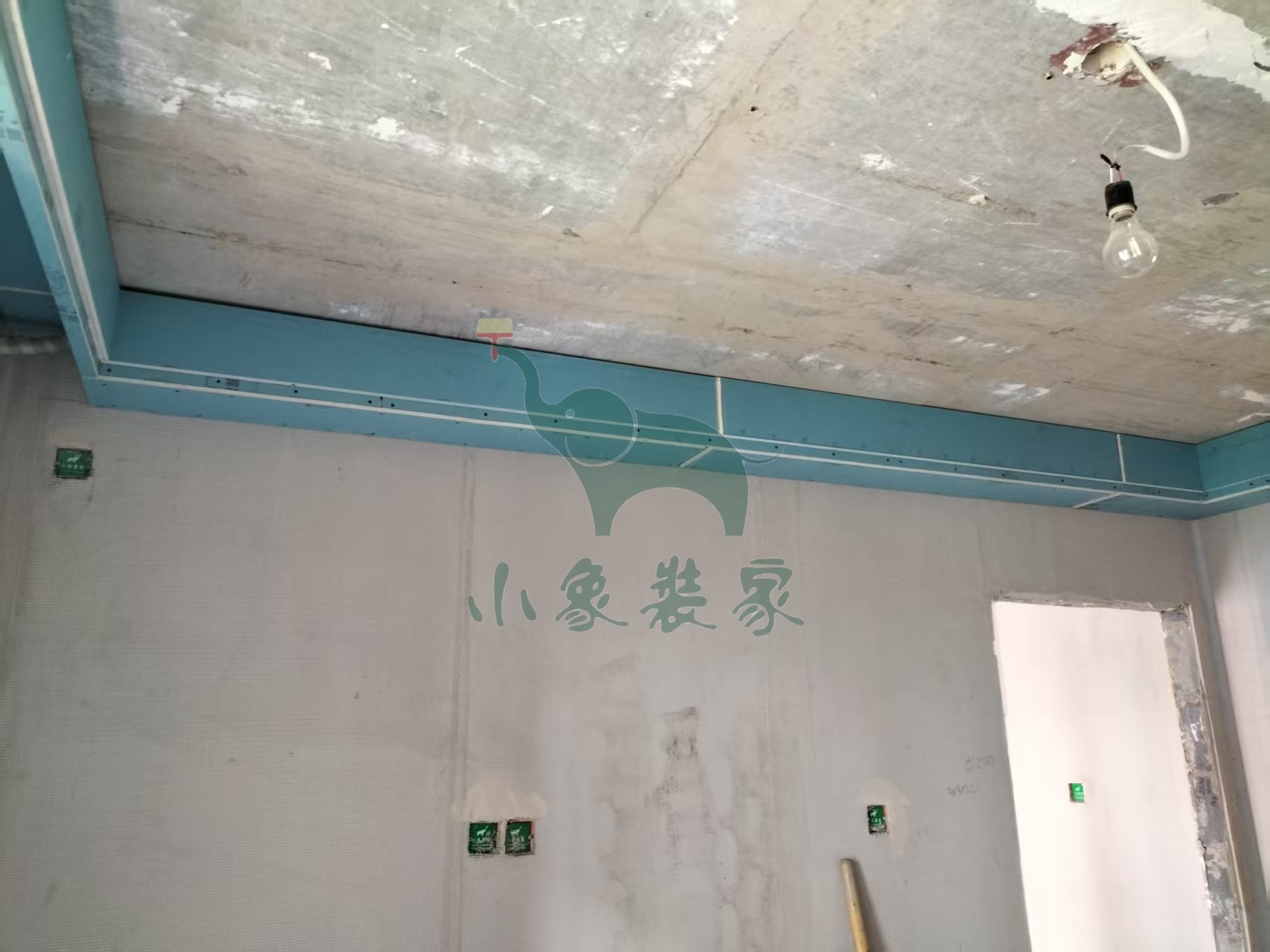 油工工程-墙面、顶面石膏找平还需2天。