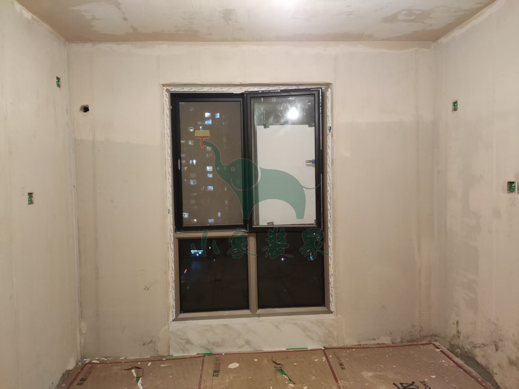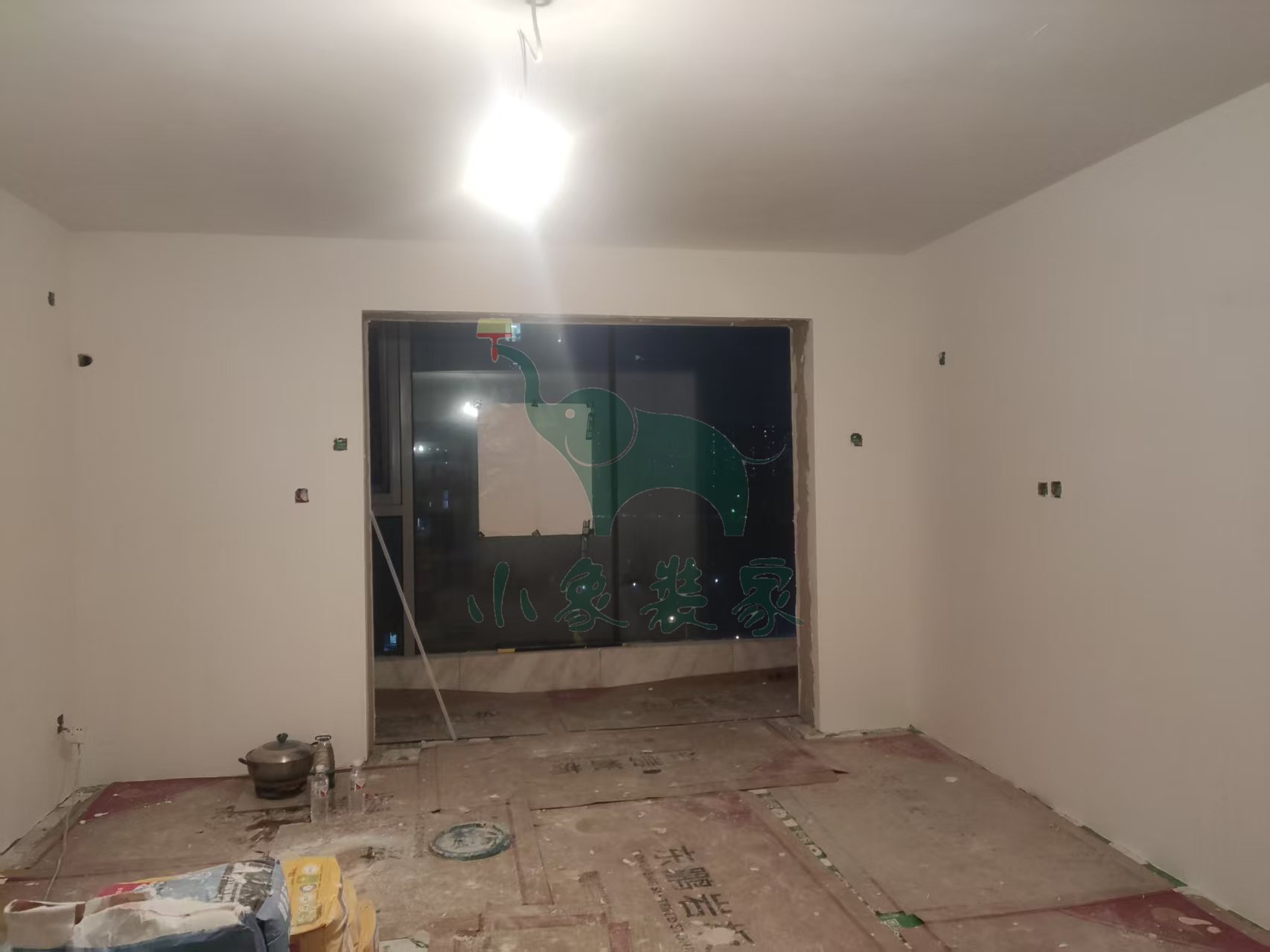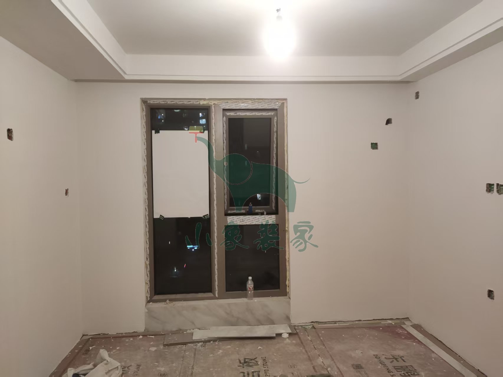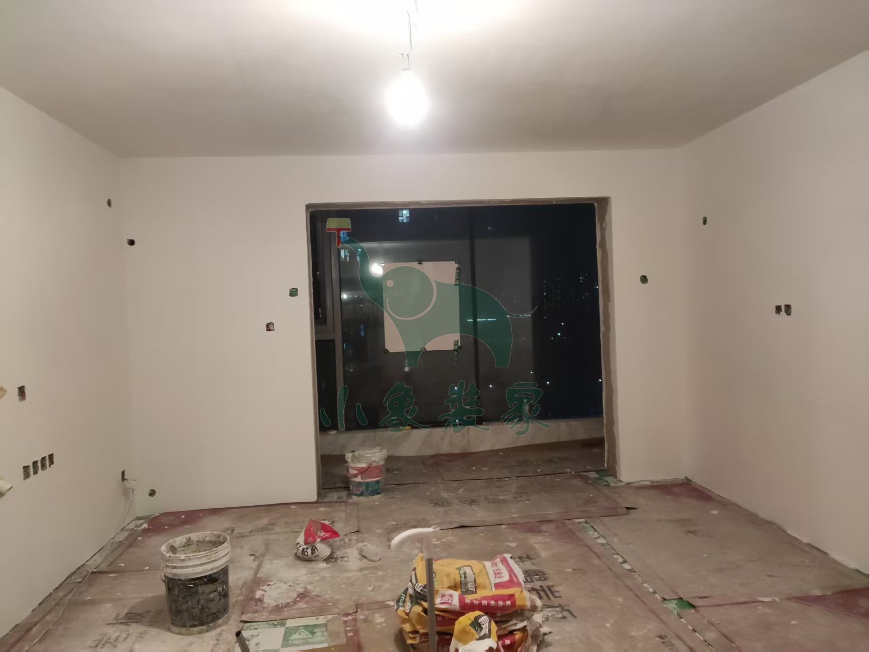 油工工程-墙面、顶面石膏找平还需2天。