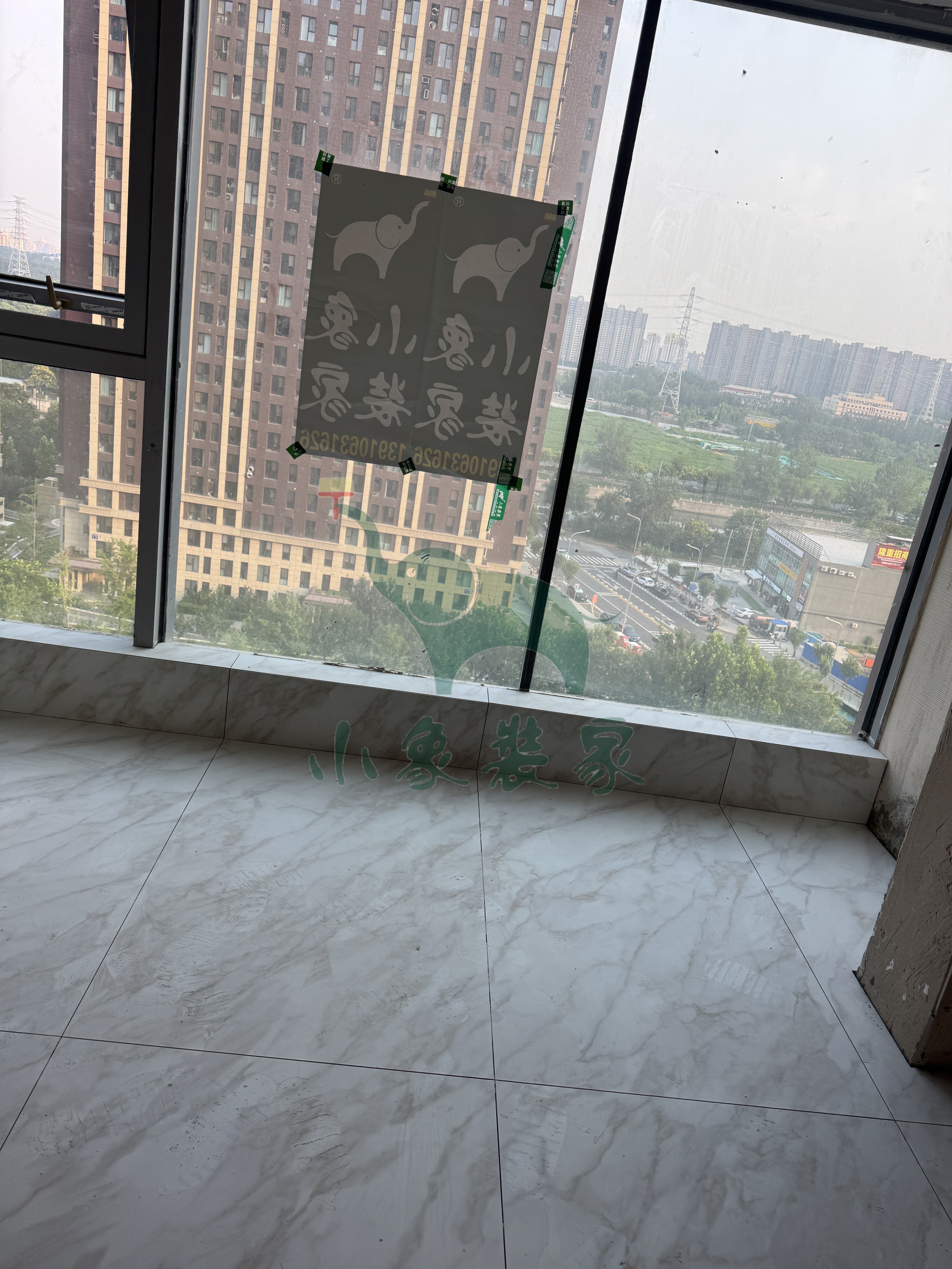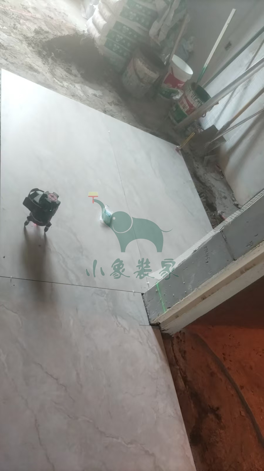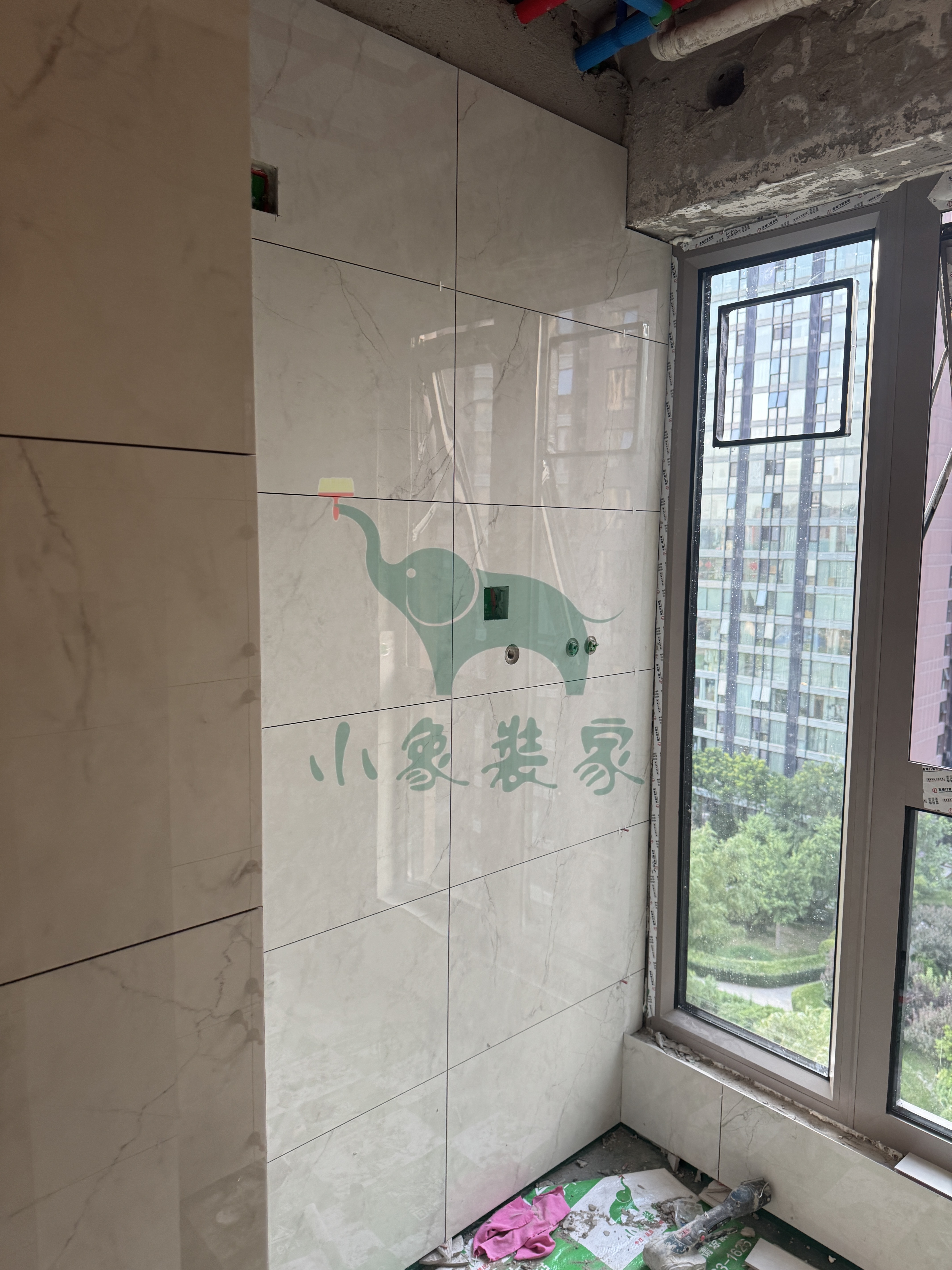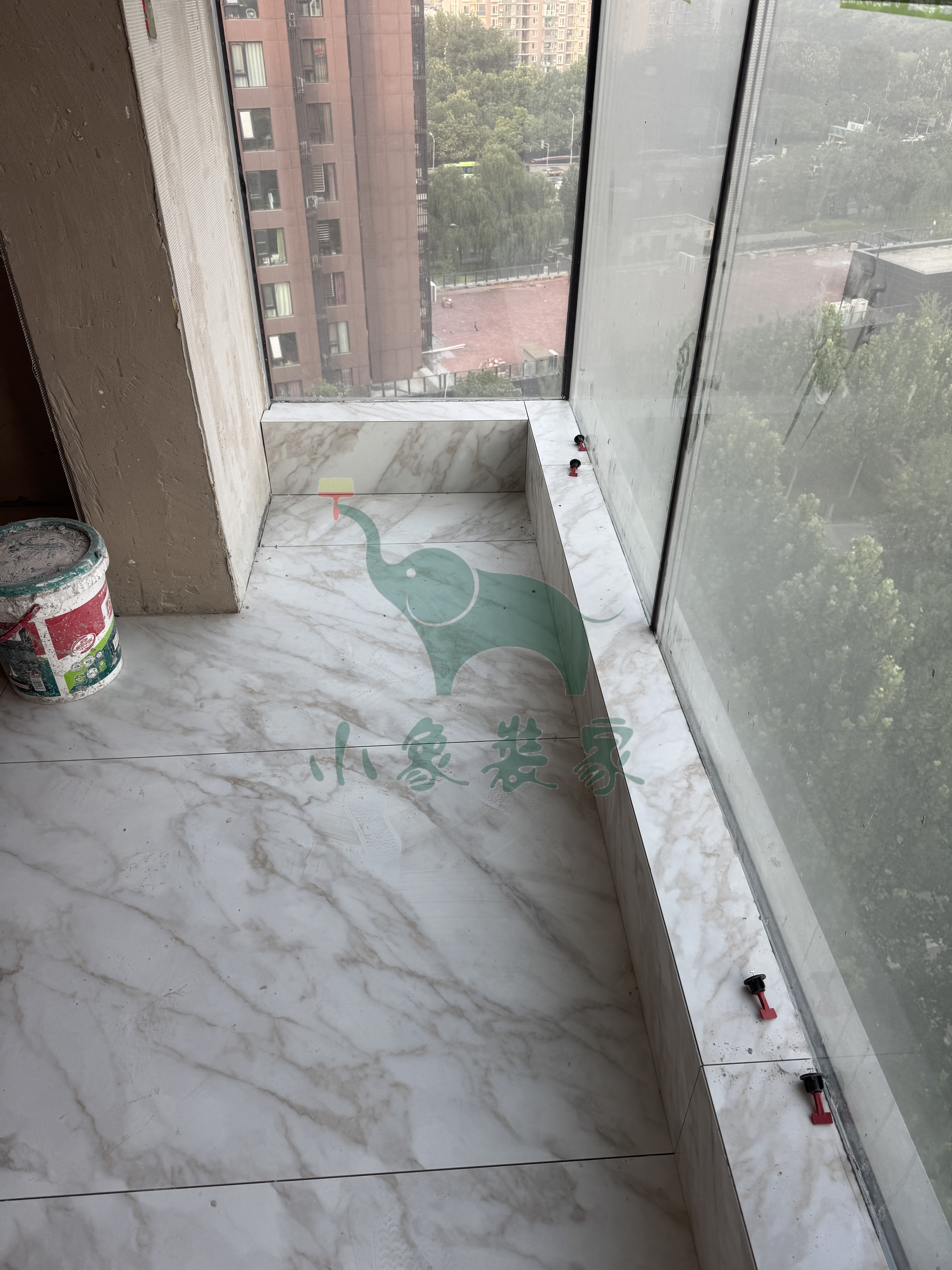 瓦工工程-阳台粘贴地砖已完工。