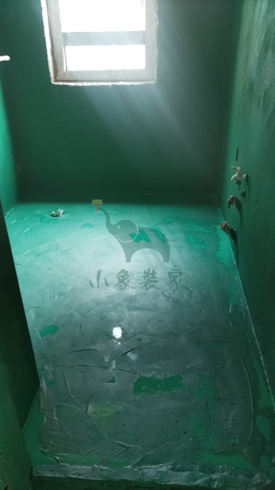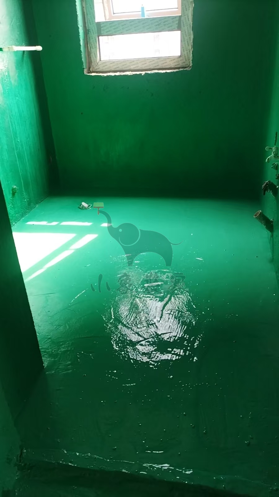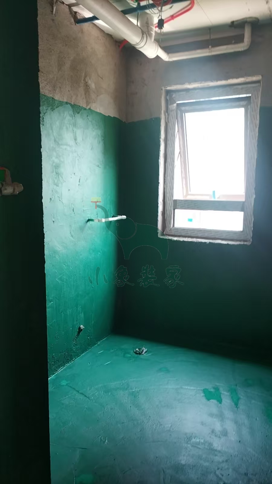 瓦工工程-滚刷第一遍防水已完工。