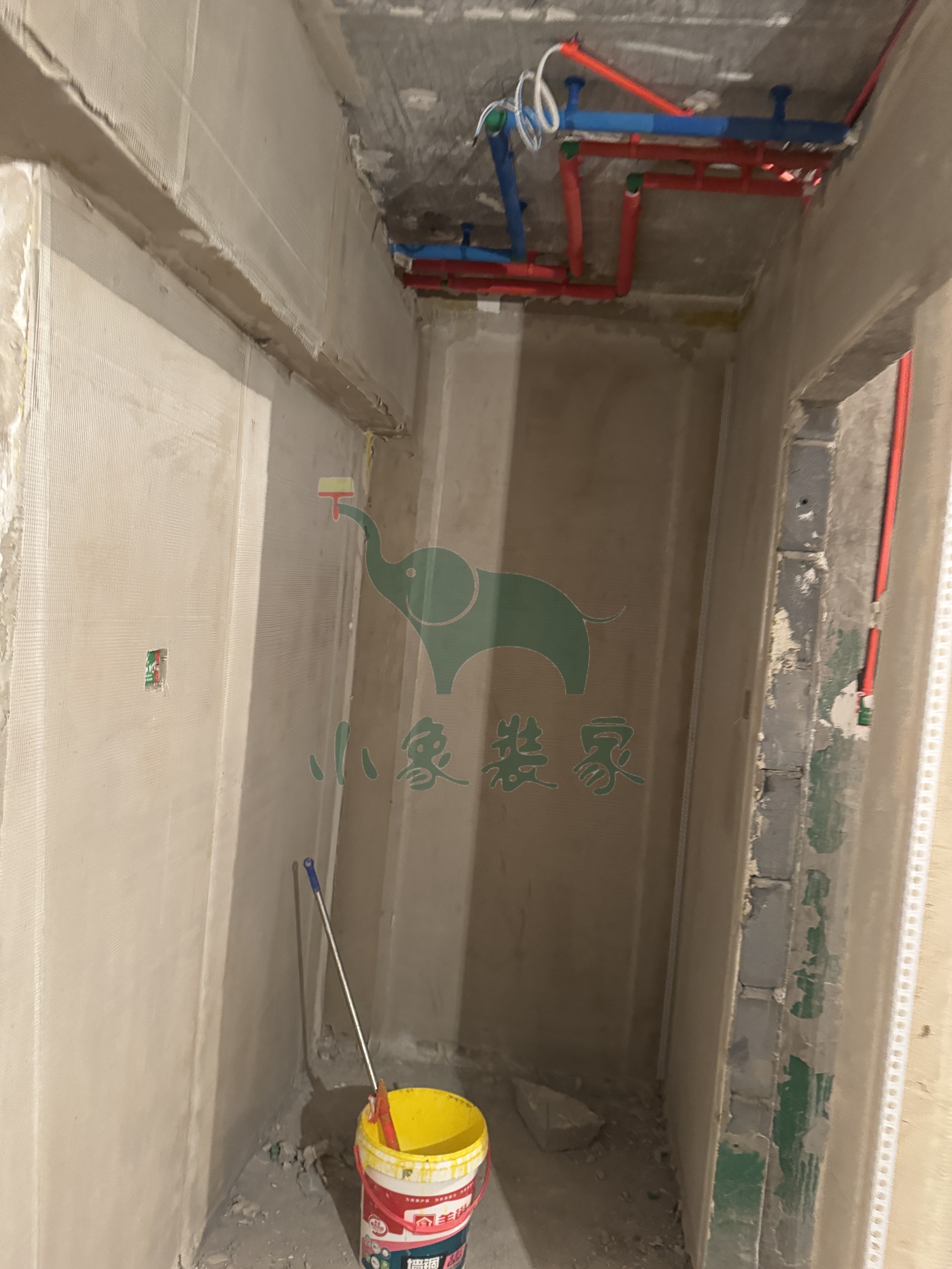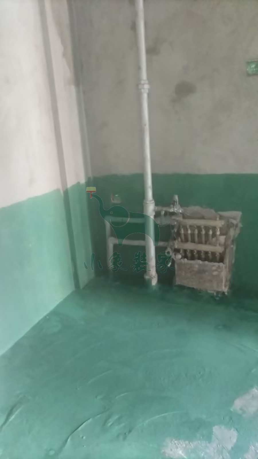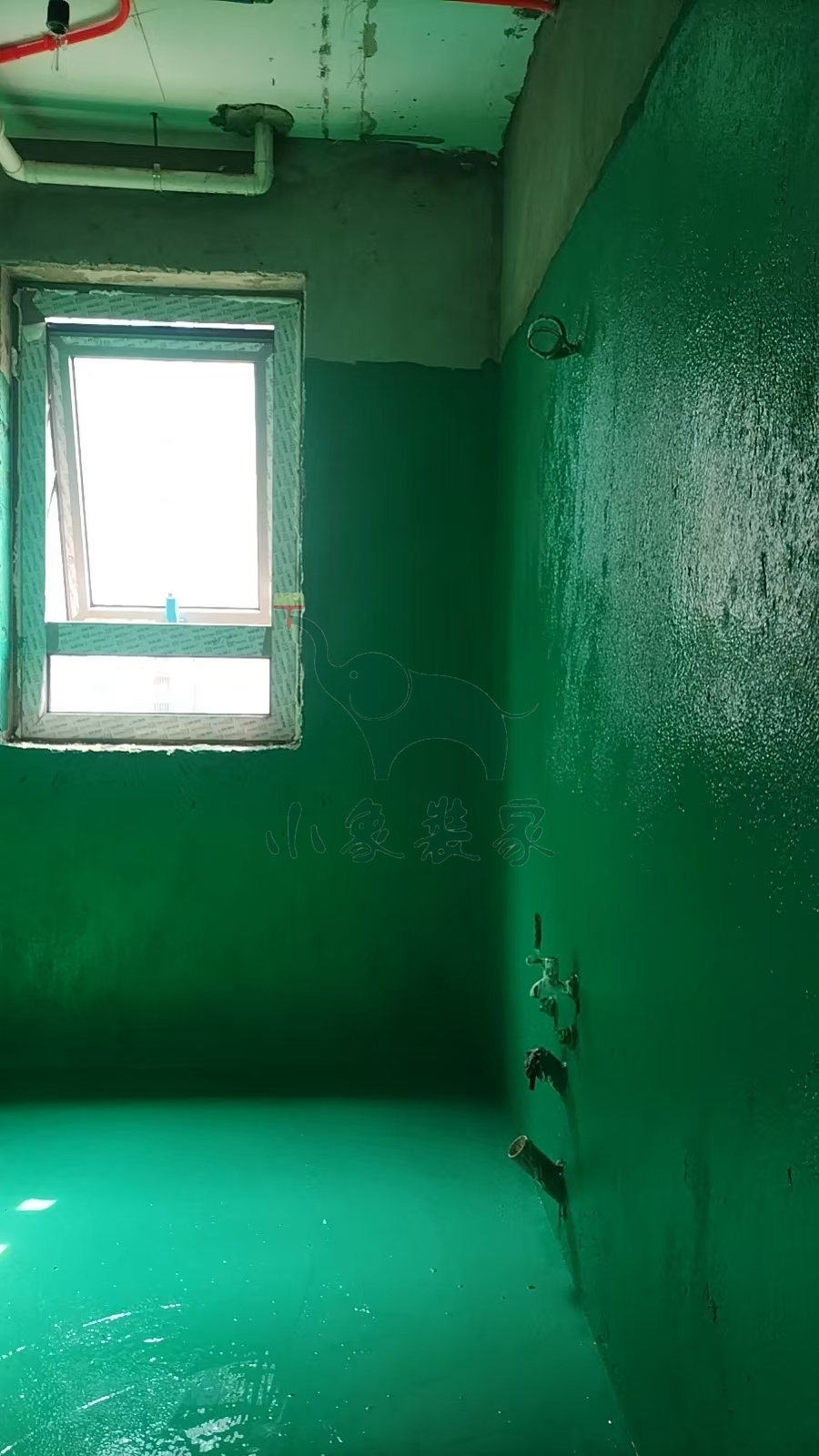 瓦工工程-滚刷第一遍防水已完工。