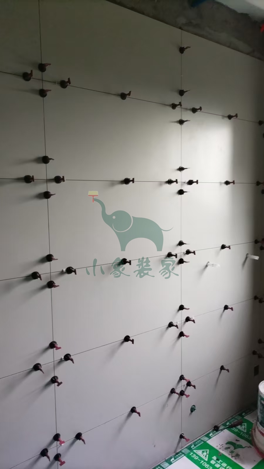 瓦工工程-厨房墙砖铺贴还需2天。