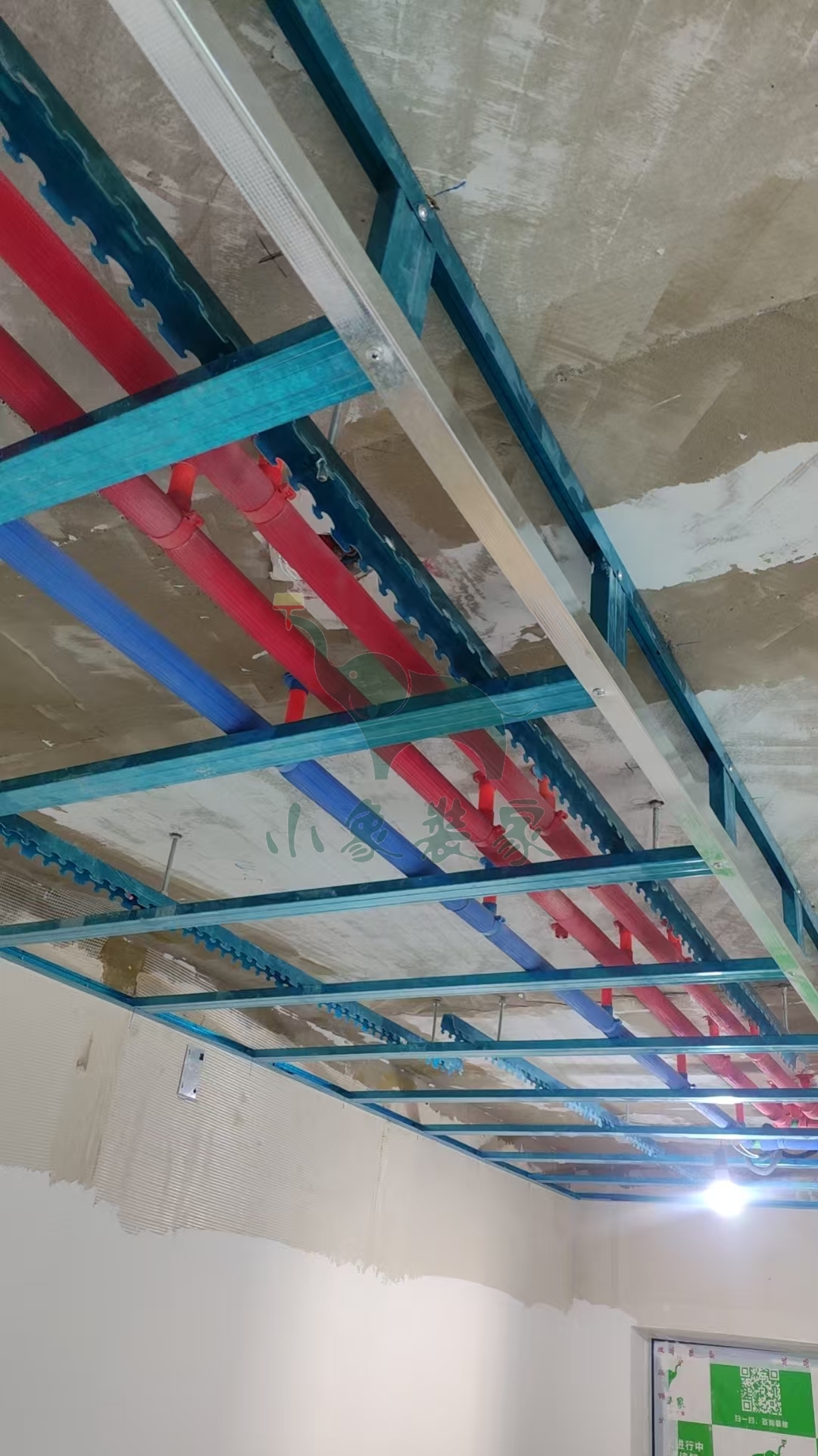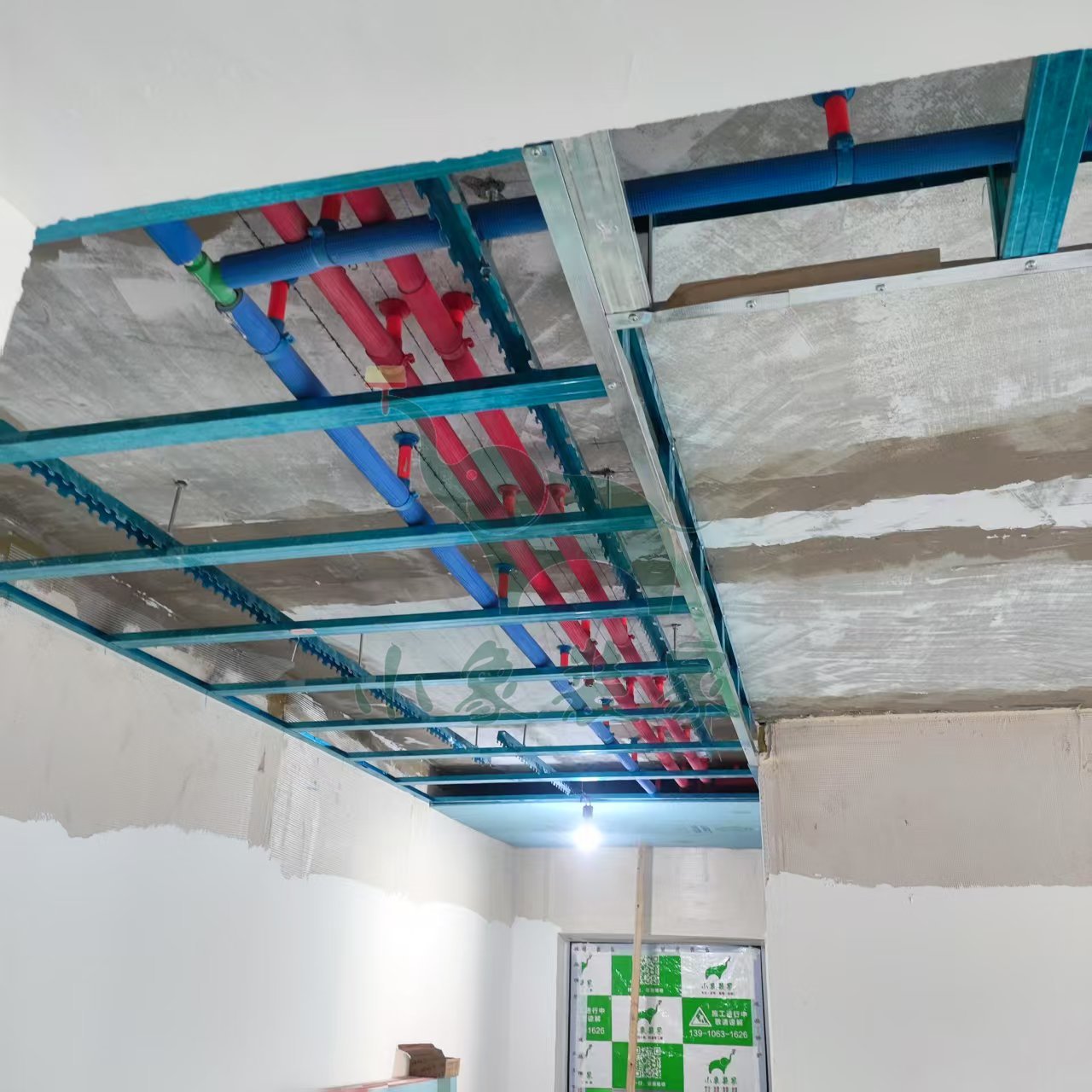 木工工程-木工弹线、吊筋支架、龙骨已完工。