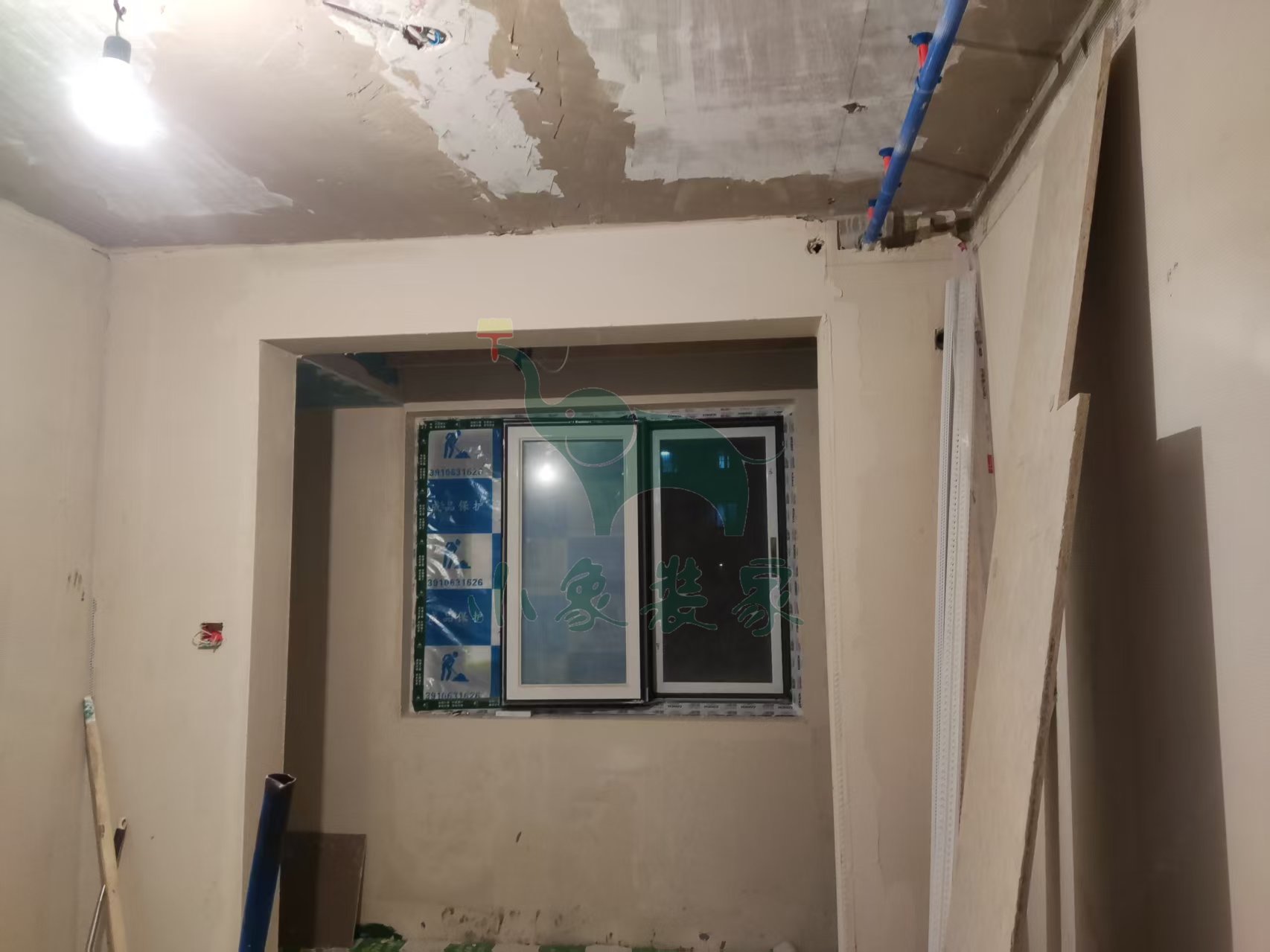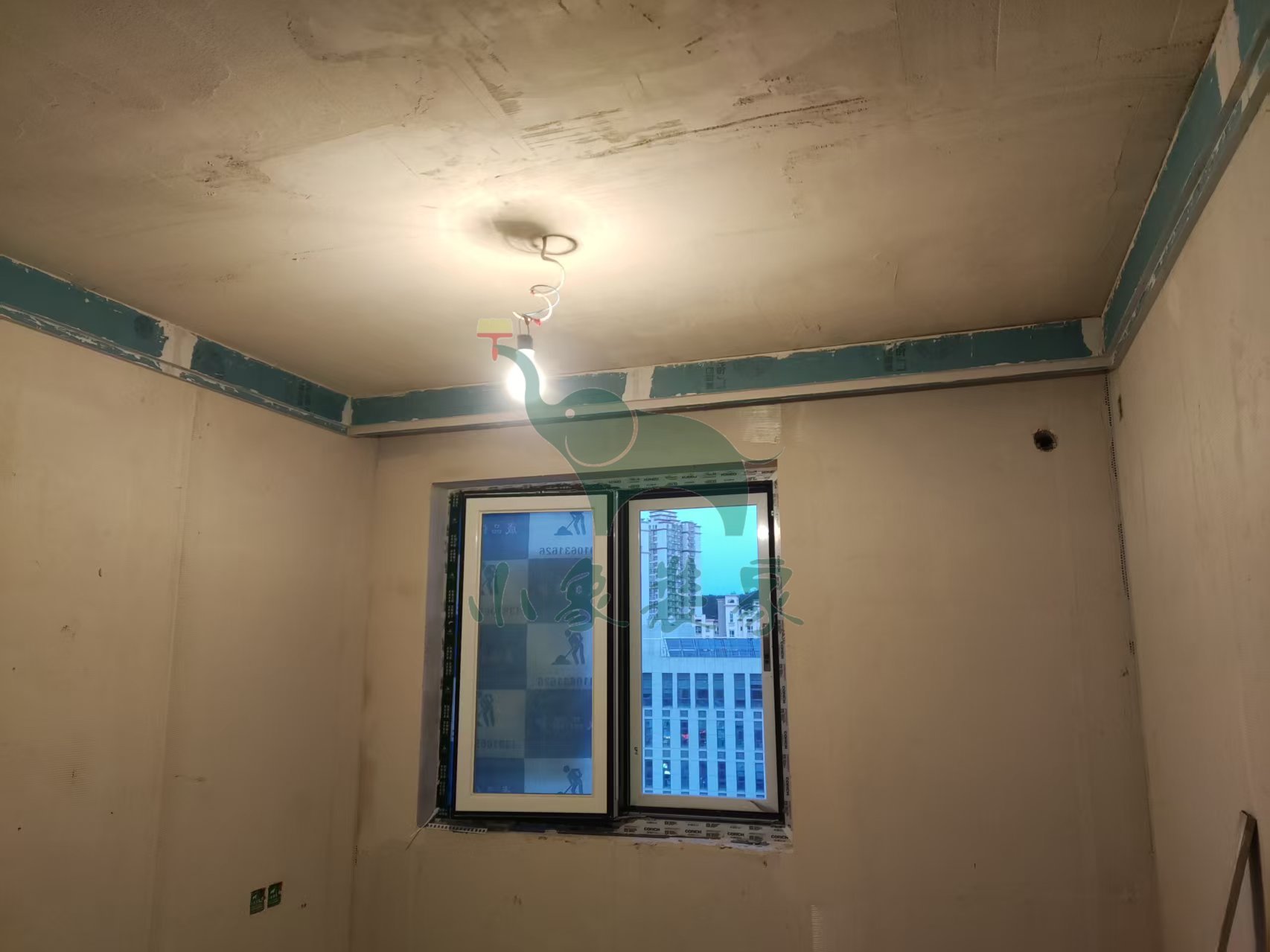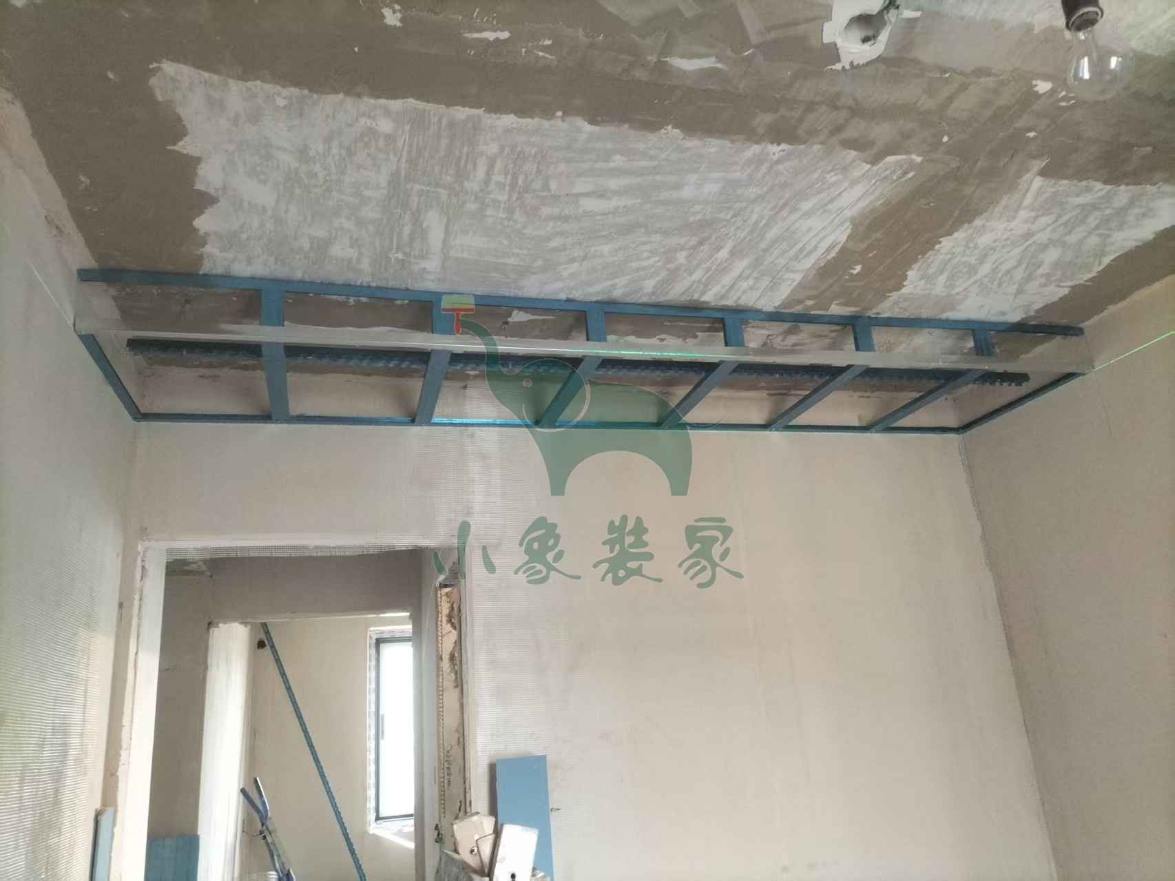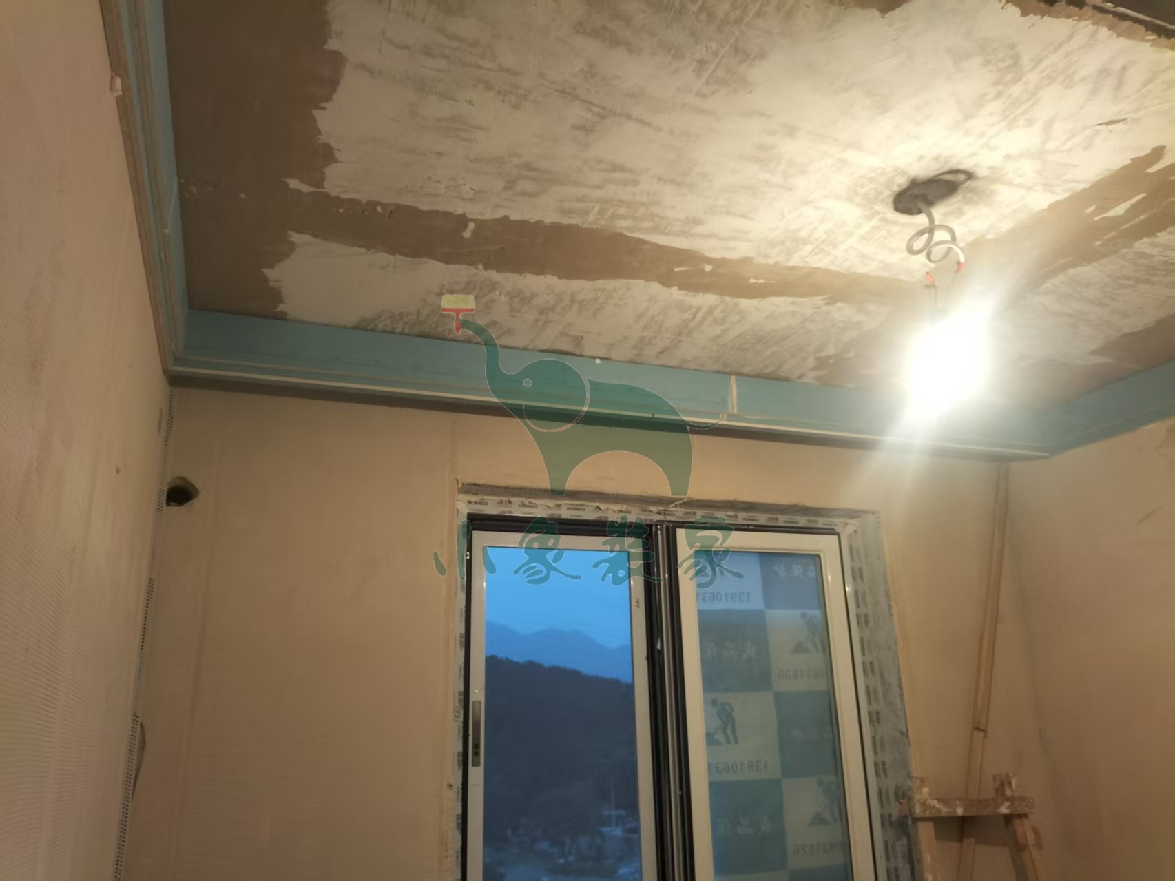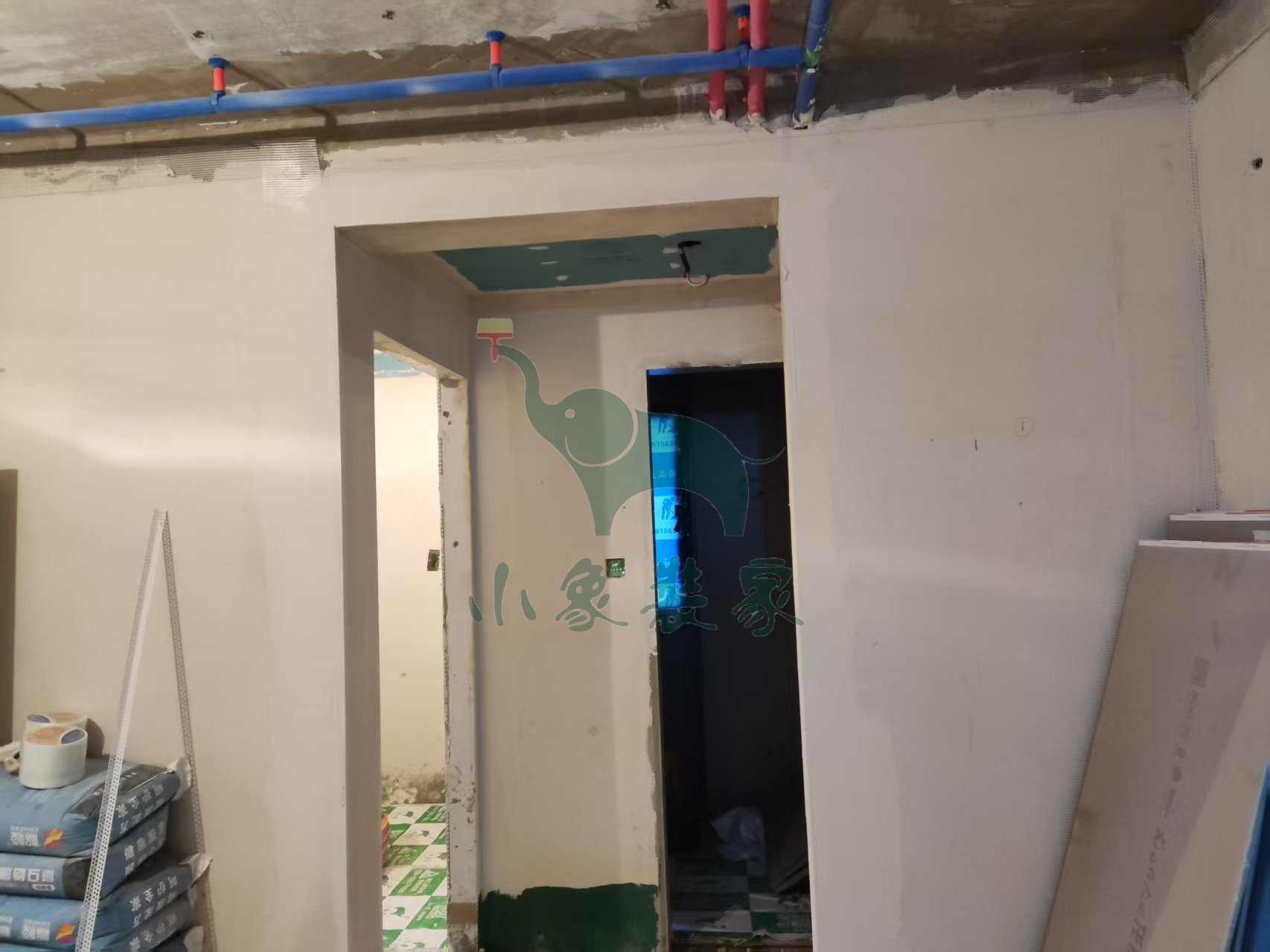 油工工程-墙面、顶面石膏找平还需1天。