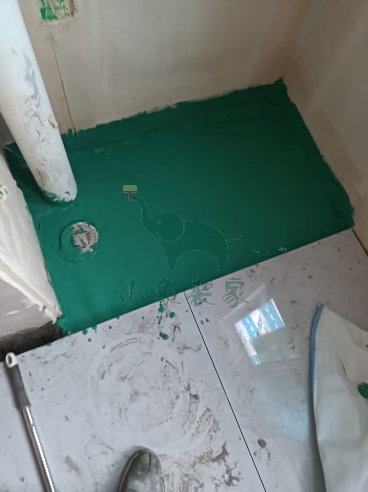 瓦工工程-滚刷第一遍防水已完工