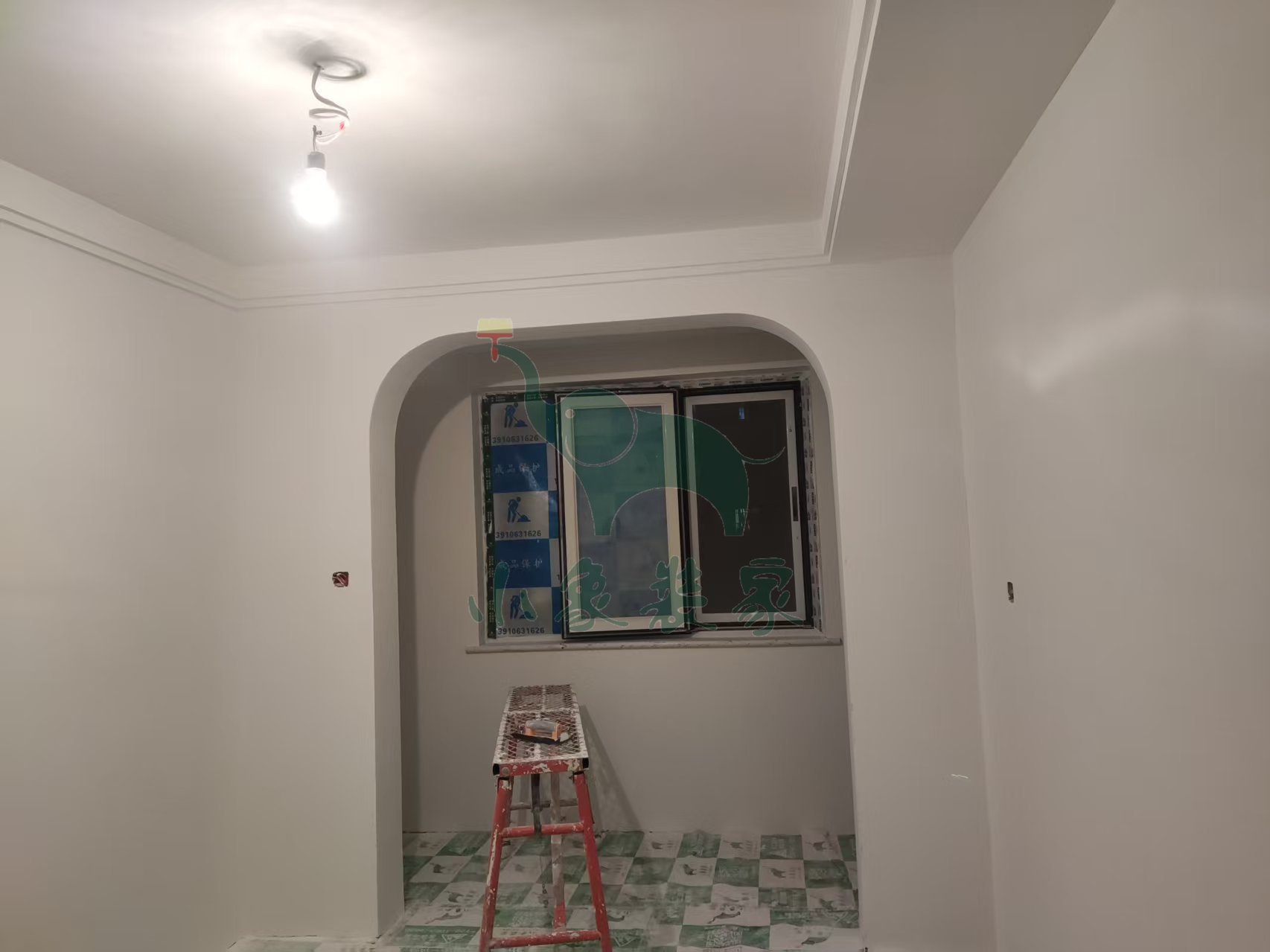 油工工程-墙顶面打磨砂纸已完工。