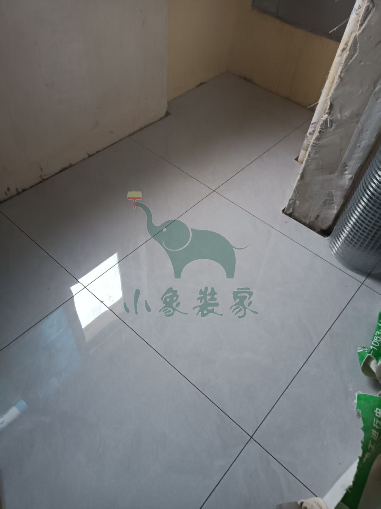 瓦工工程-铺贴大地砖还需2天。