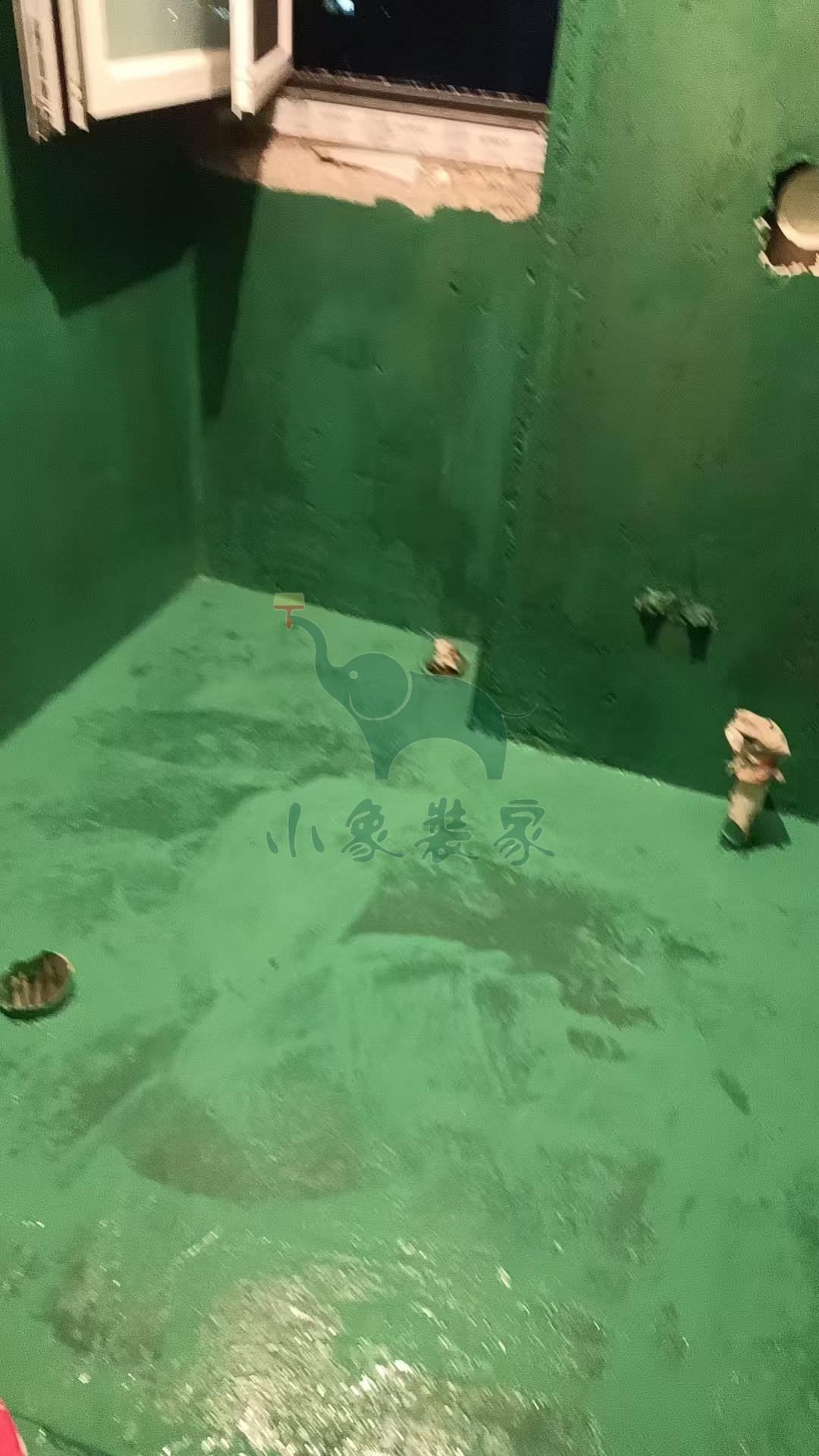 瓦工工程-卫生间地面抹平已完工。