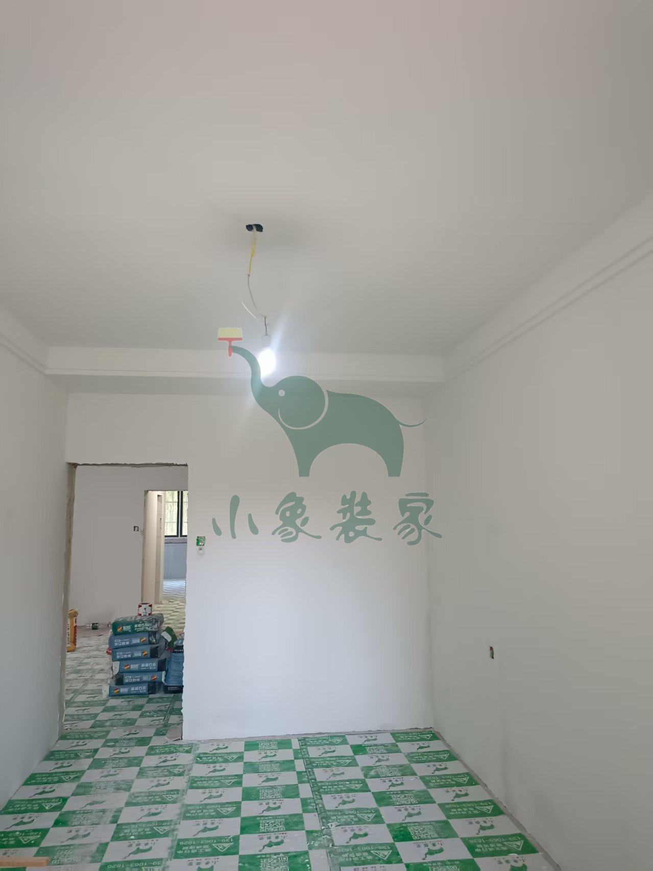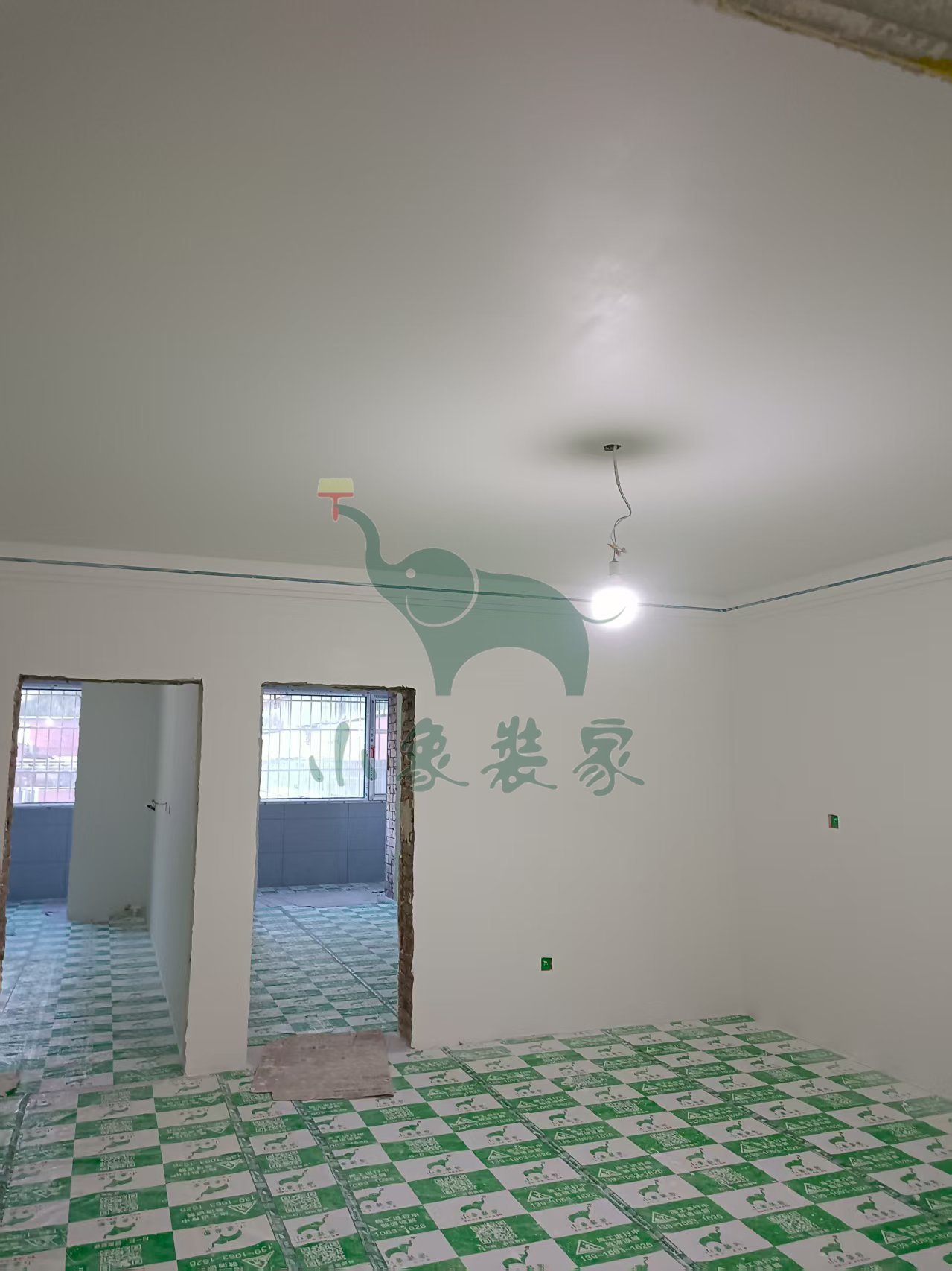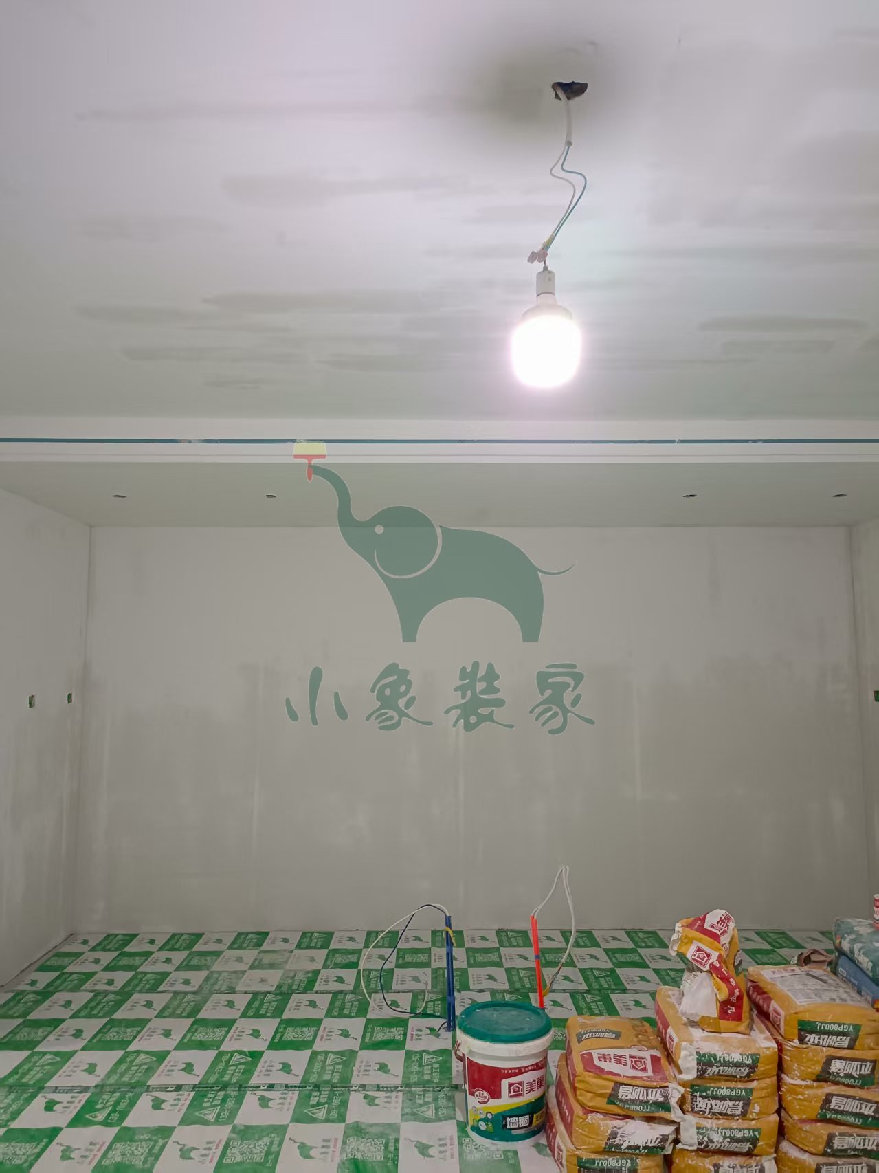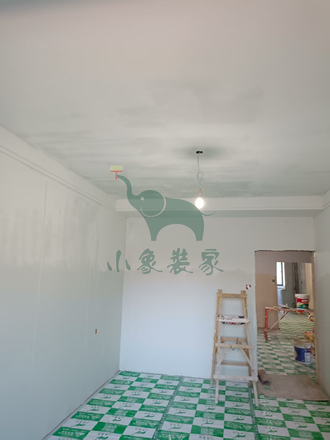 油工工程-墙顶面底漆完工后修补还需1天。