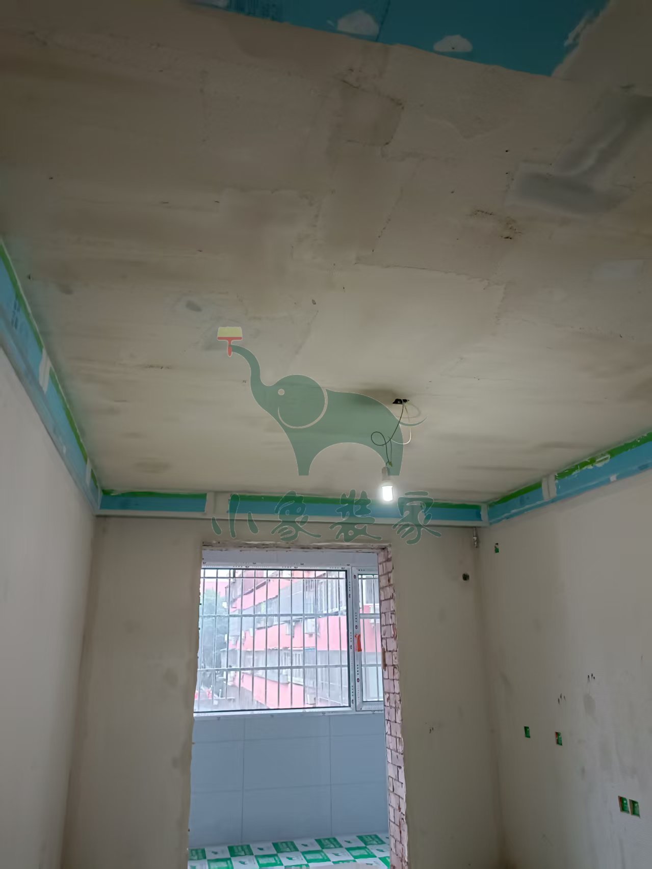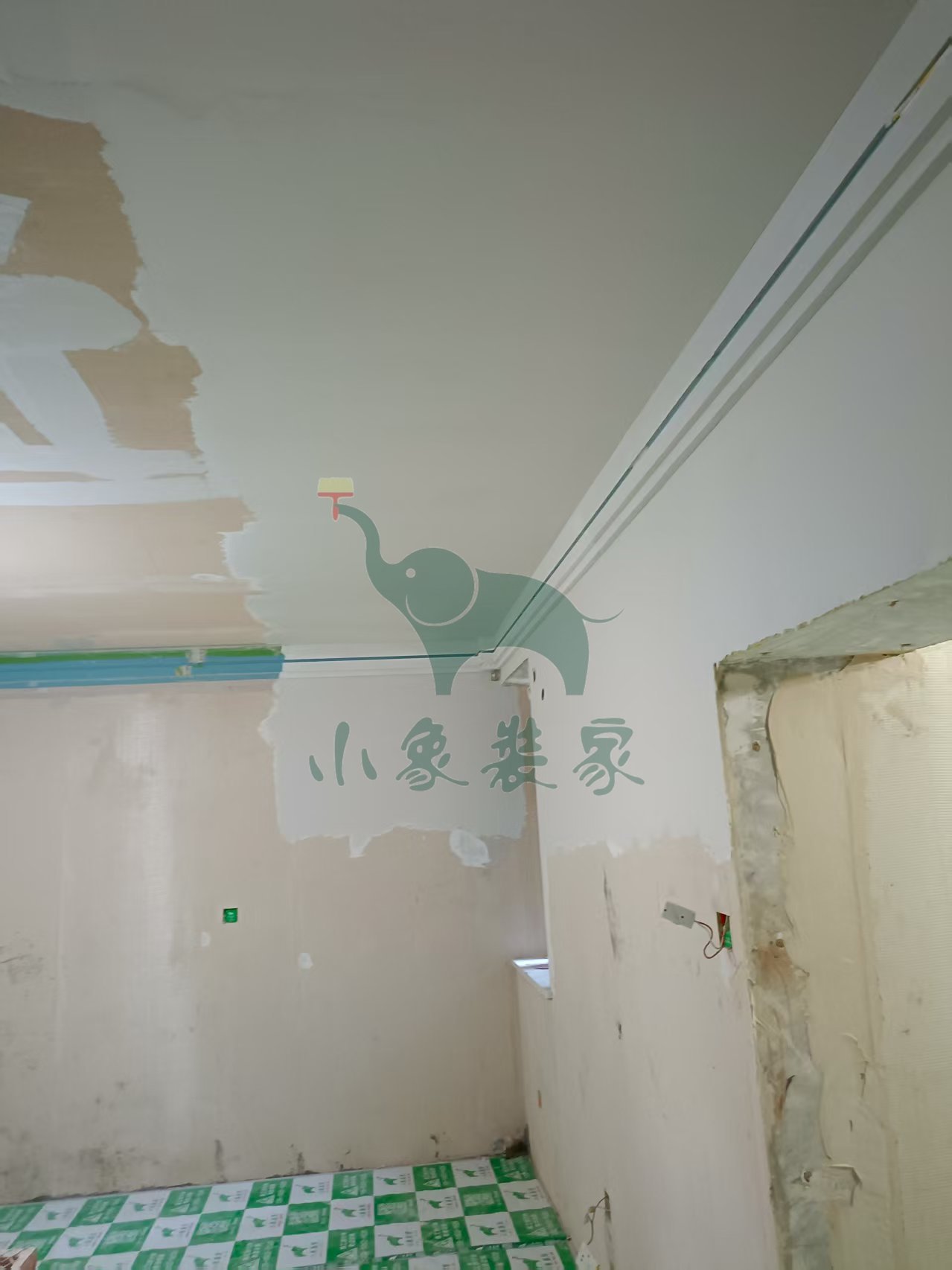 油工工程-墙顶面底漆完工后修补。