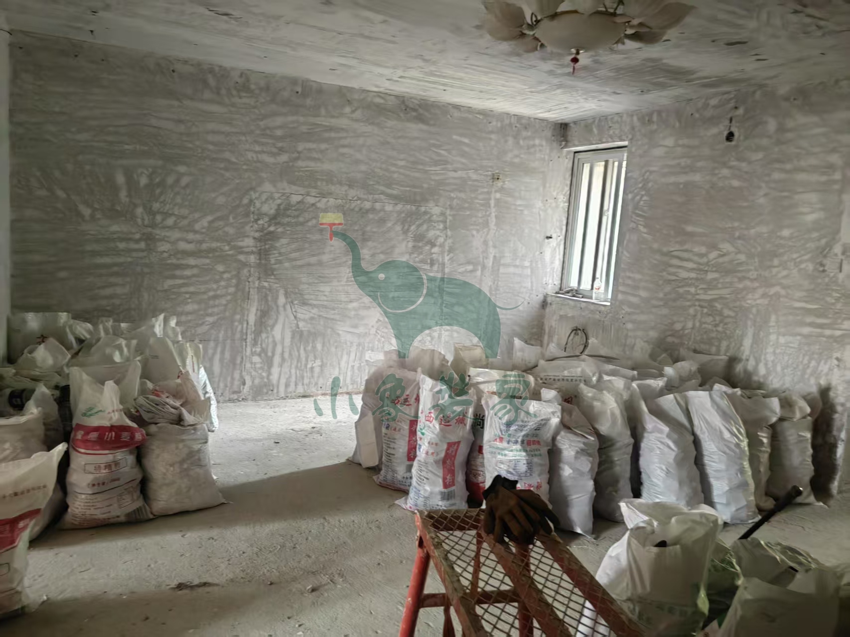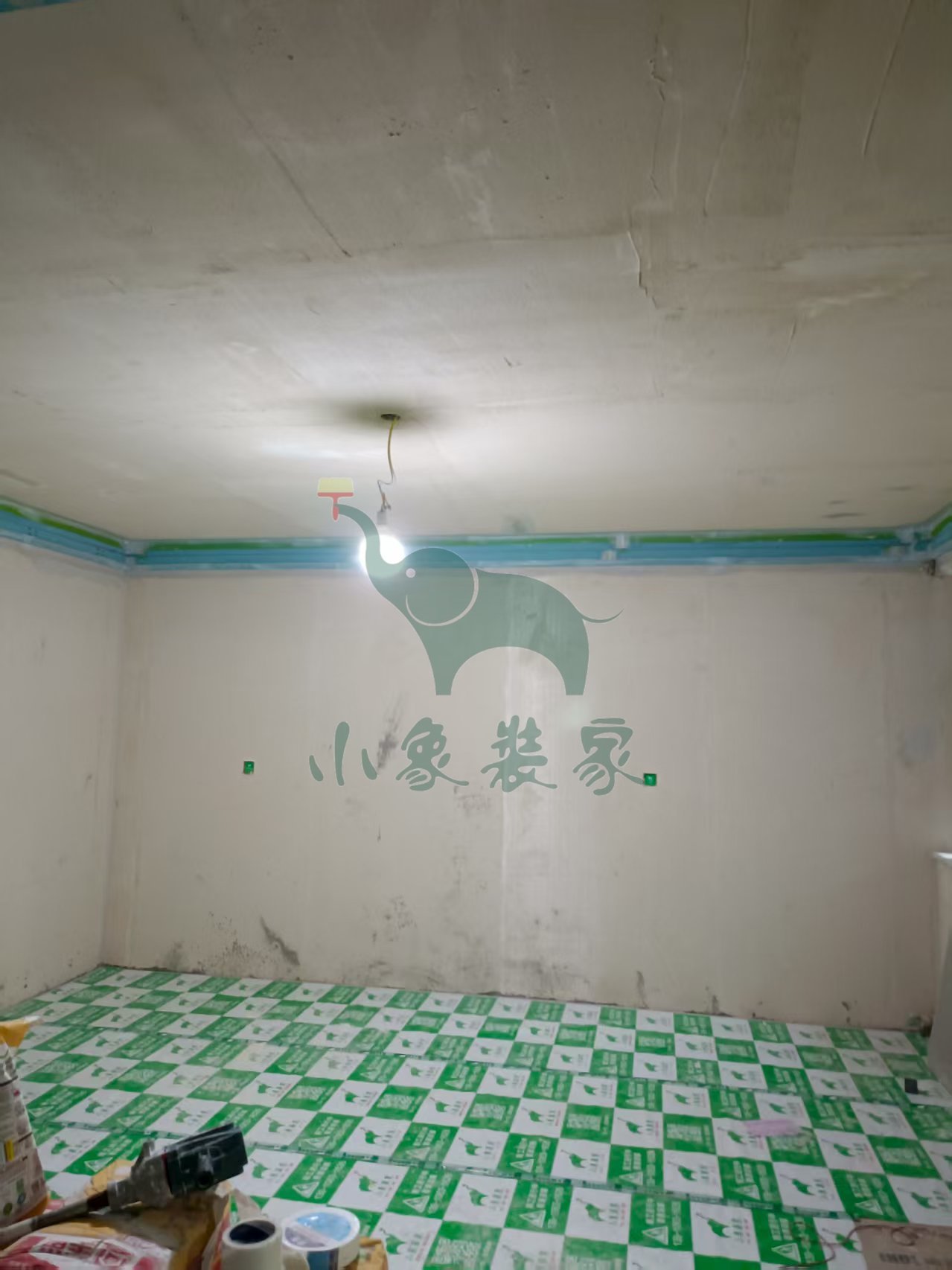 油工工程-墙顶面打磨砂纸已完工。