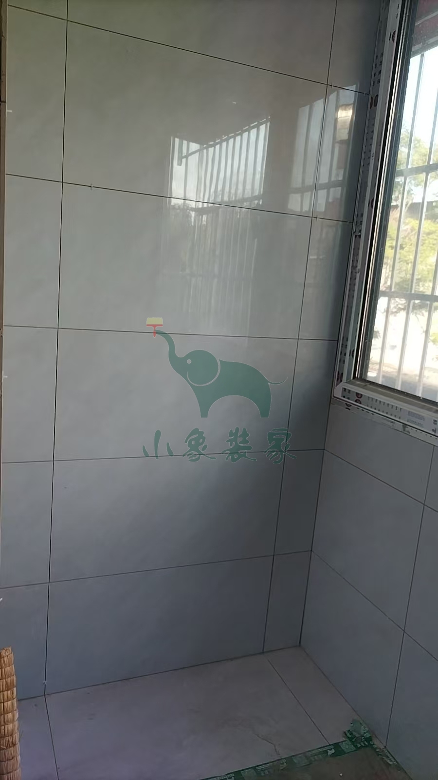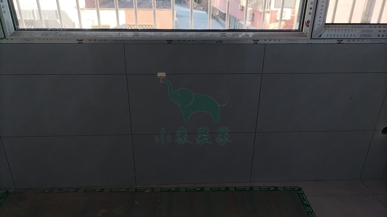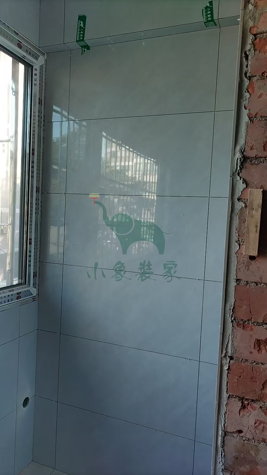 瓦工工程-阳台粘贴墙砖已完工。