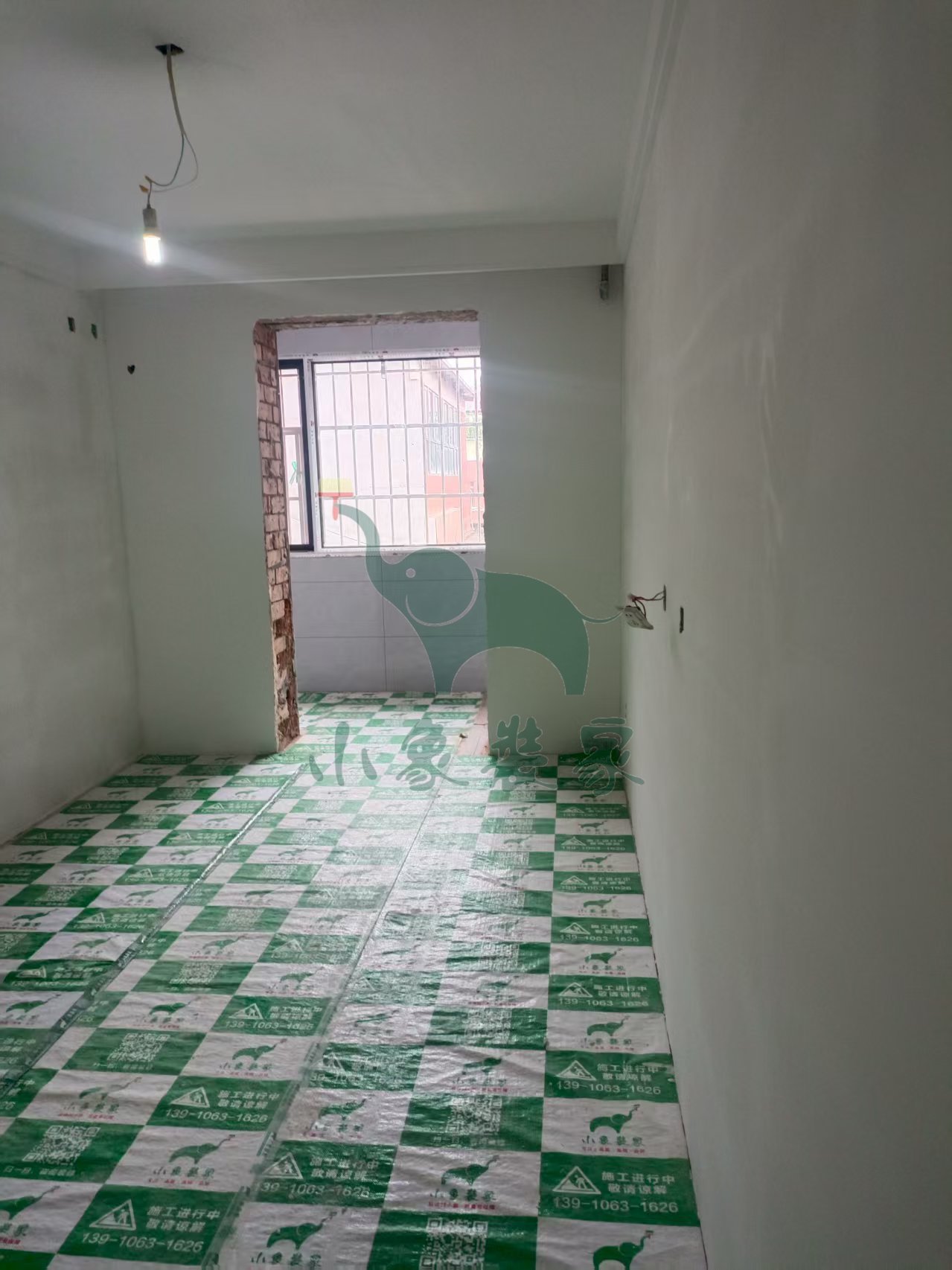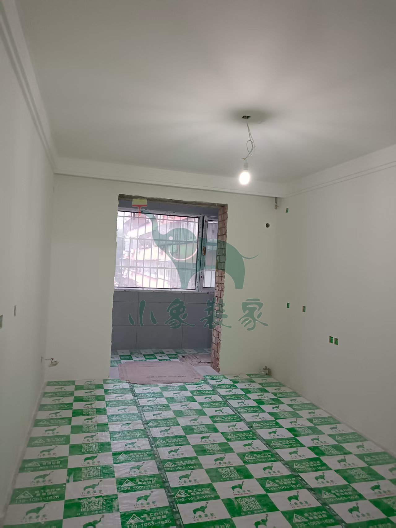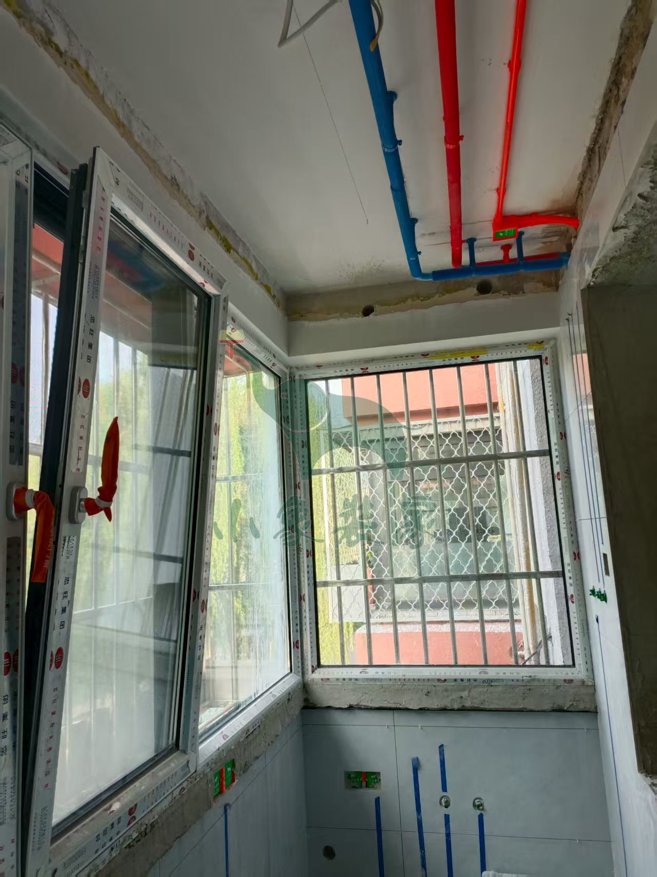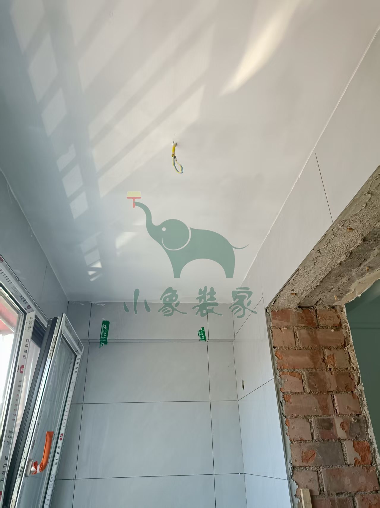 瓦工工程-阳台粘贴墙砖已完工。