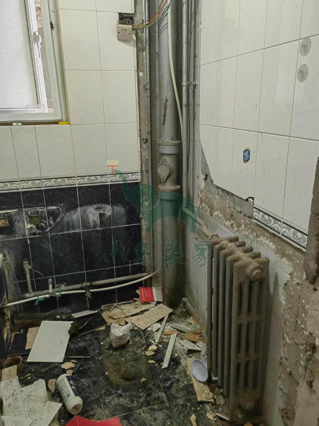 拆除工程-拆除卫生间墙地砖还需1天。