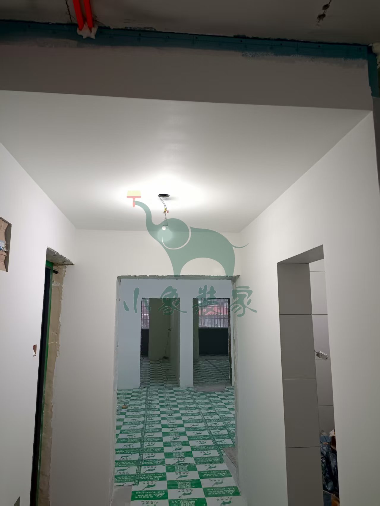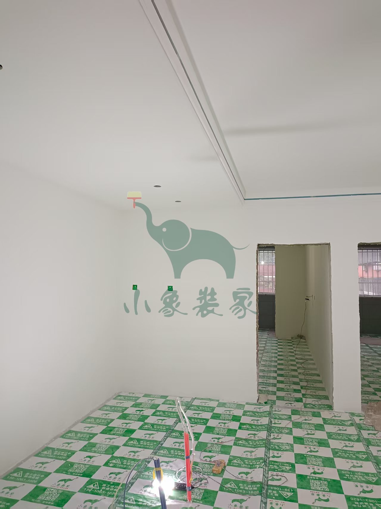 油工工程-墙顶面滚刷底漆已完工