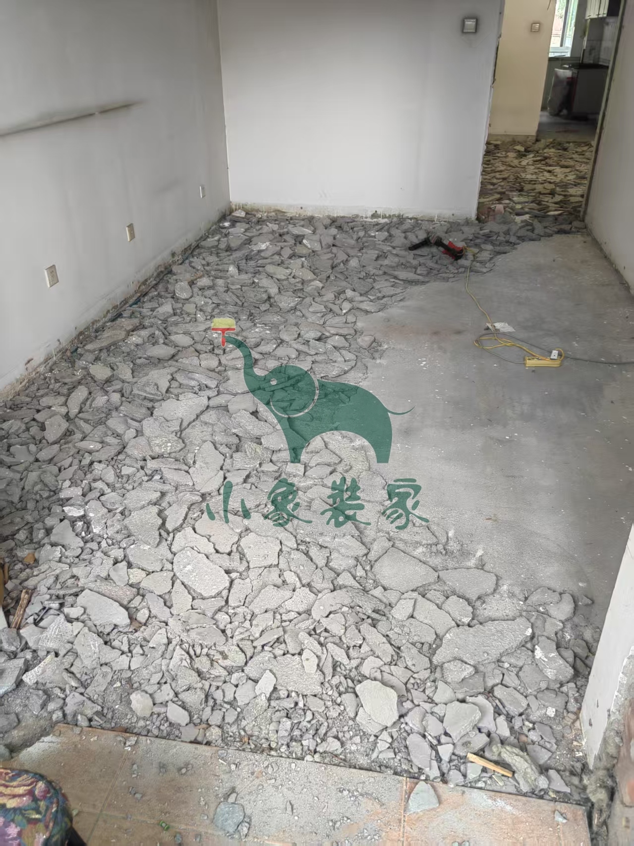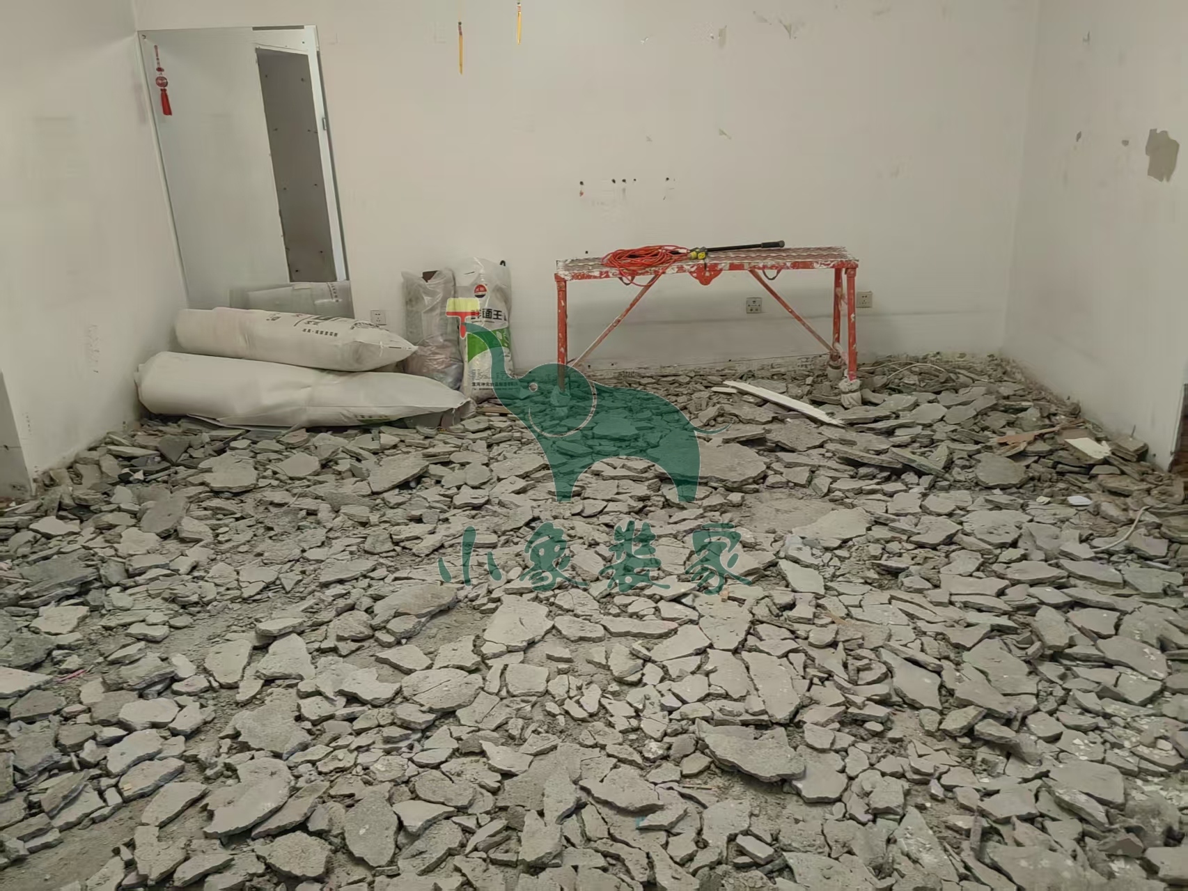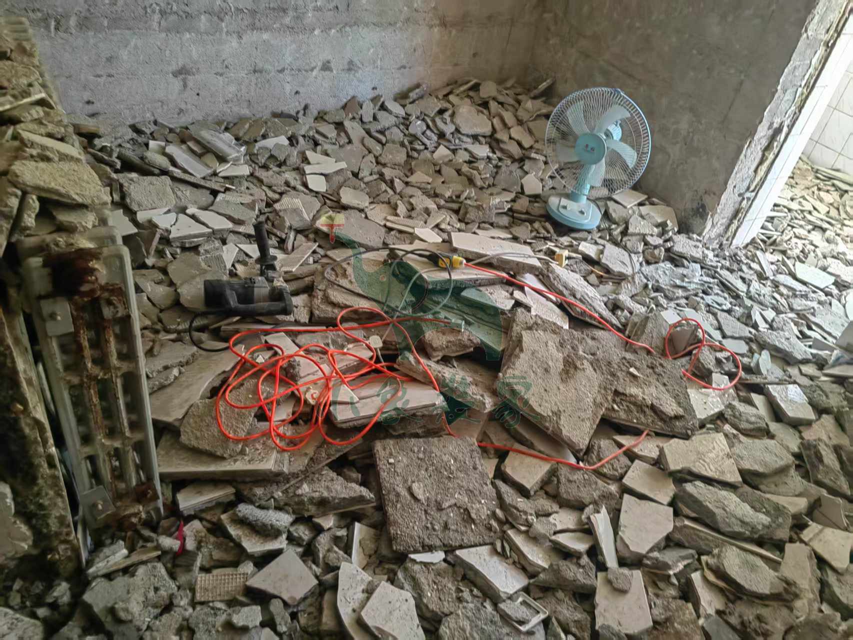 拆除工程-拆除大地砖、木地板还需2天。