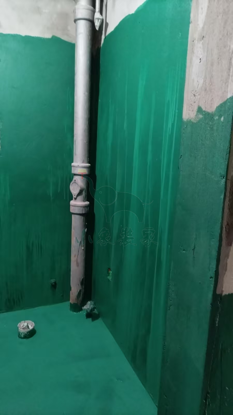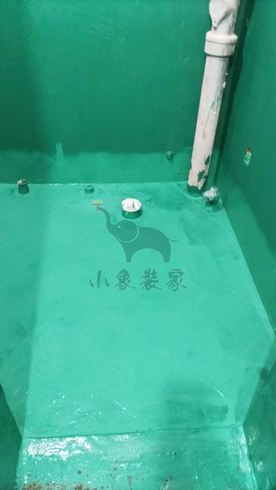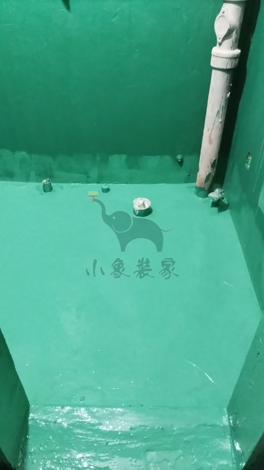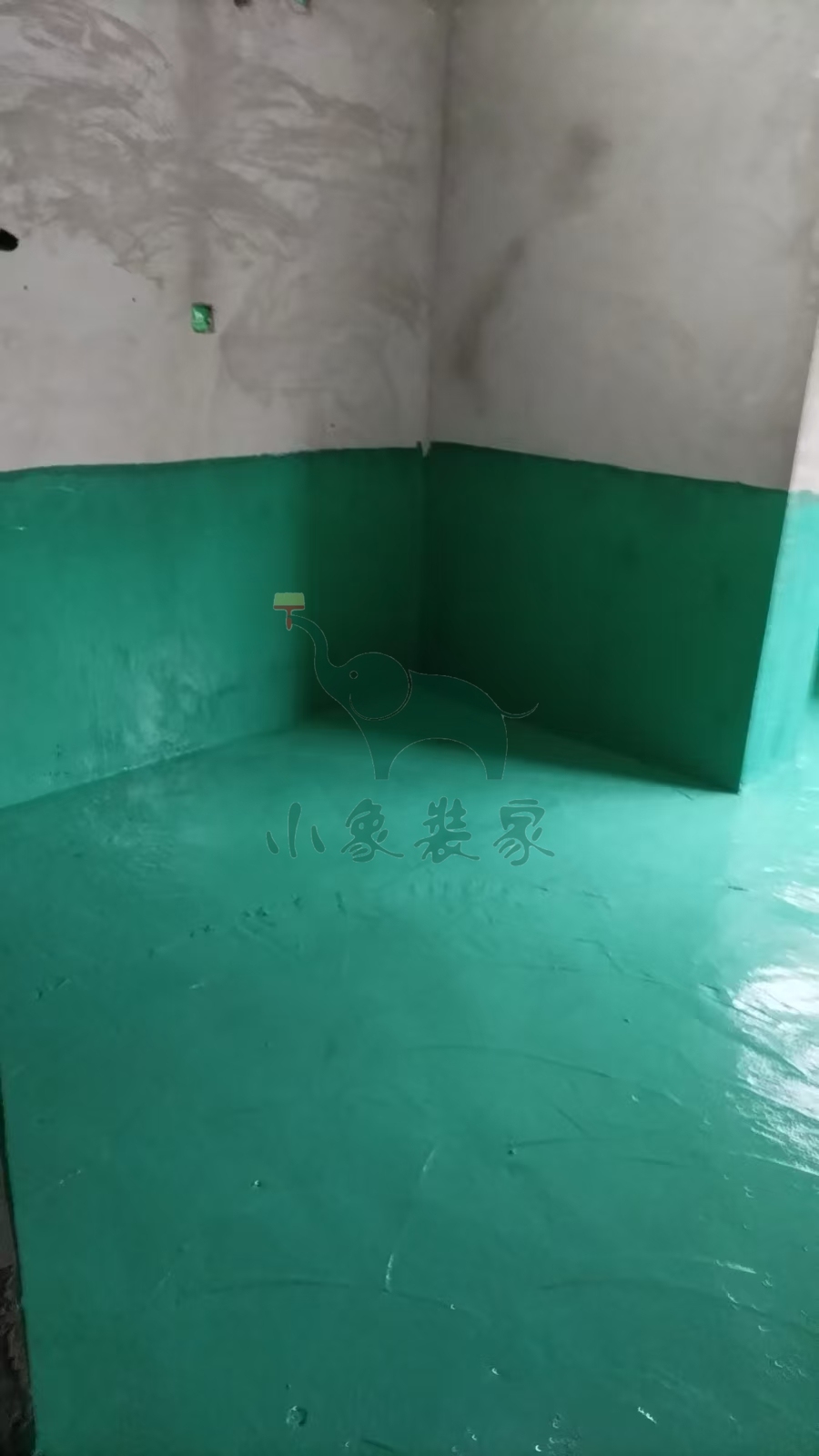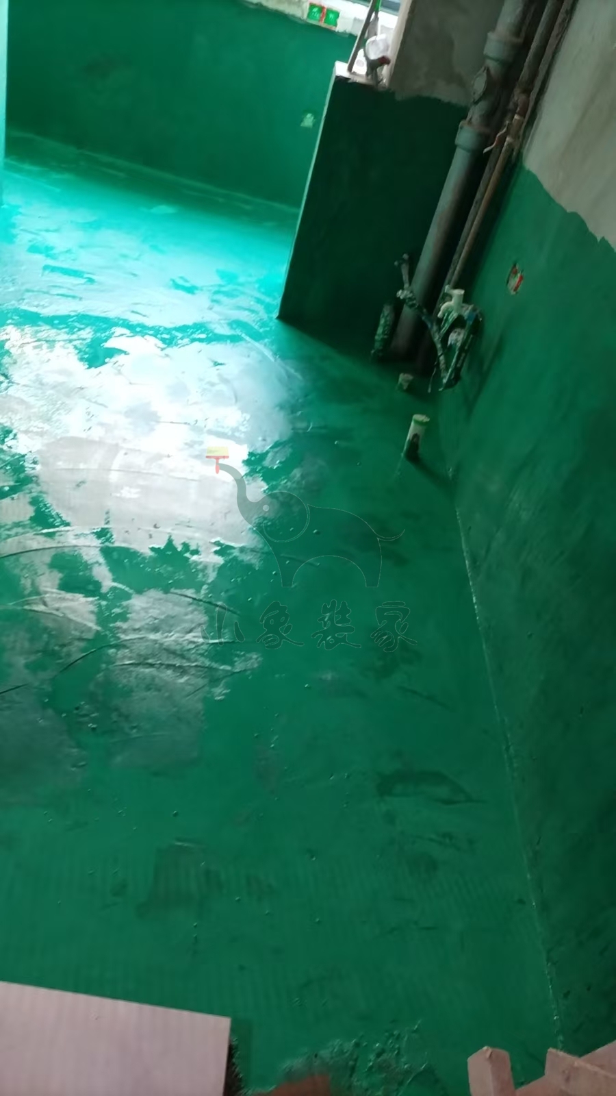 瓦工工程-滚刷地面第三遍防水已完工。