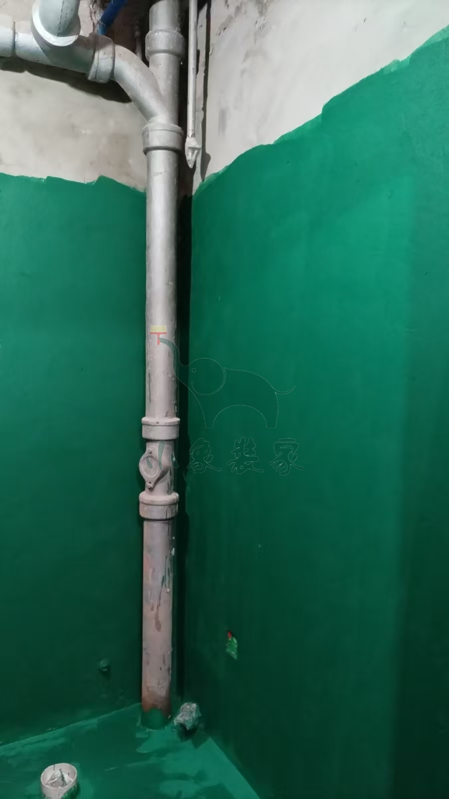 瓦工工程-滚刷第一遍防水已完工。