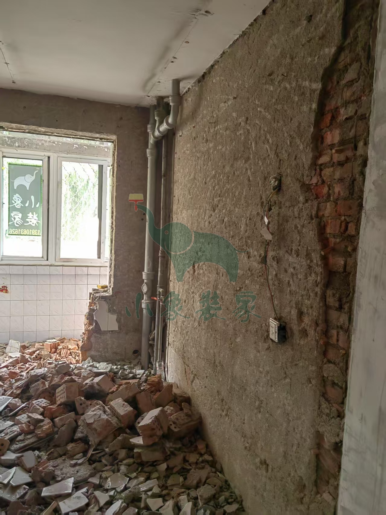 拆除工程-拆除厨房墙地砖还需1天。