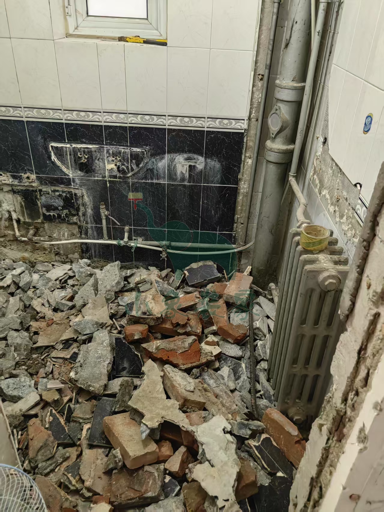 拆除工程-拆除卫生间墙地砖。