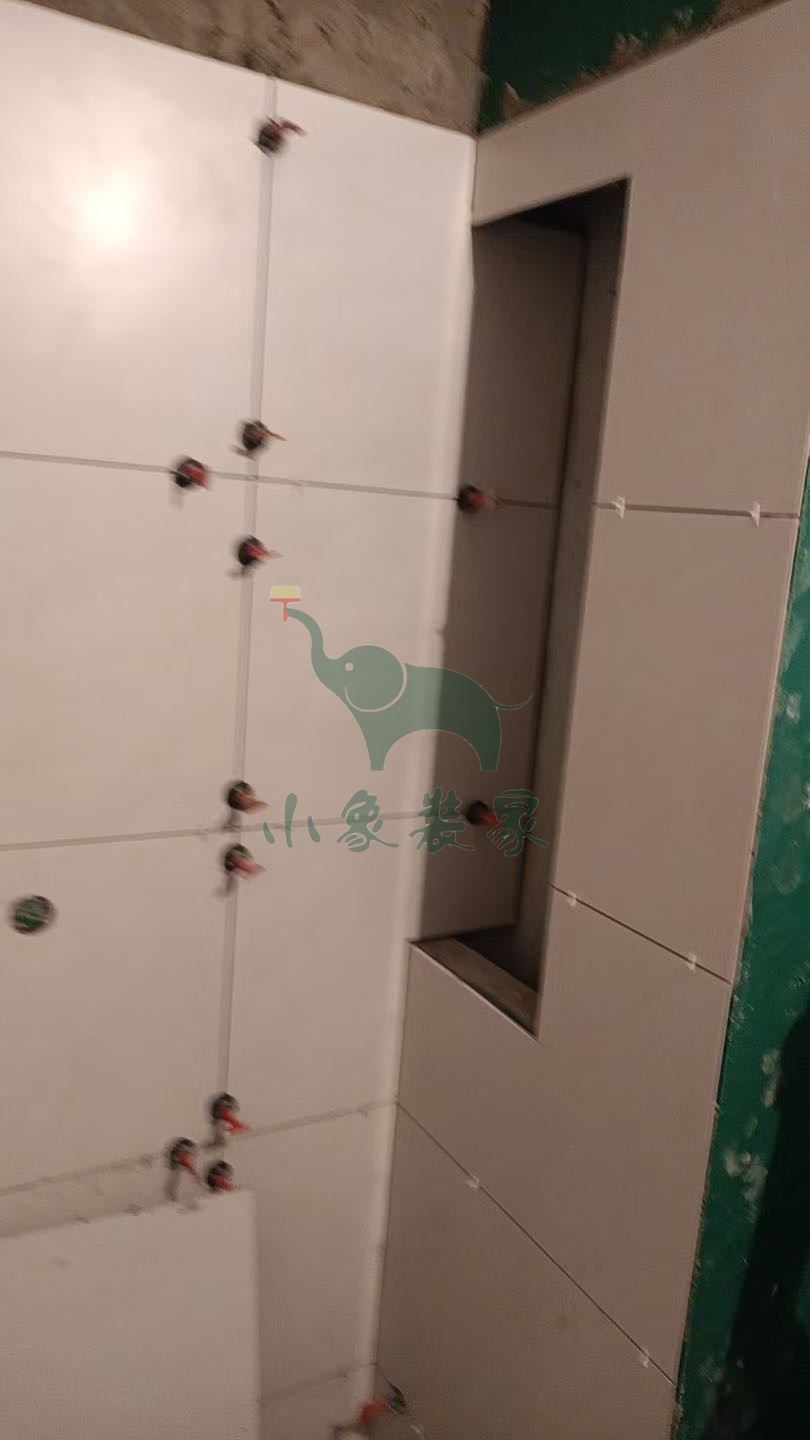 瓦工工程-卫生间墙砖铺贴还需2天。