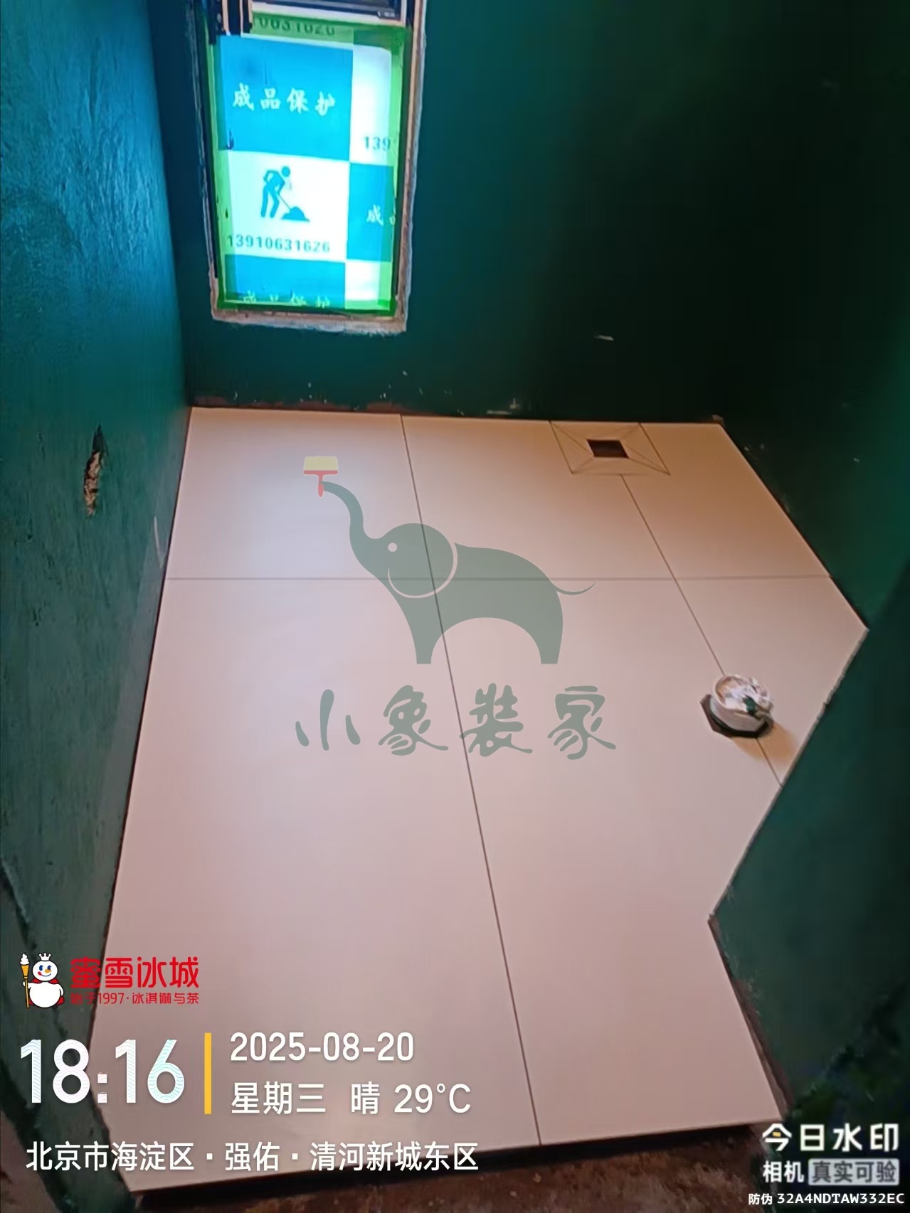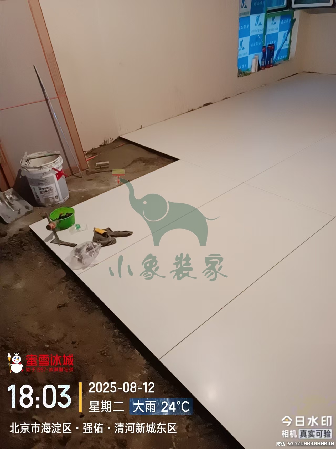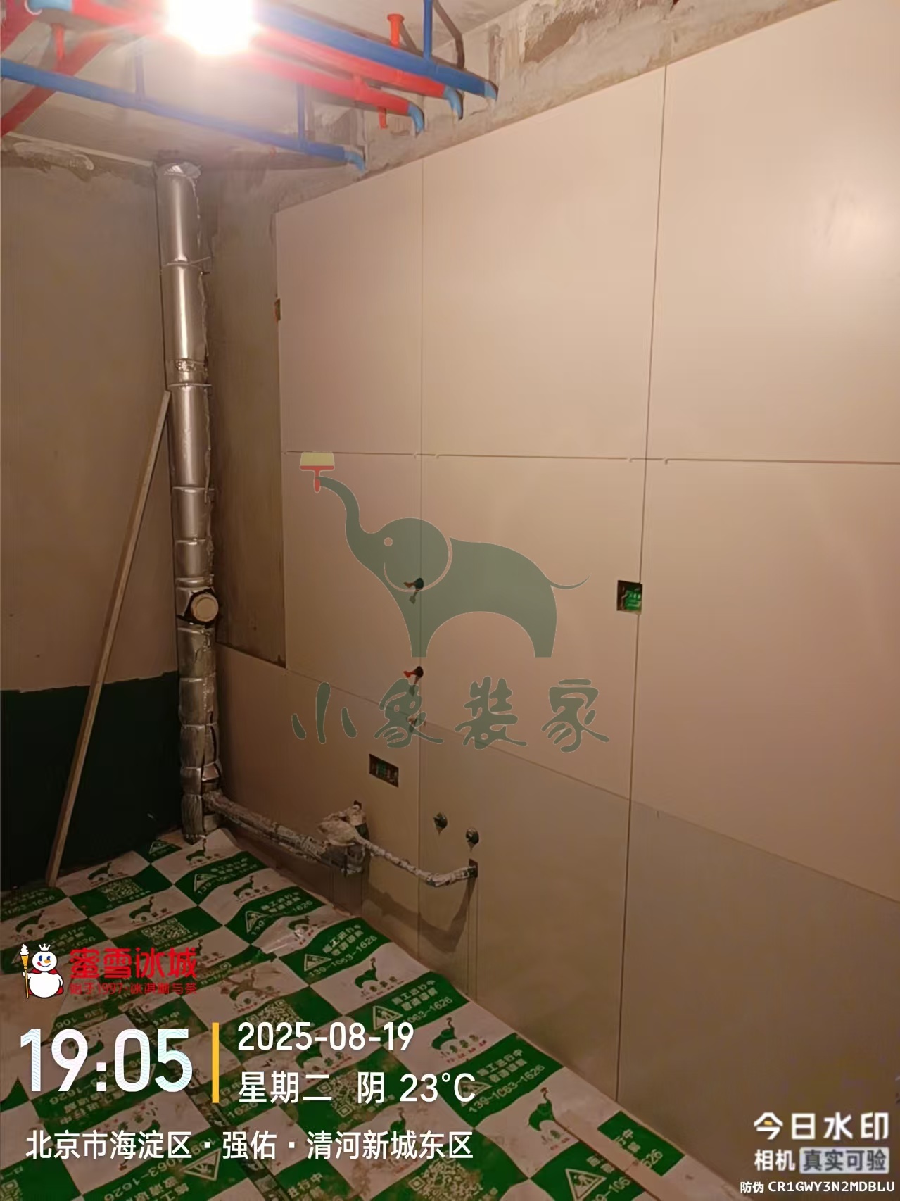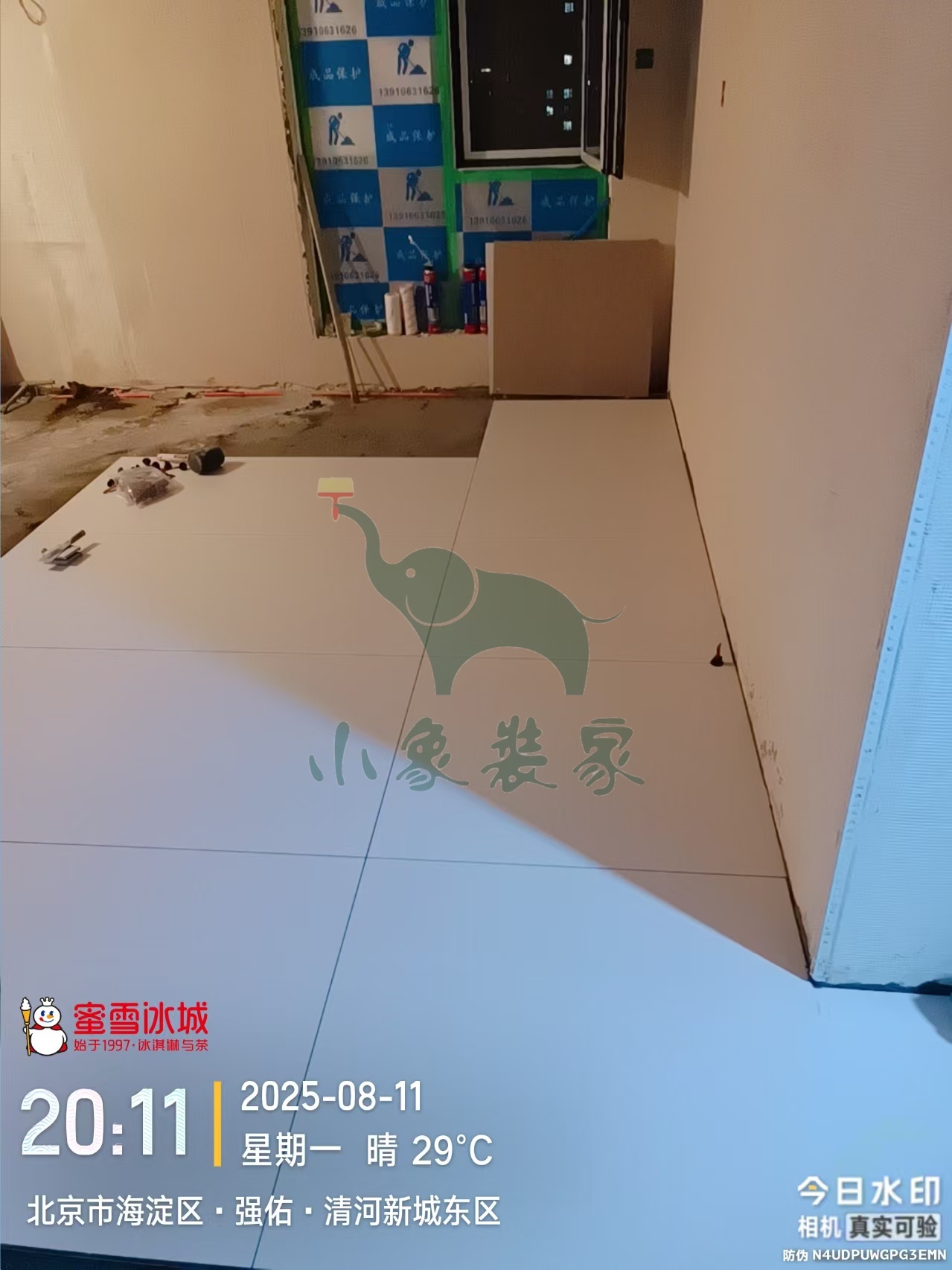 瓦工工程-卫生间墙砖铺贴还需1天。