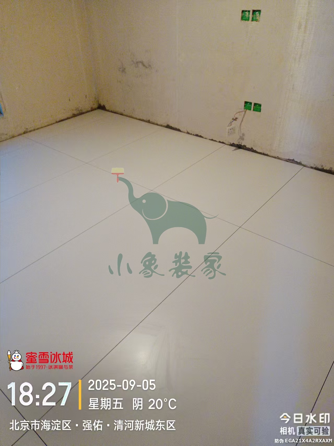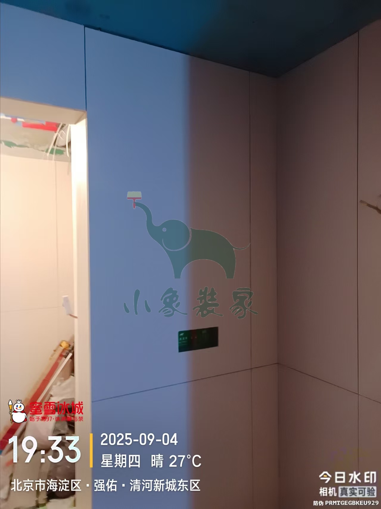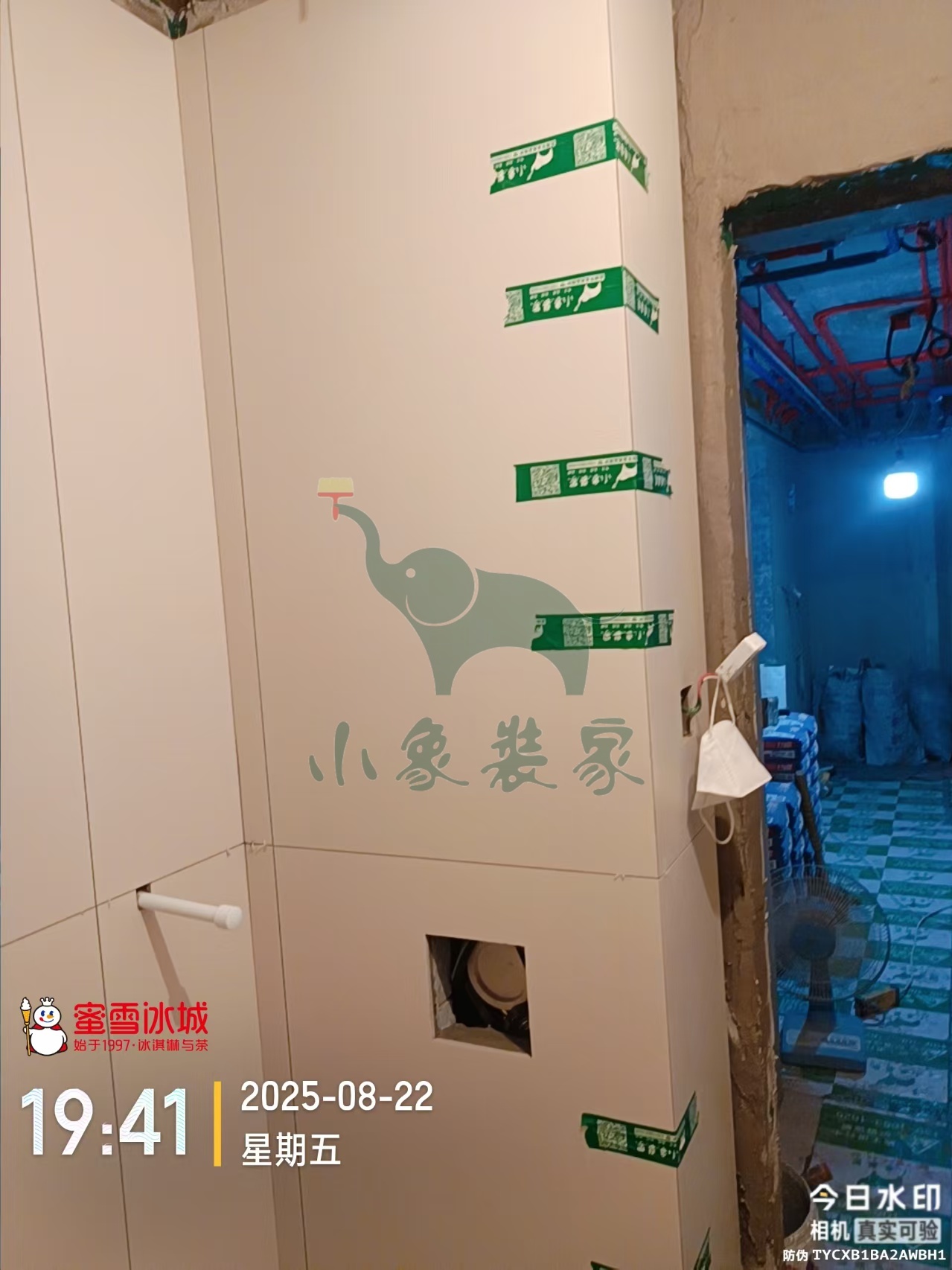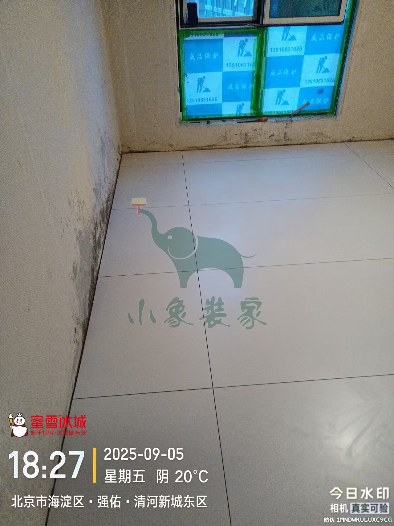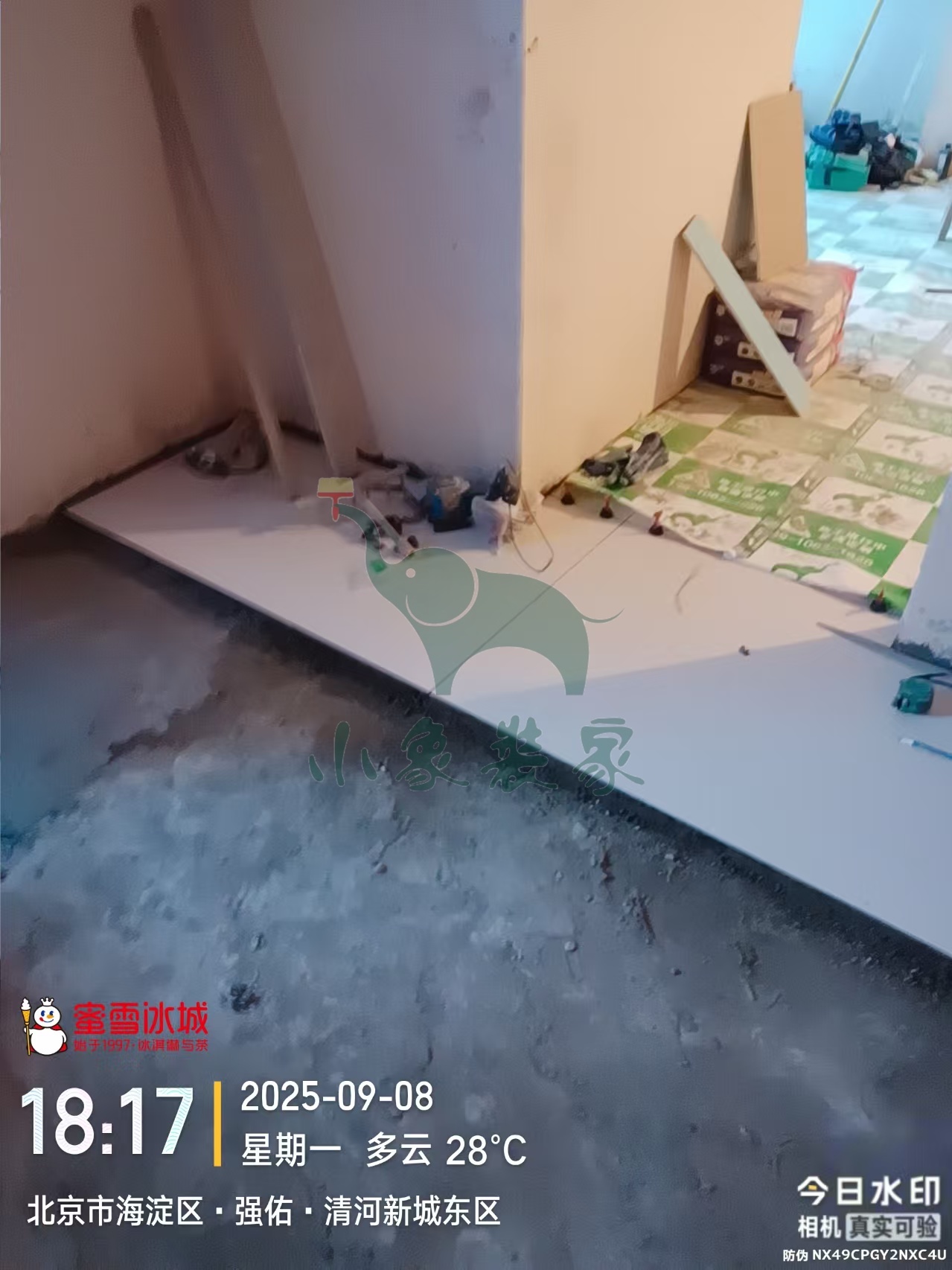 瓦工工程-卫生间墙砖铺贴还需1天。