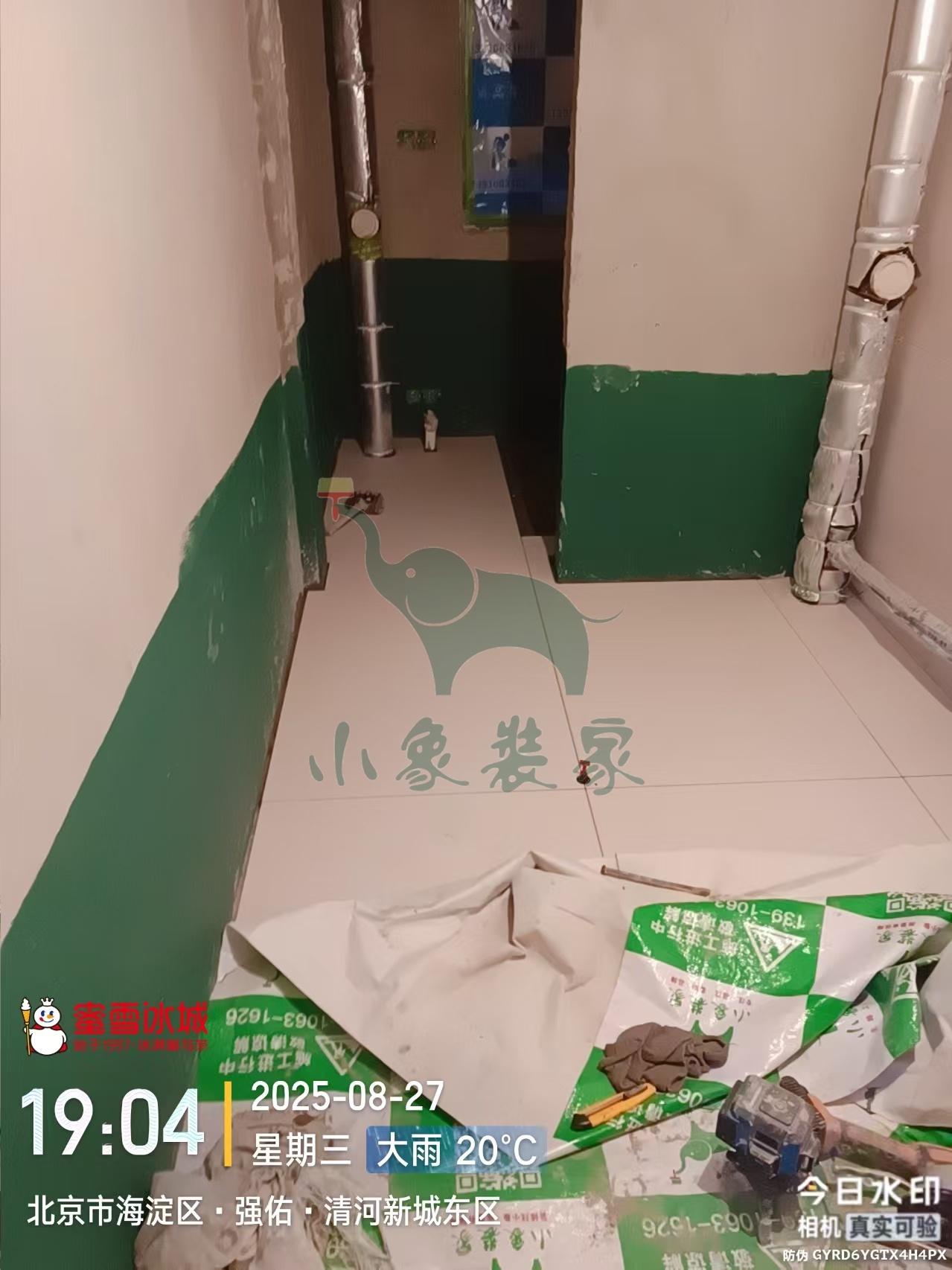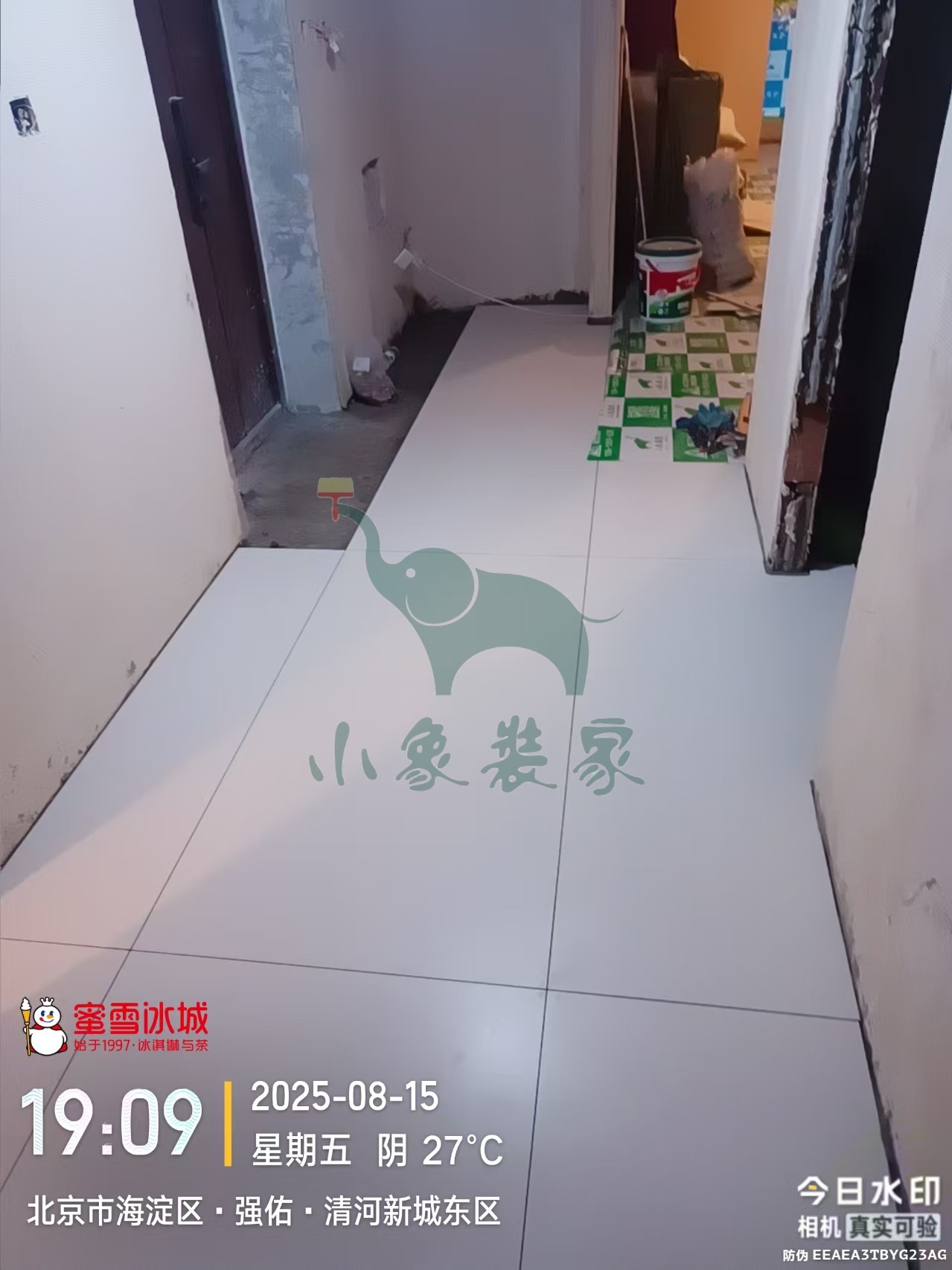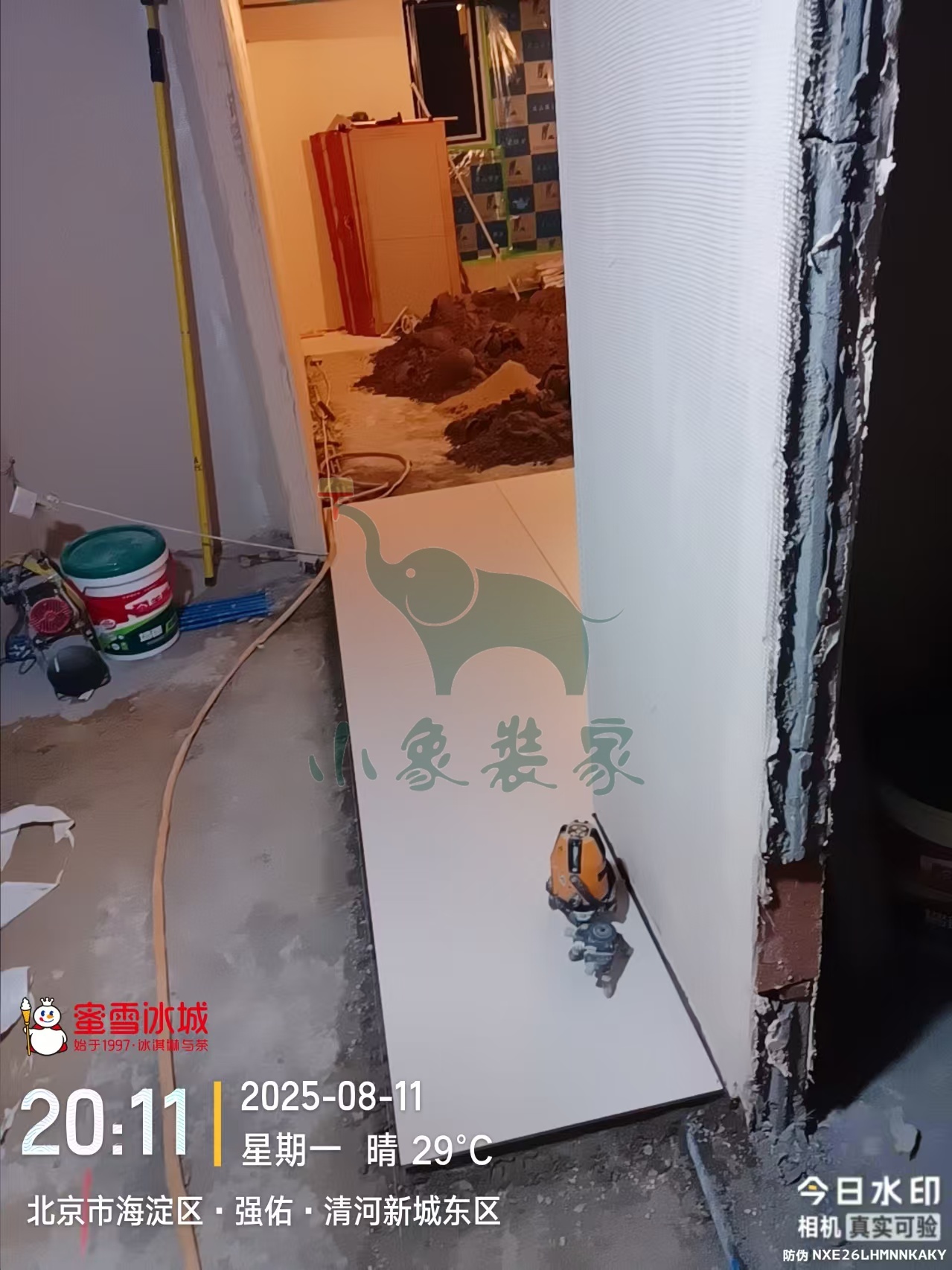 瓦工工程-卫生间墙砖铺贴还需2天。