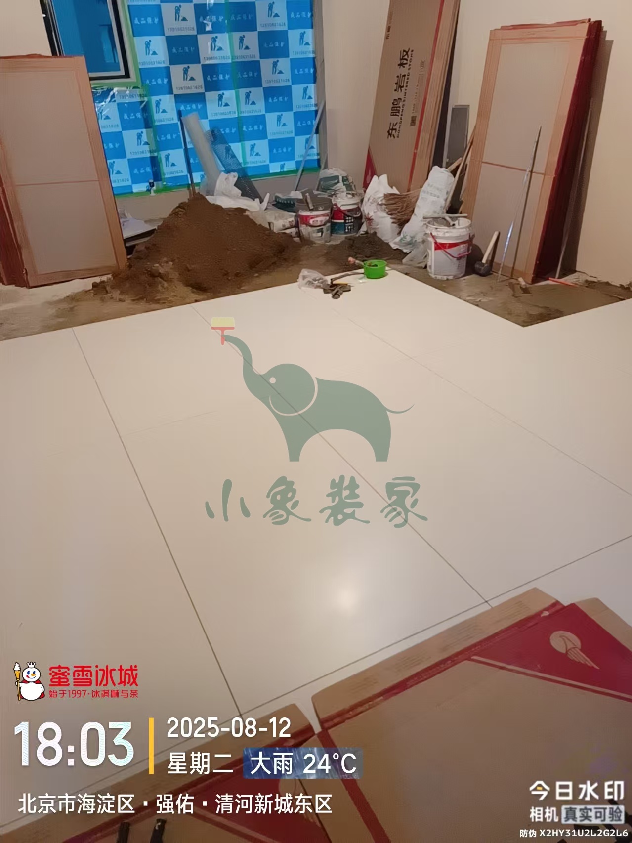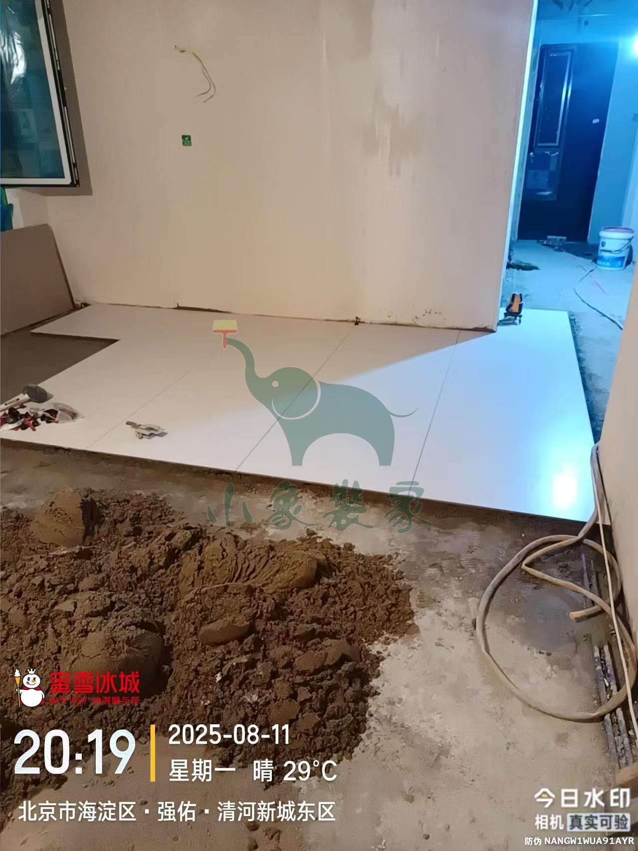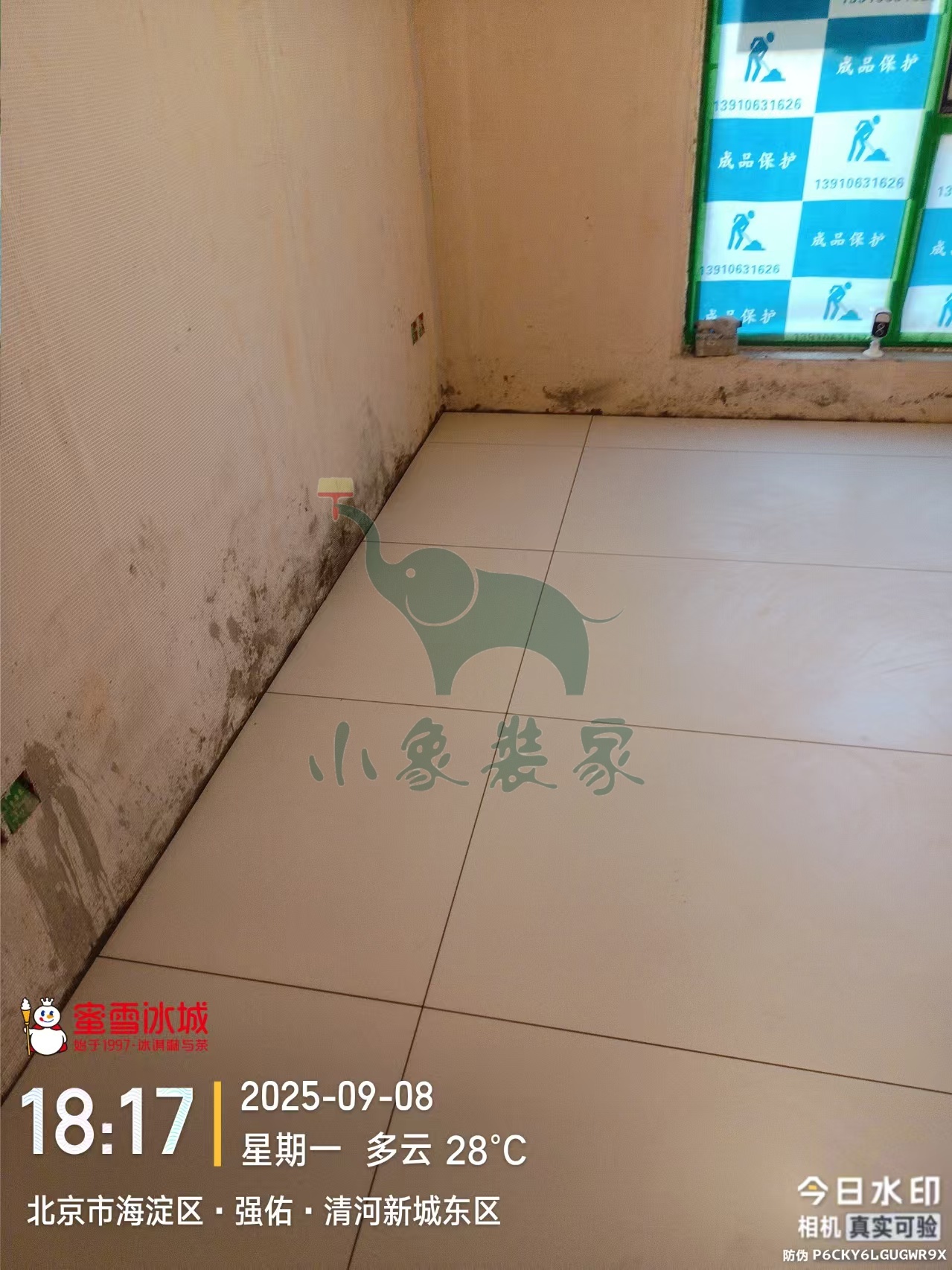 瓦工工程-卫生间墙砖铺贴还需2天。