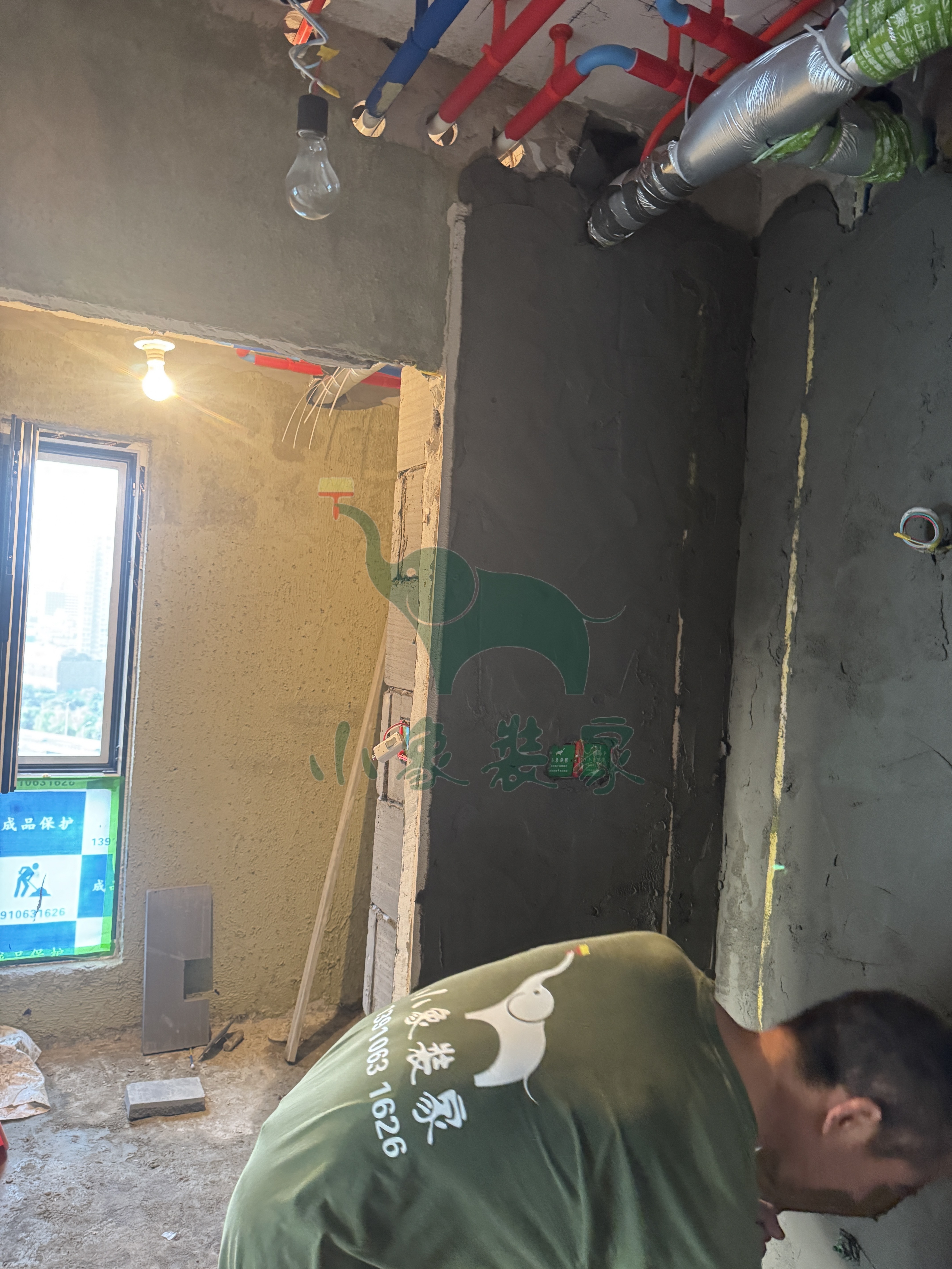 瓦工工程-厨卫墙面、水泥砂浆拉毛处理还需2天。