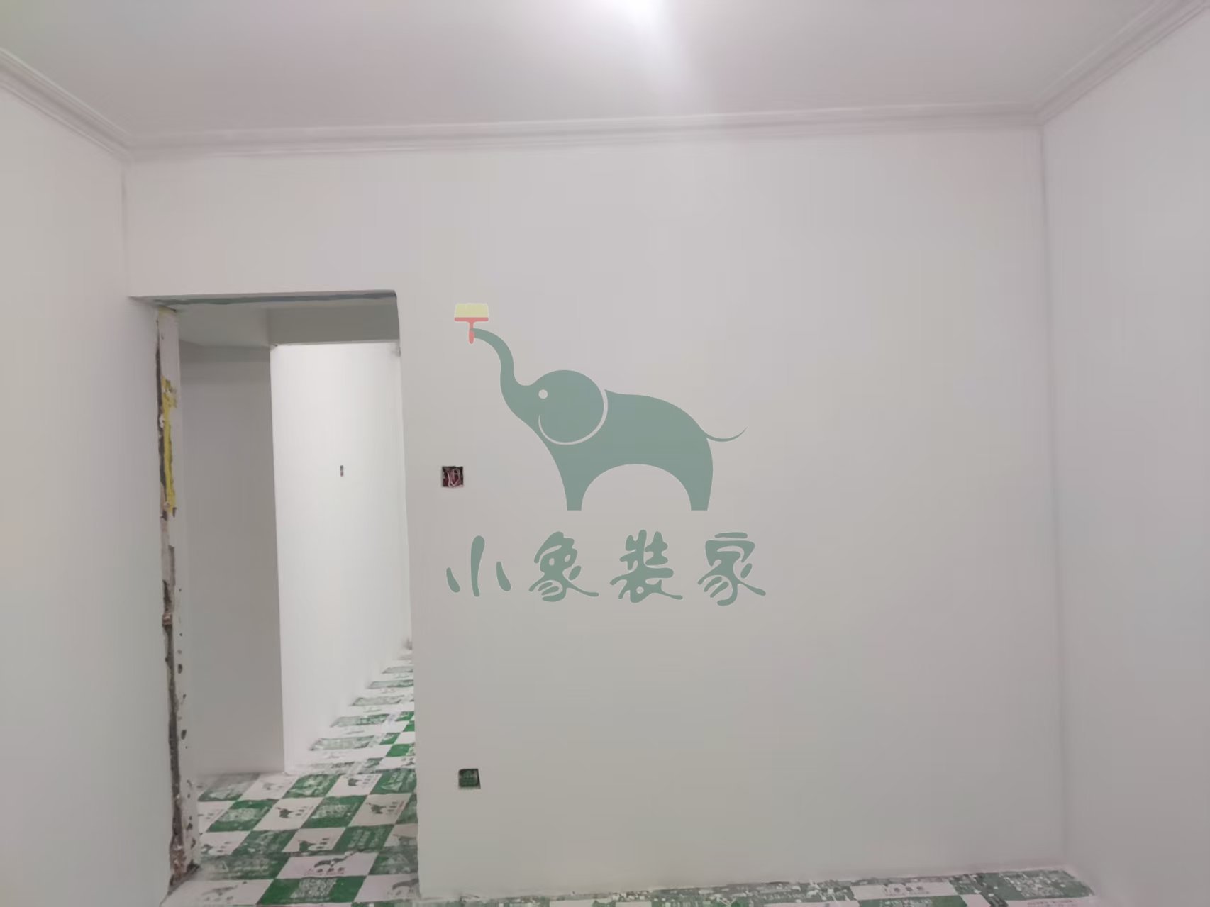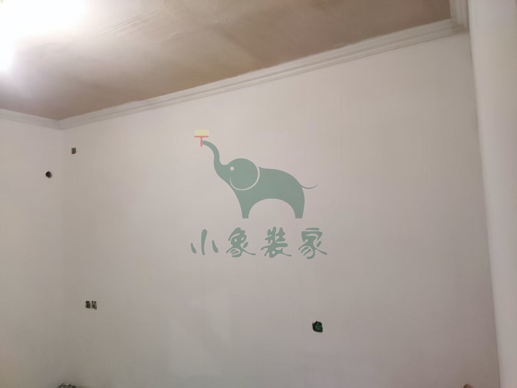 油工工程-墙顶面底漆完工后修补已完工。