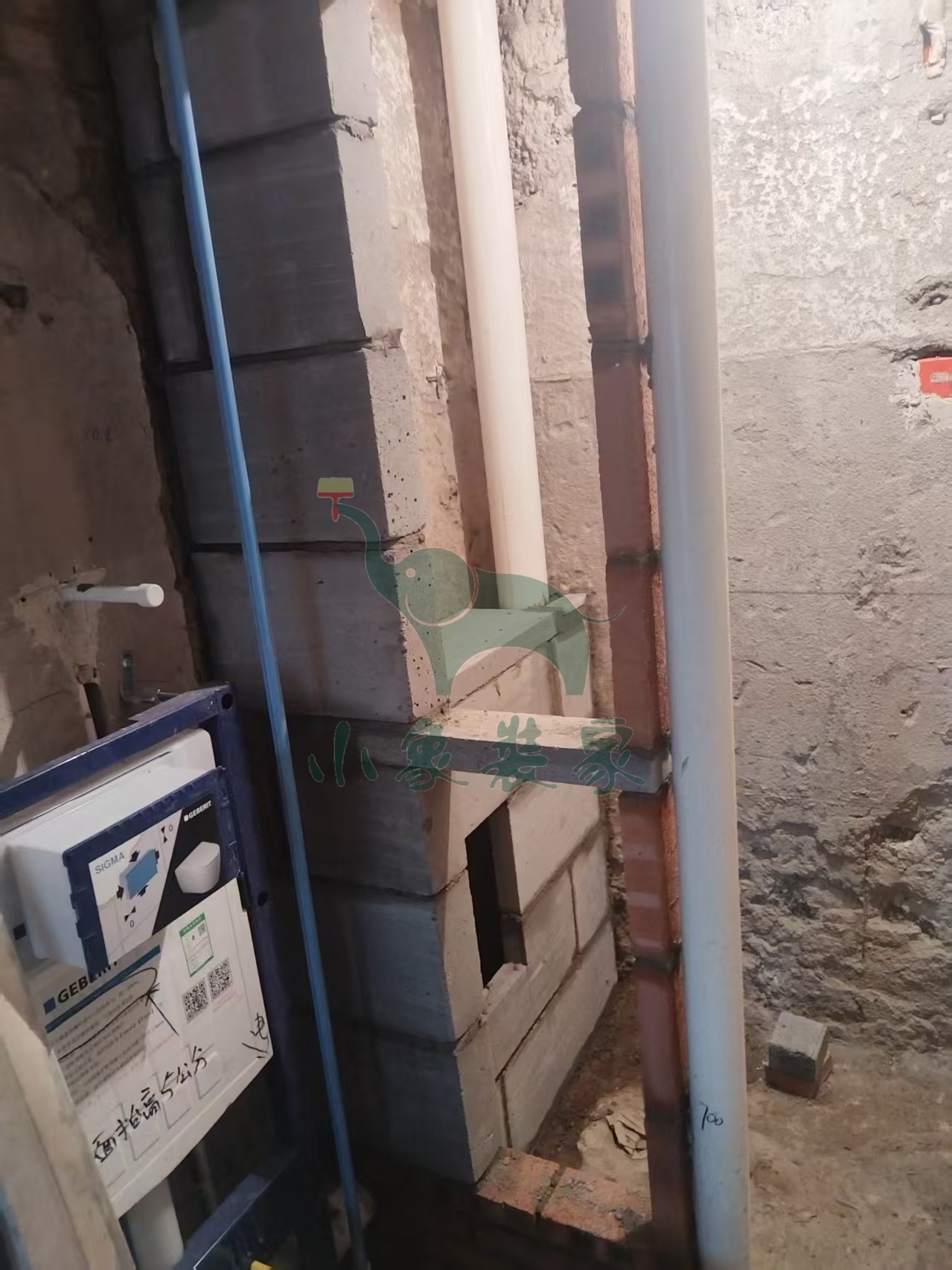 瓦工工程-厨卫修补、水电槽已完工