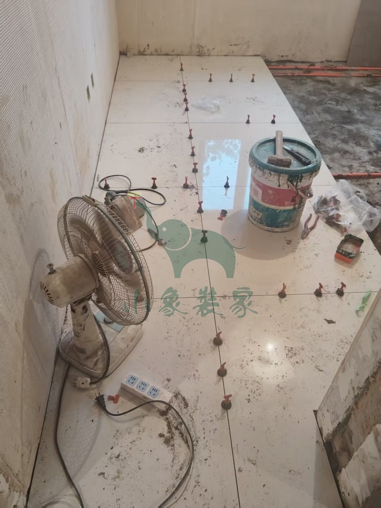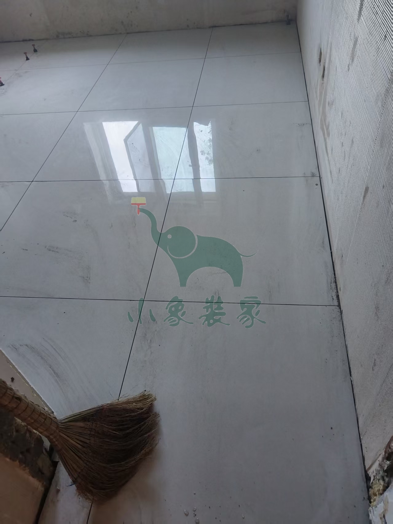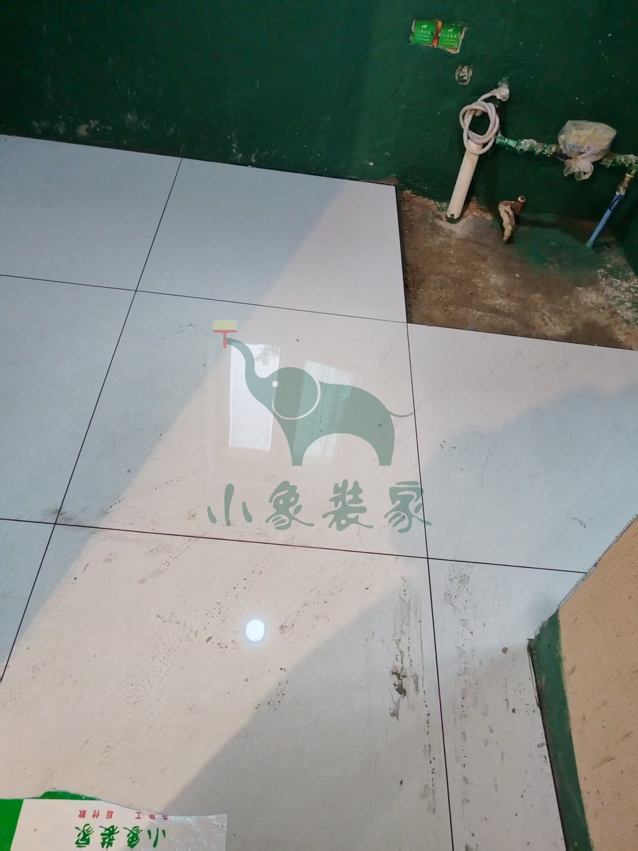 瓦工工程-铺贴大地砖还需2天。