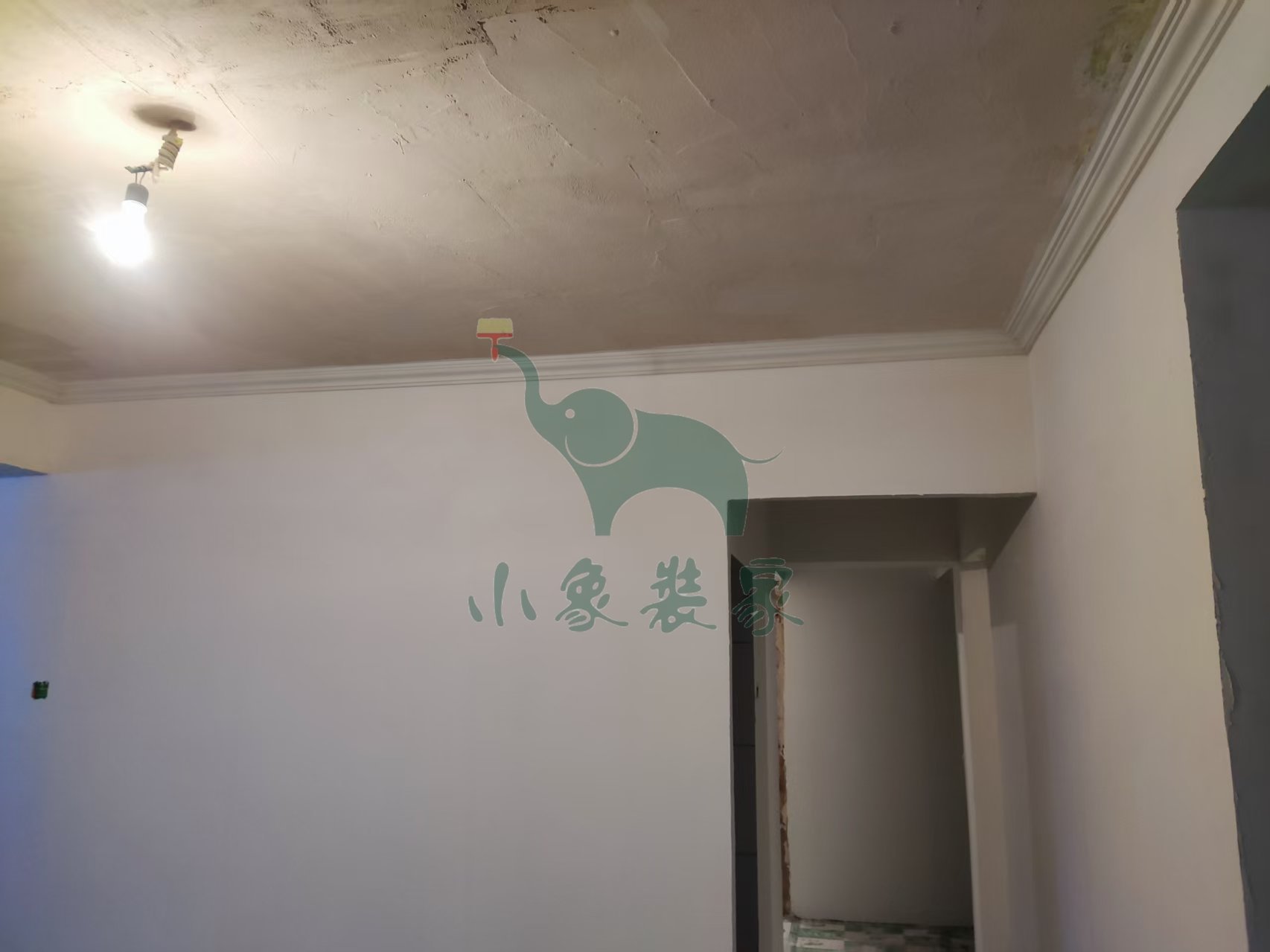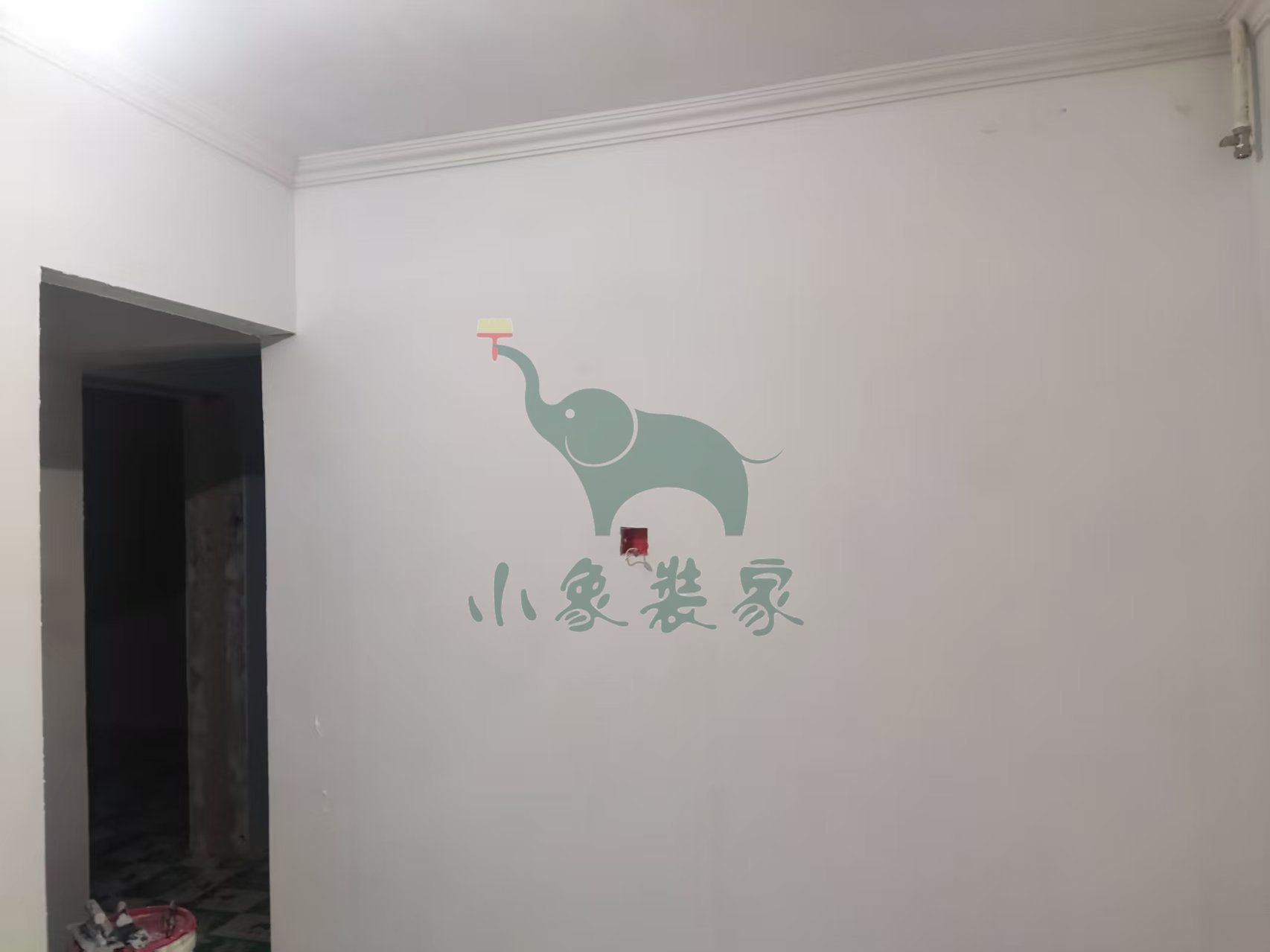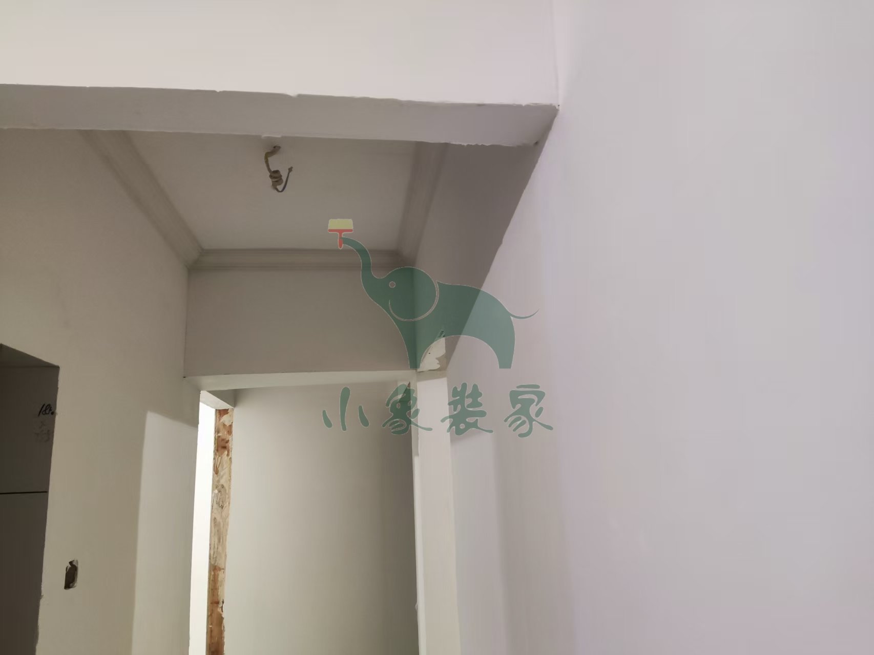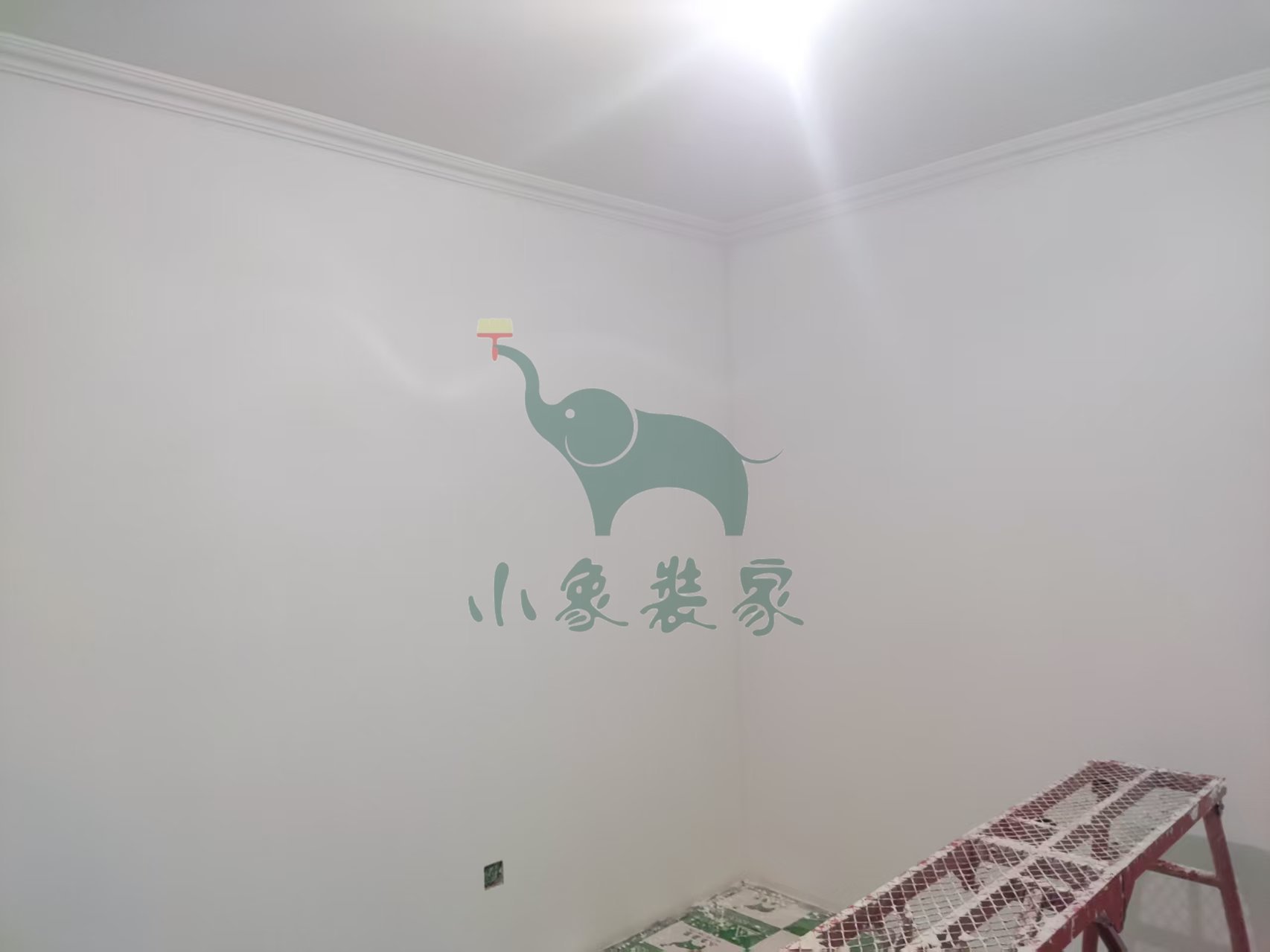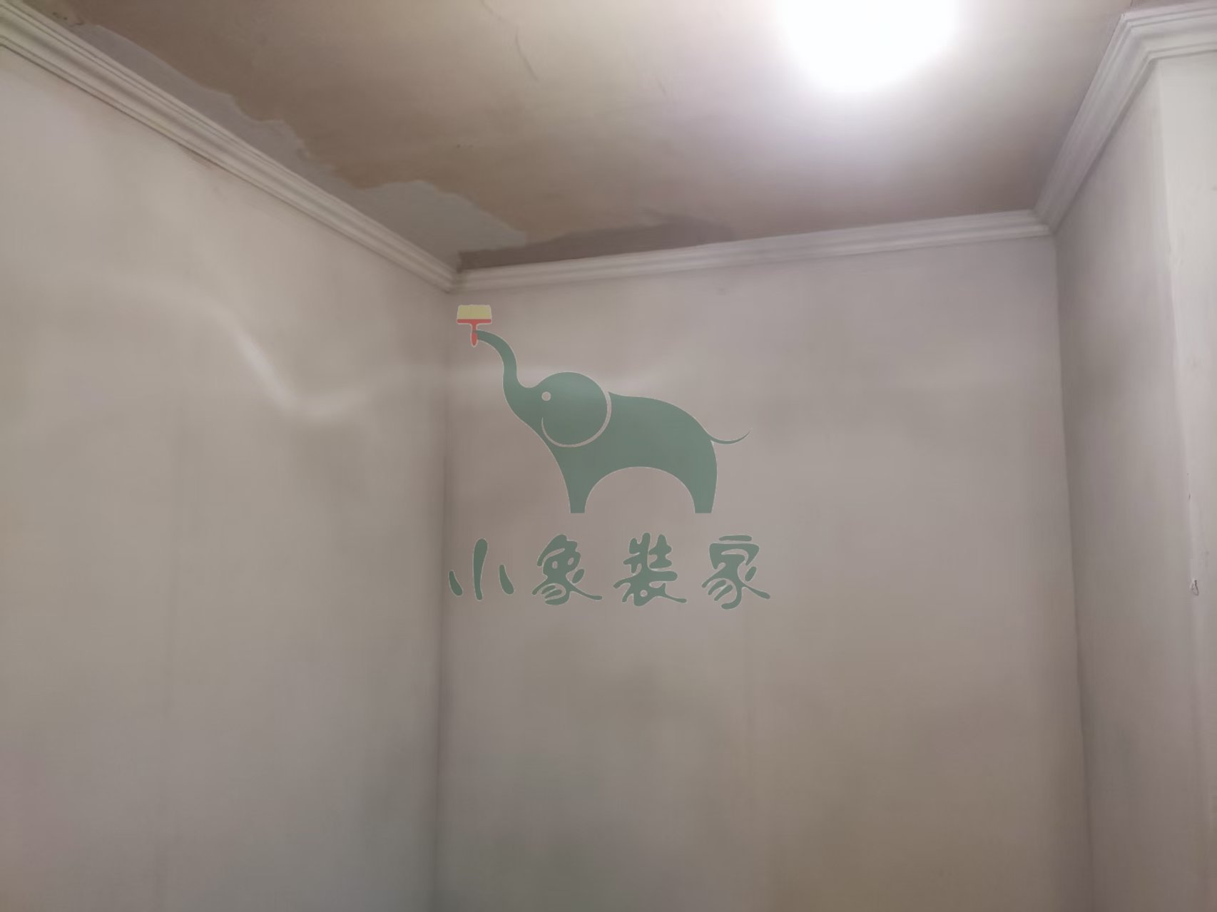 油工工程-墙顶面底漆完工后修补。