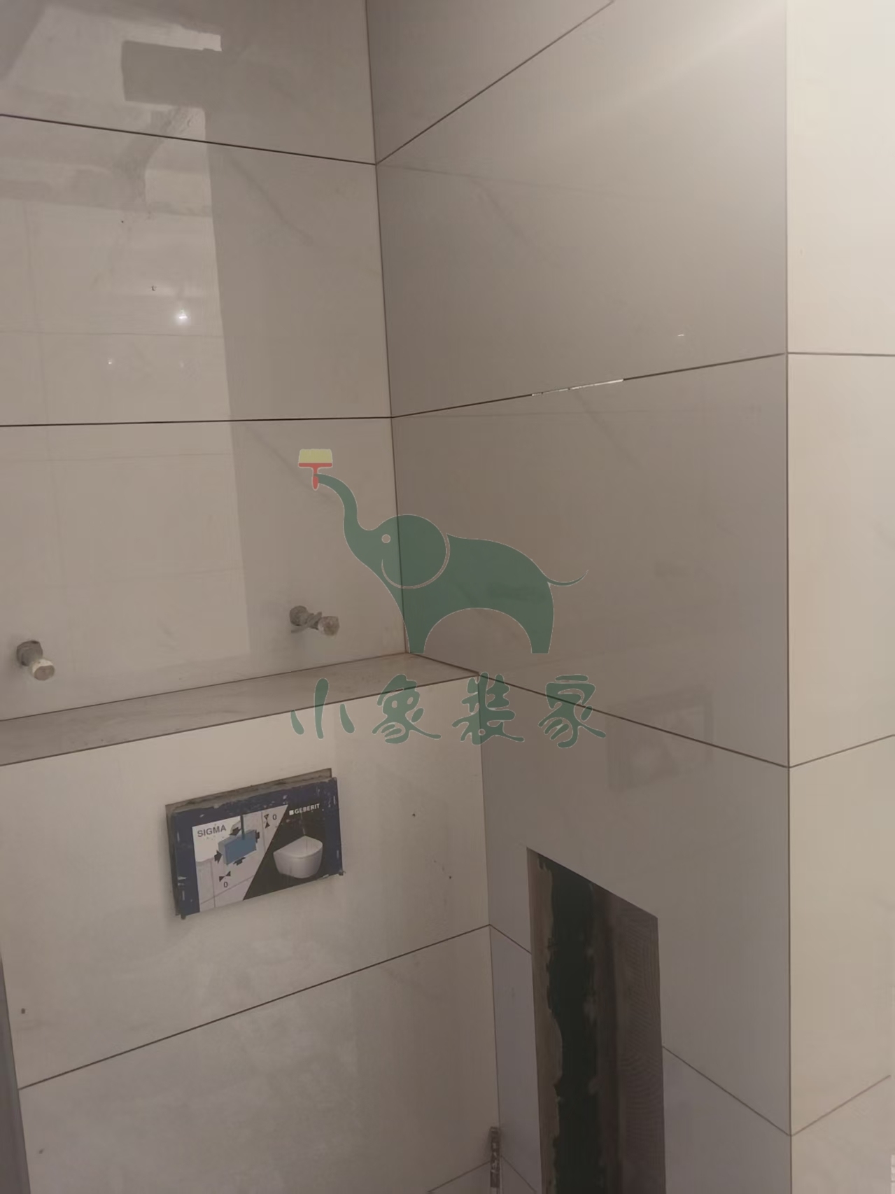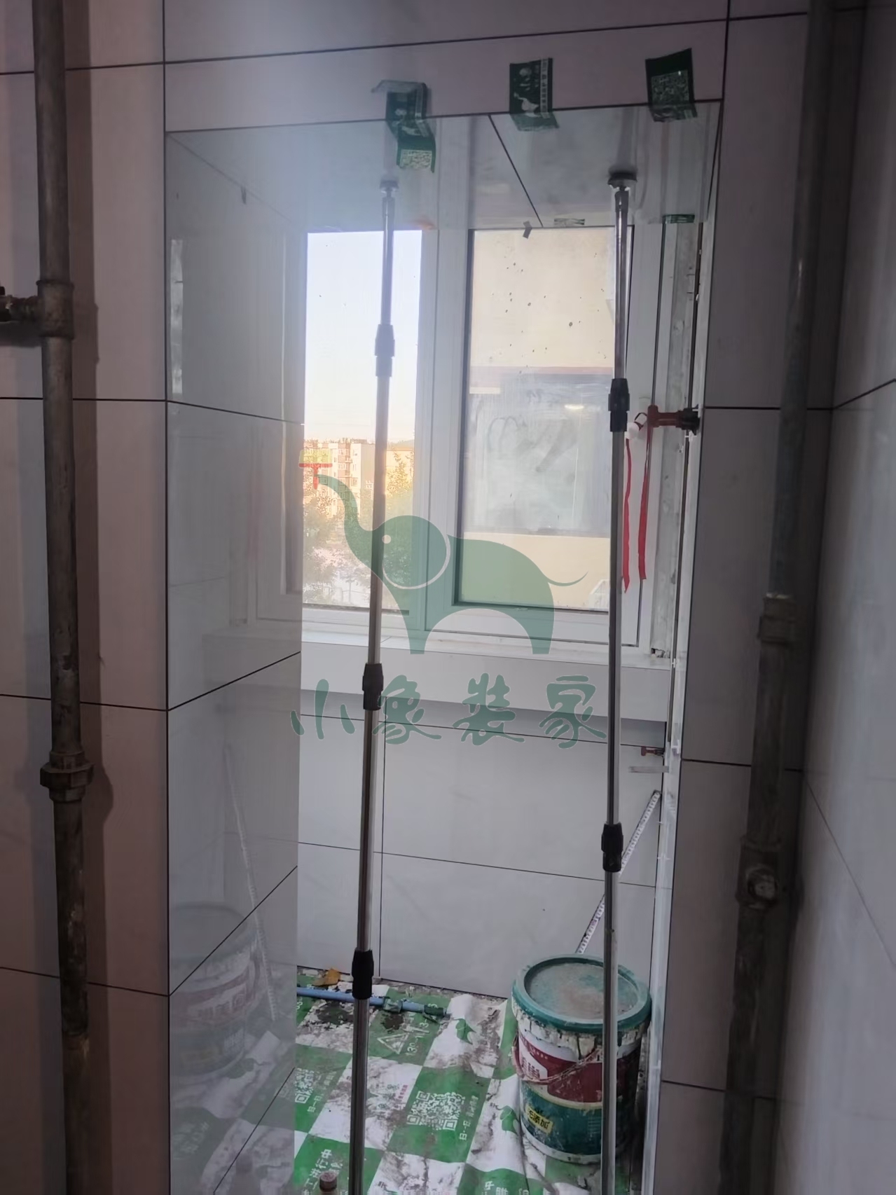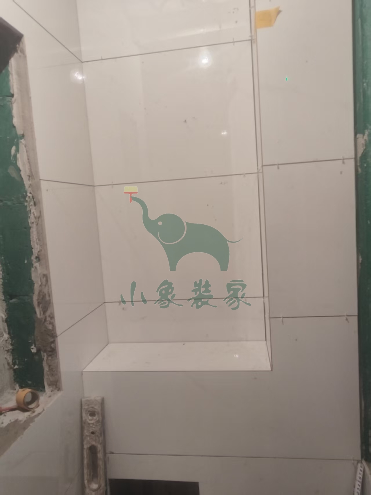 瓦工工程-卫生间墙砖铺贴还需1天。