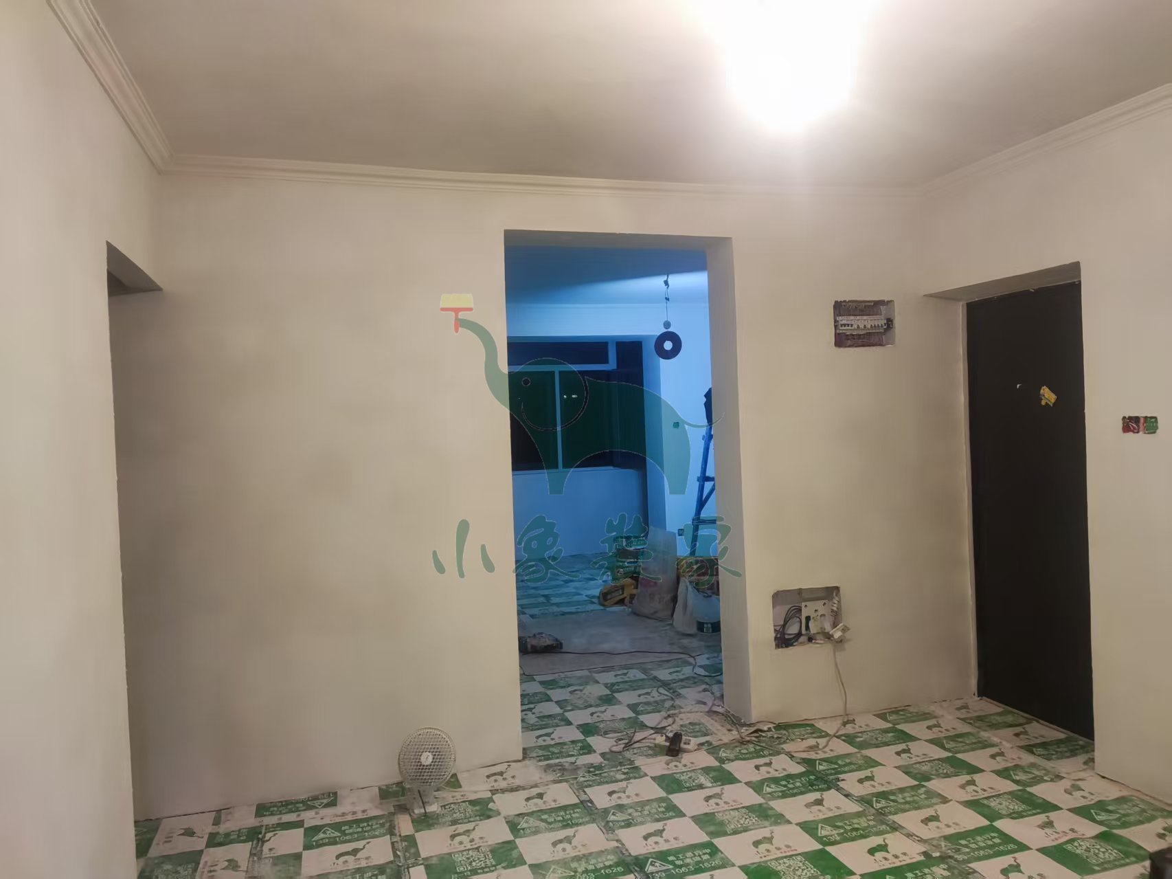 油工工程-墙顶面打磨砂纸已完工。