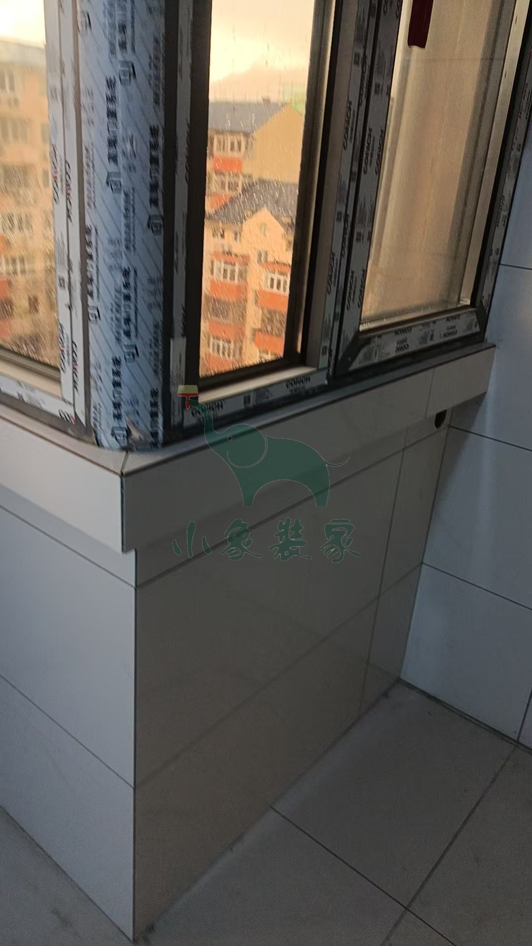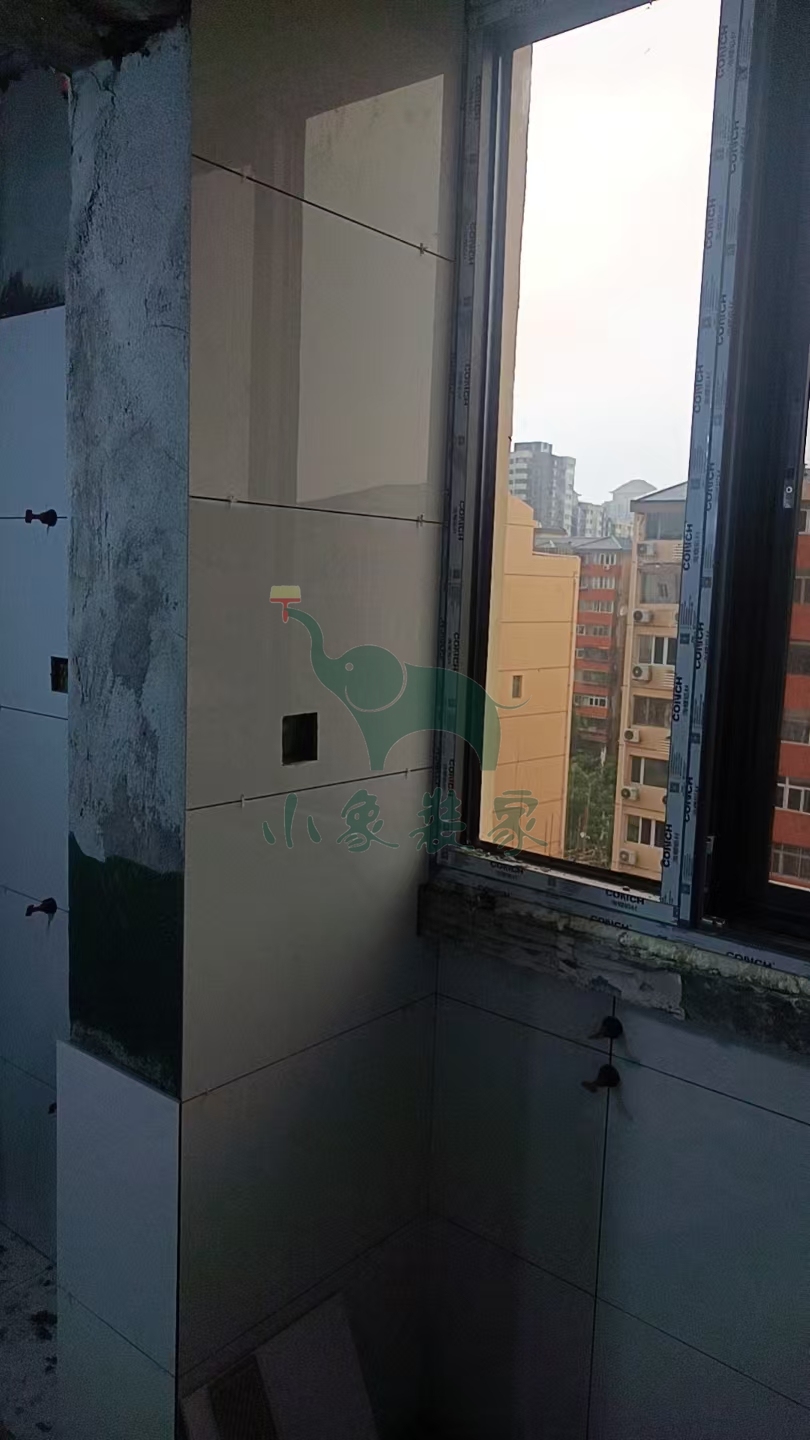 瓦工工程-阳台粘贴墙砖还需2天