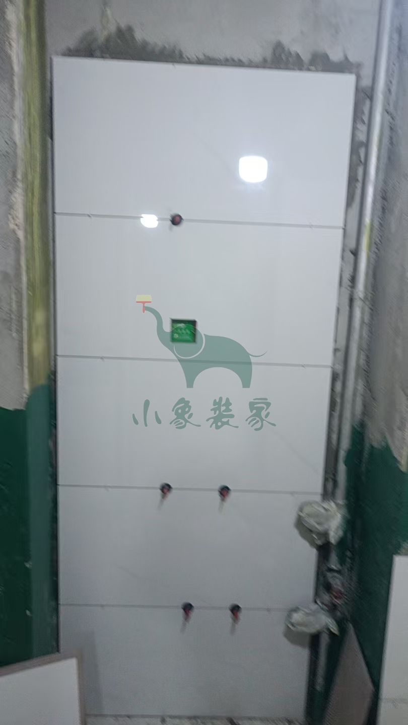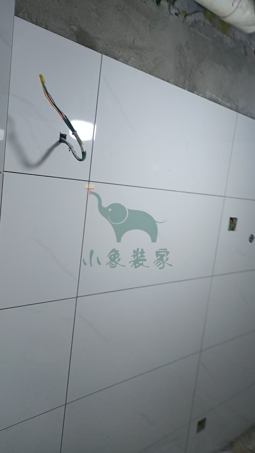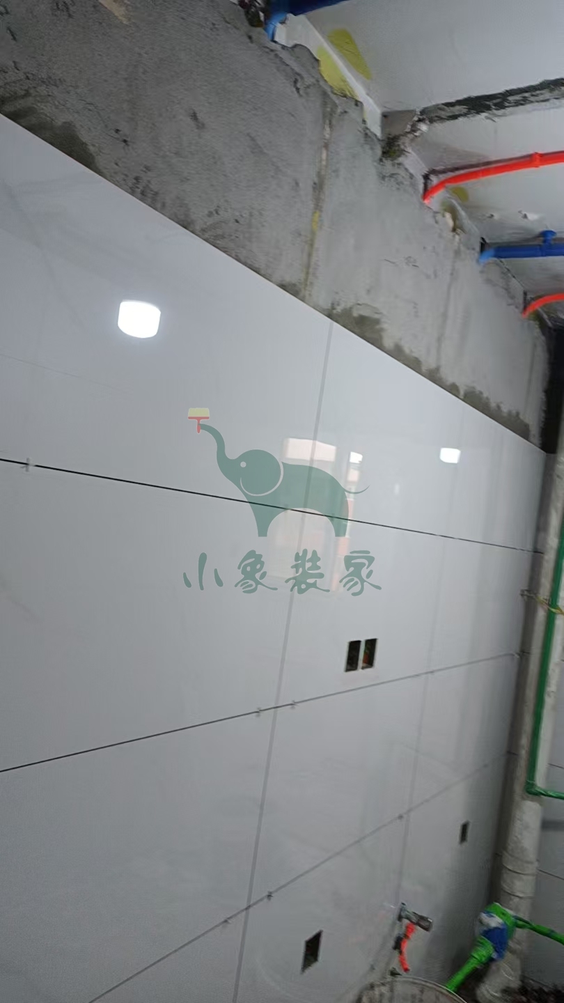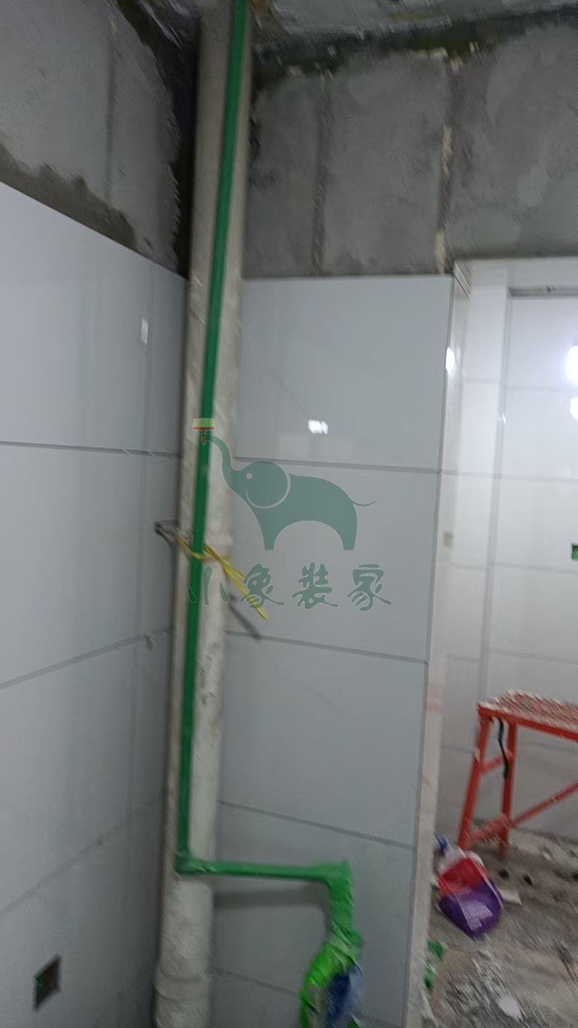 瓦工工程-厨房墙砖铺贴还需2天。