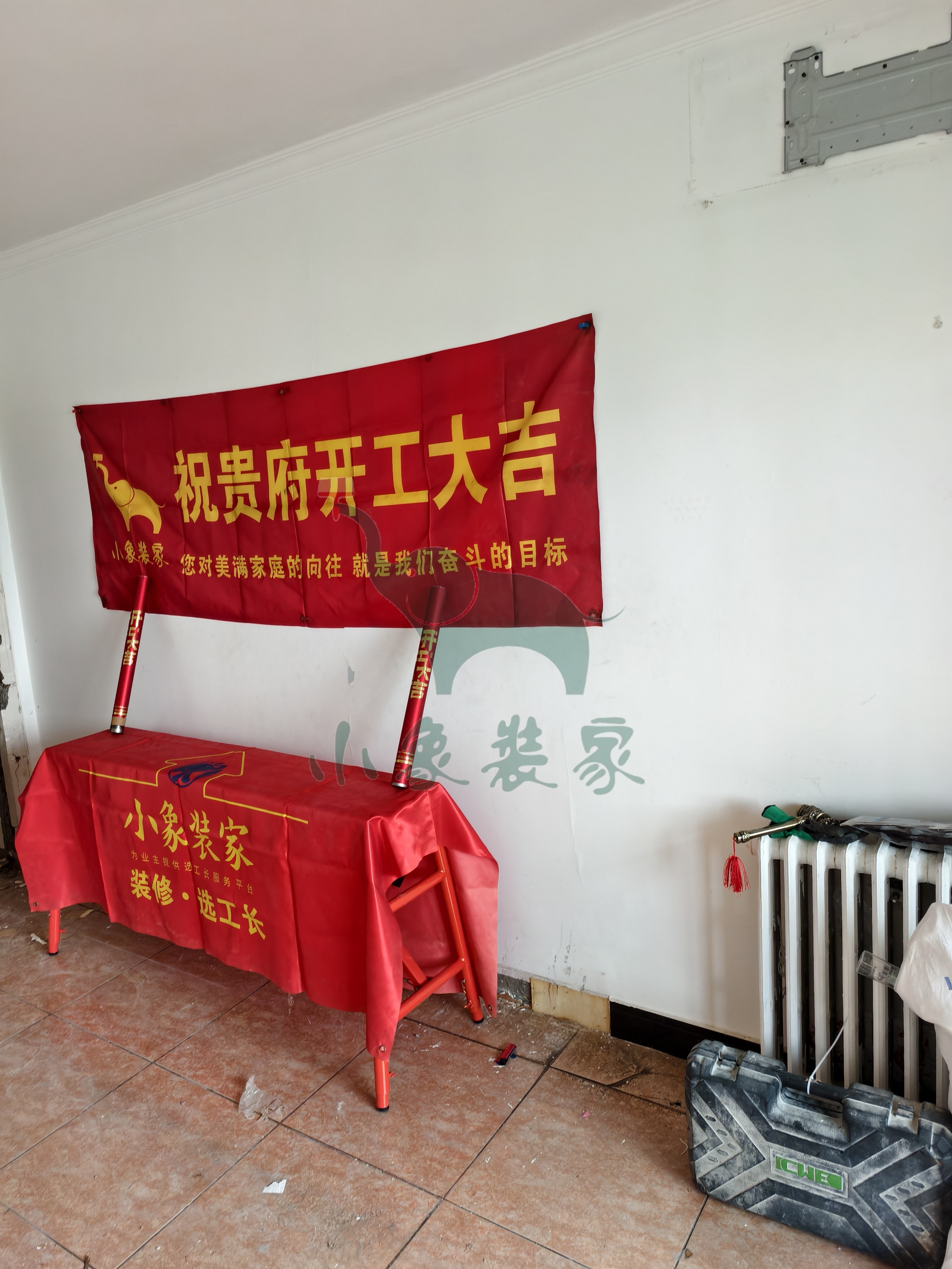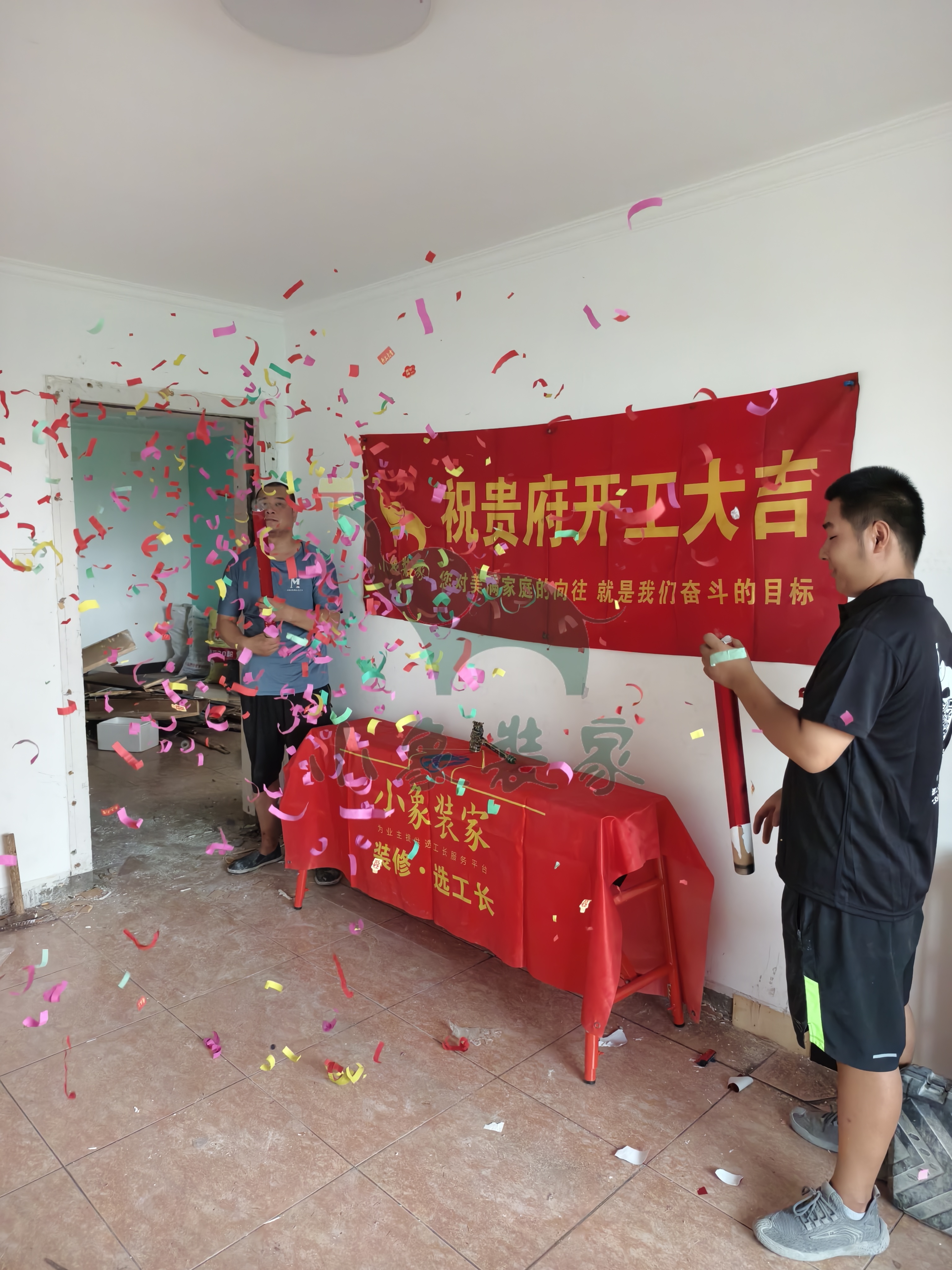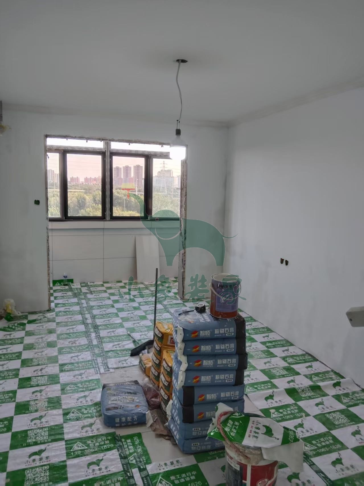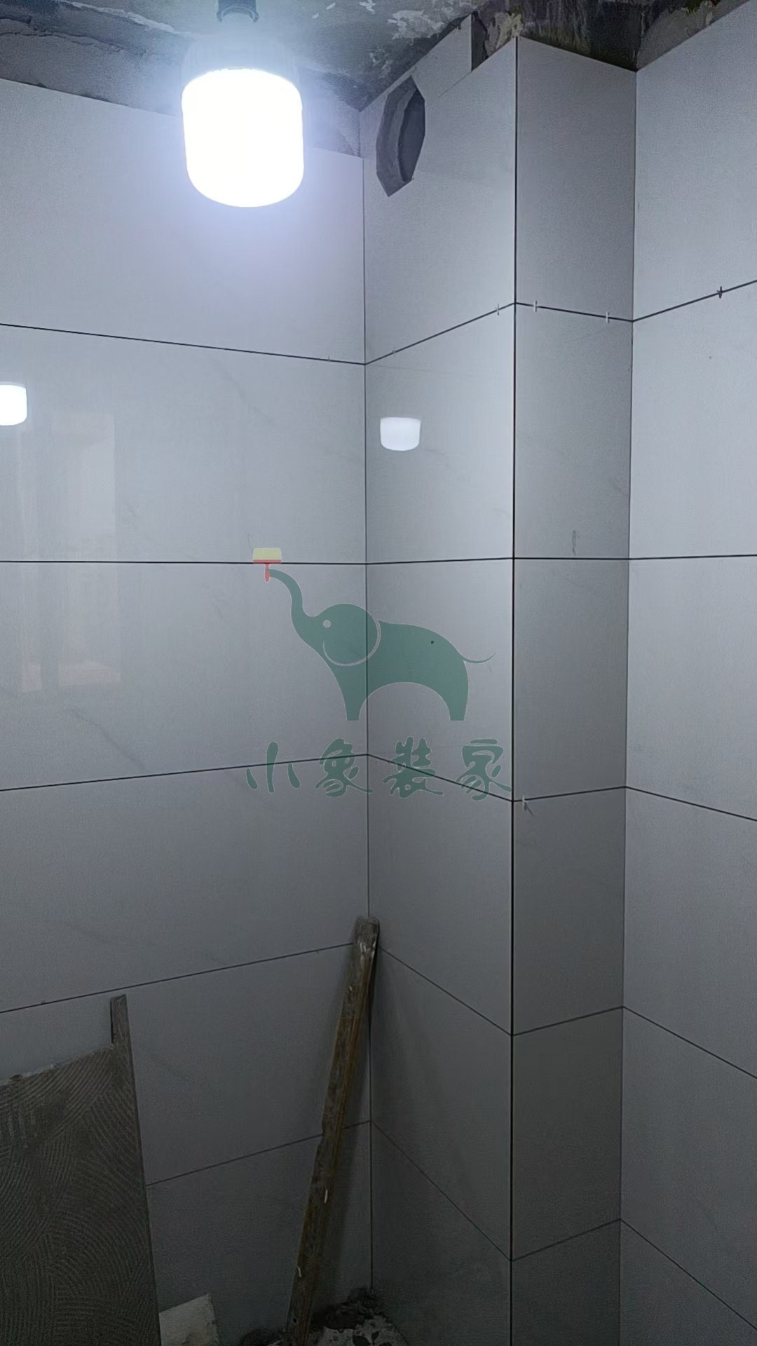 瓦工工程-厨房墙砖铺贴还需2天。
