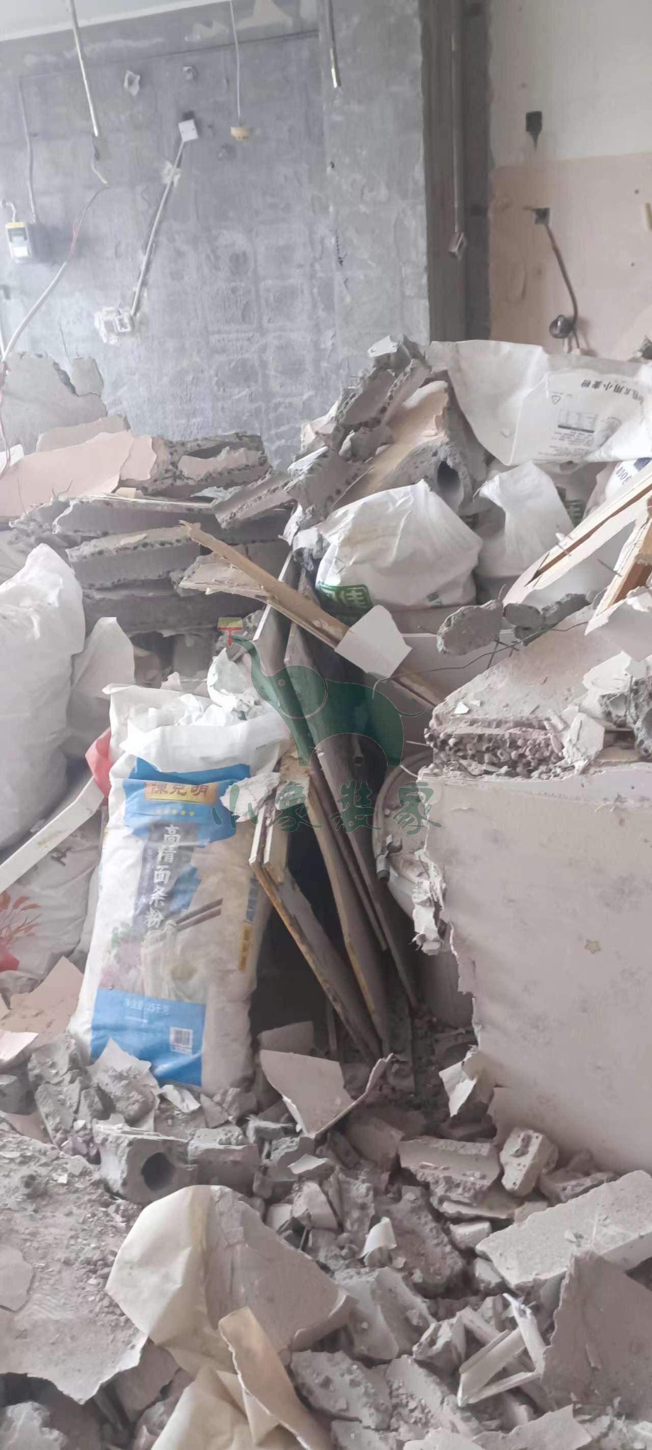 拆除工程-拆除轻体墙、保温墙已完工。