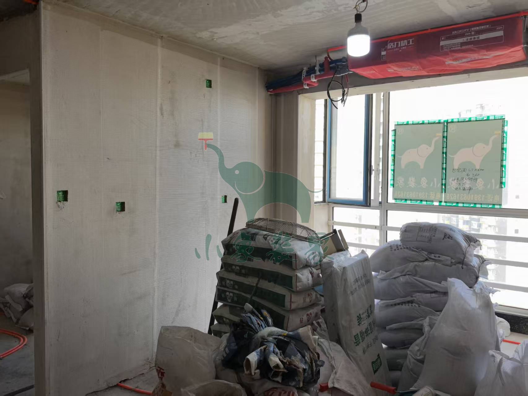 瓦工工程-厨卫墙地面、水泥砂浆抹灰还需2天。
