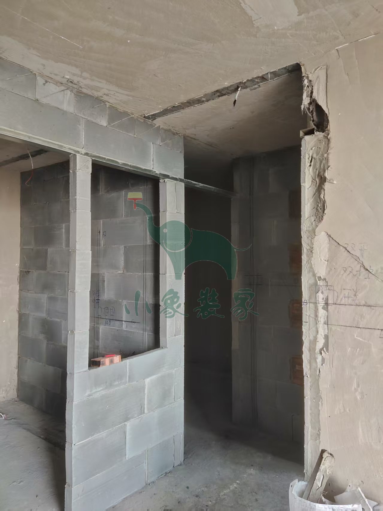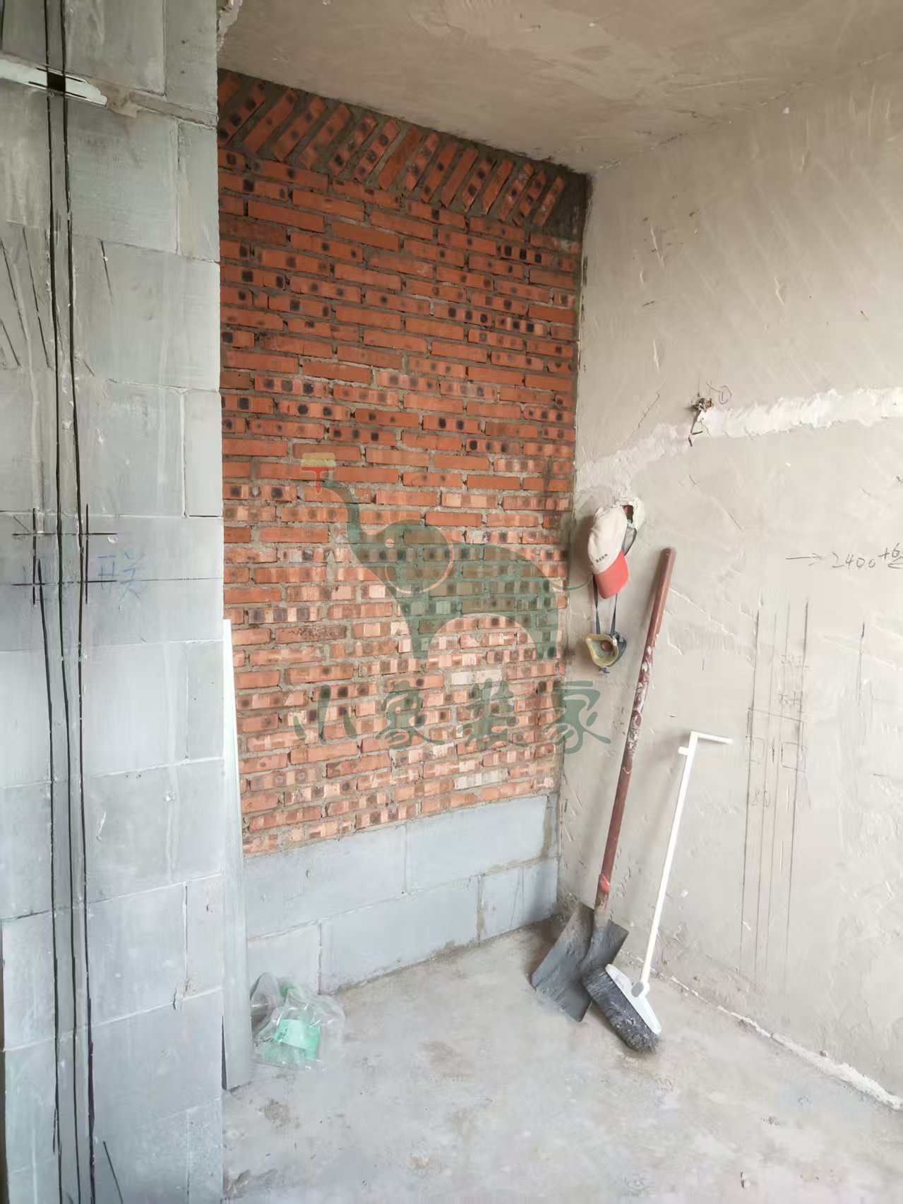 瓦工工程-轻体砖砌墙已完工。