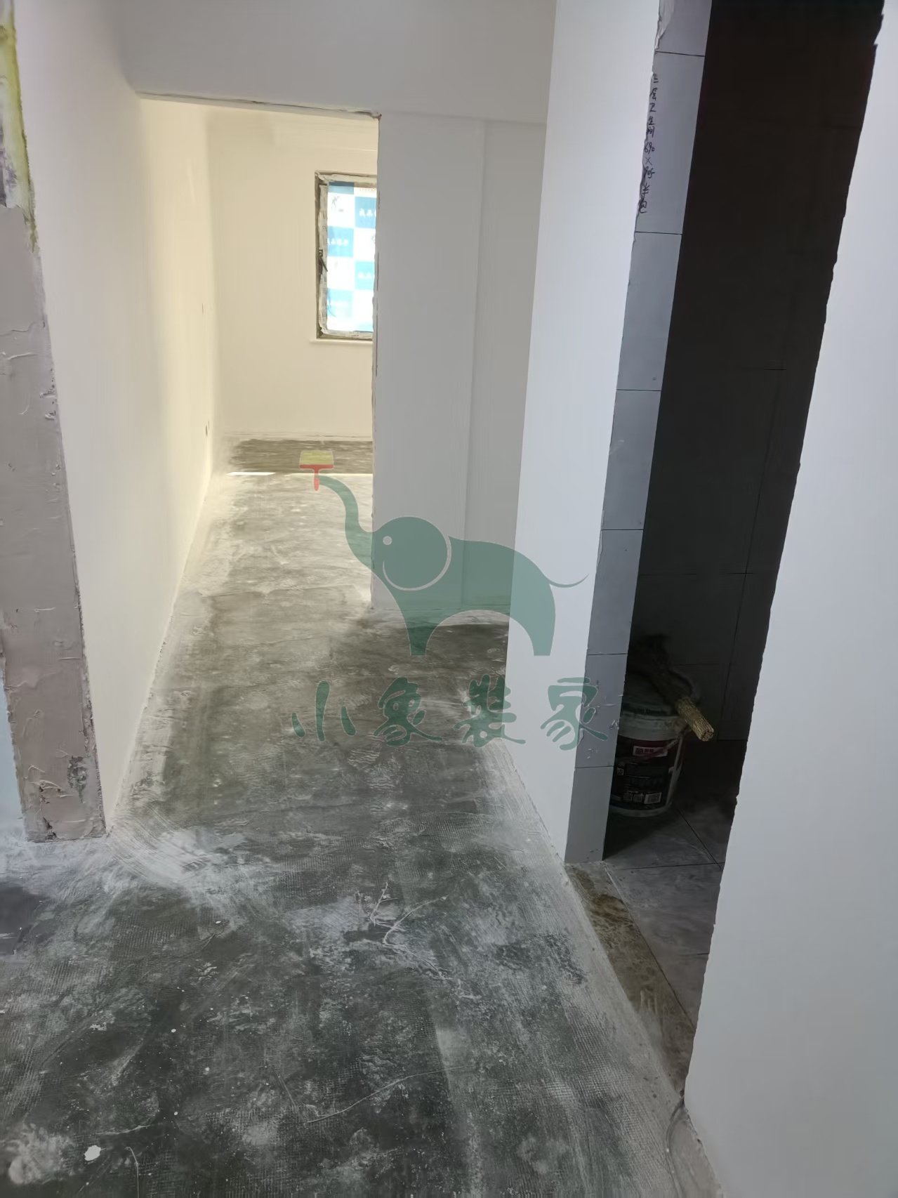 瓦工工程-卫生间地面抹平还需1天。