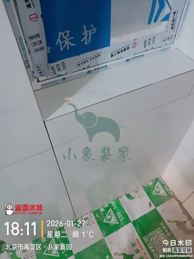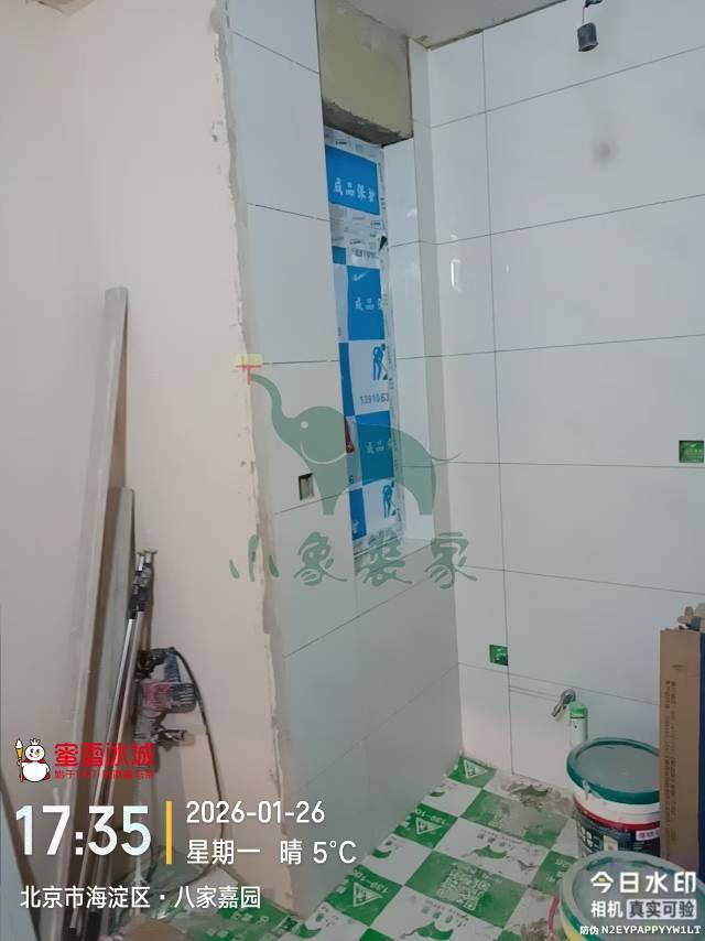 瓦工工程-卫生间墙砖铺贴还需1天