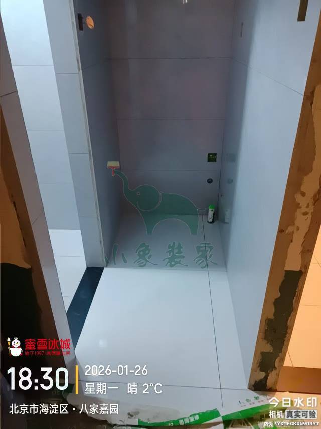 瓦工工程-卫生间墙砖铺贴还需2天。