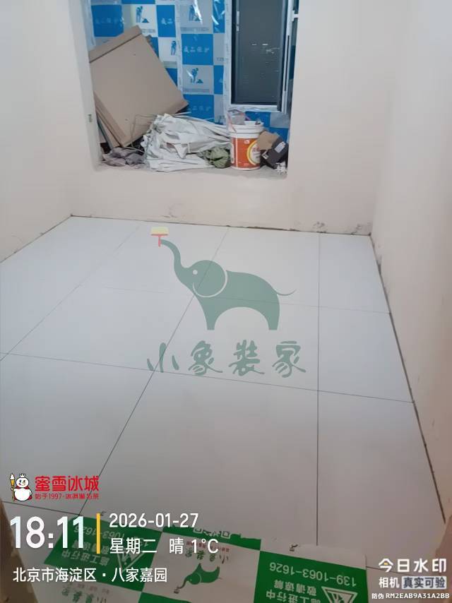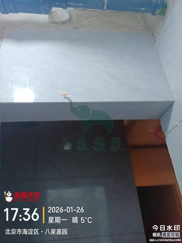 瓦工工程-卫生间地砖铺贴还需1天。